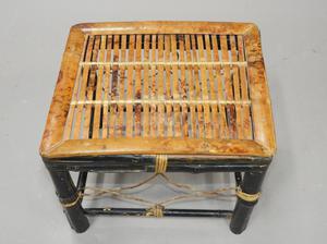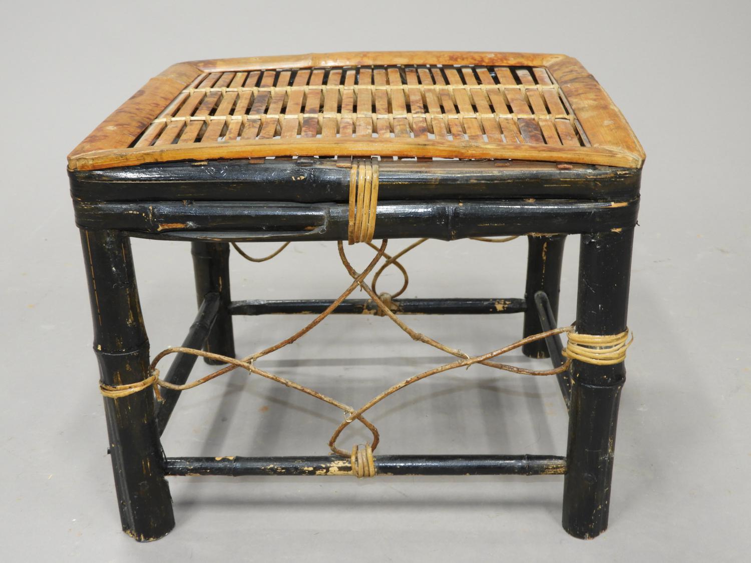 partial ebonized woven bamboo stool, early 20th century, 12" x 15" x 13"