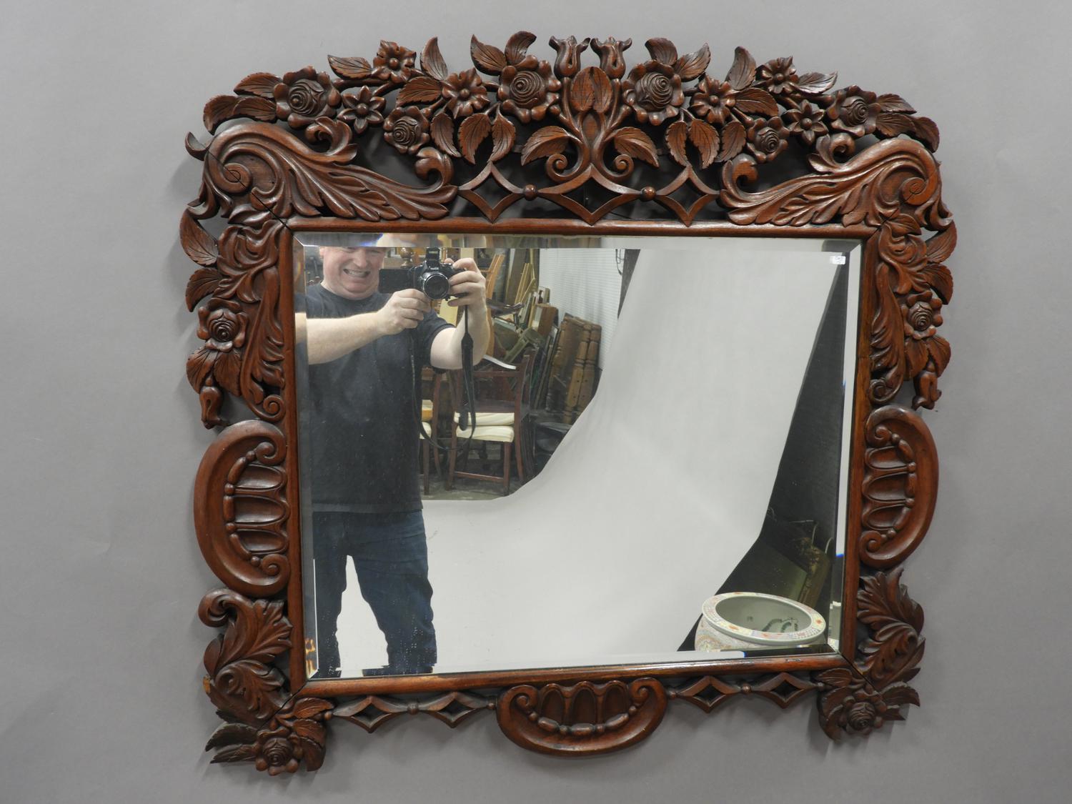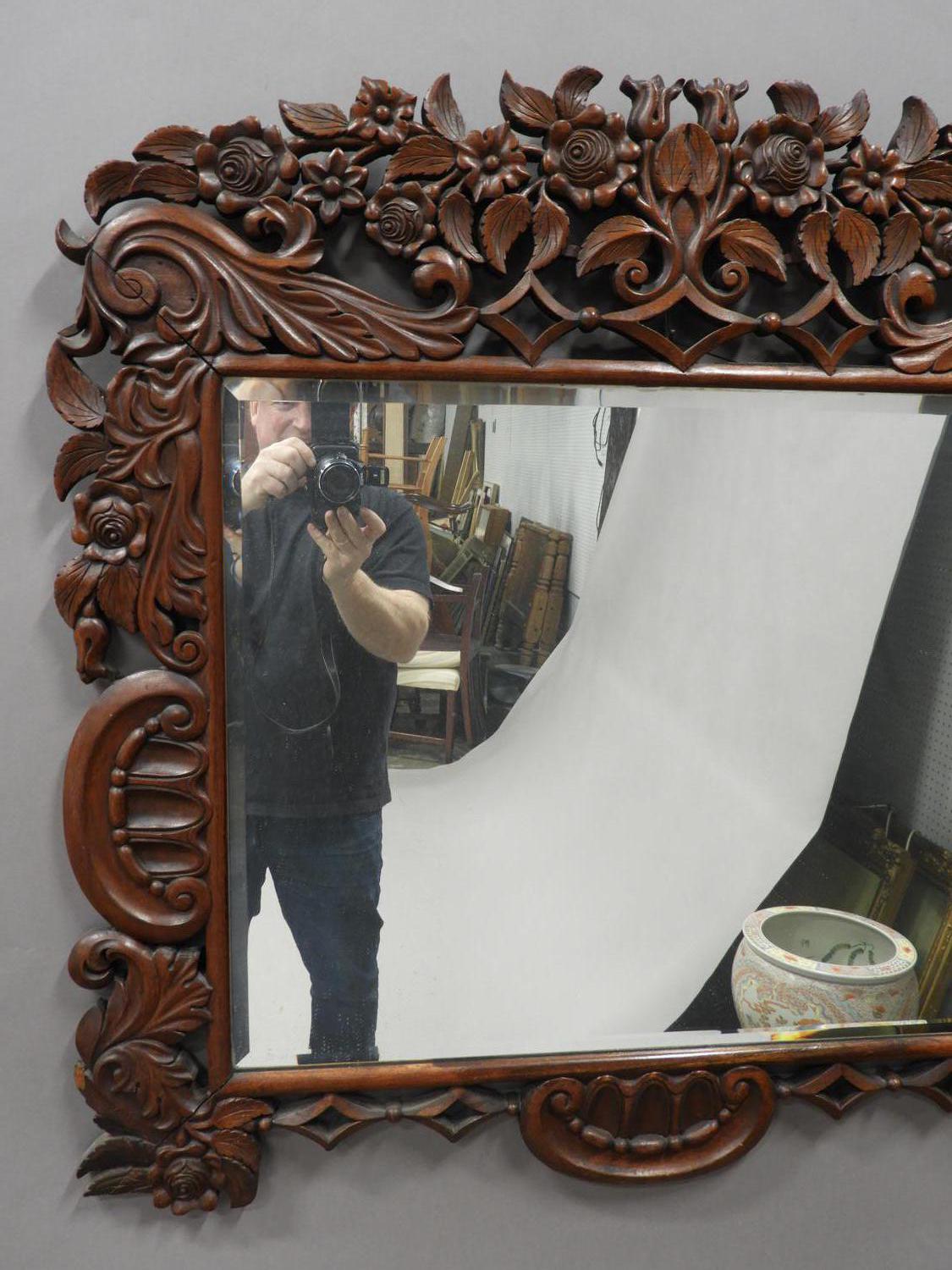 late 19th century carved mahogany framed mirror, 35" x 37".
