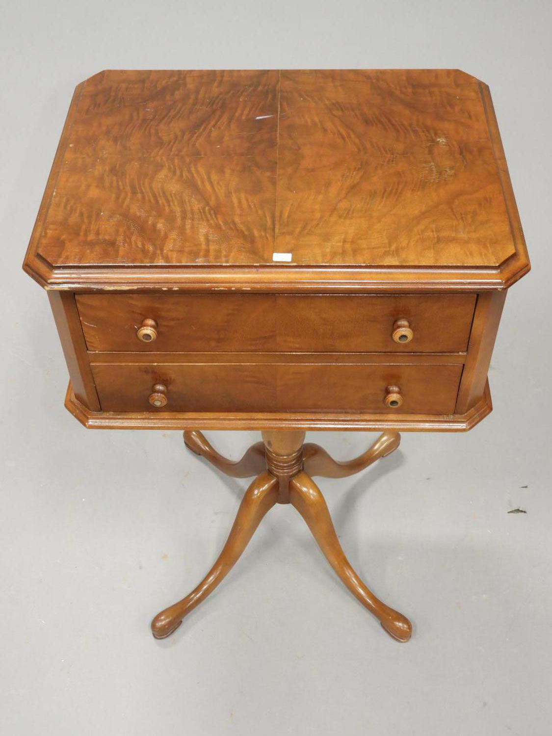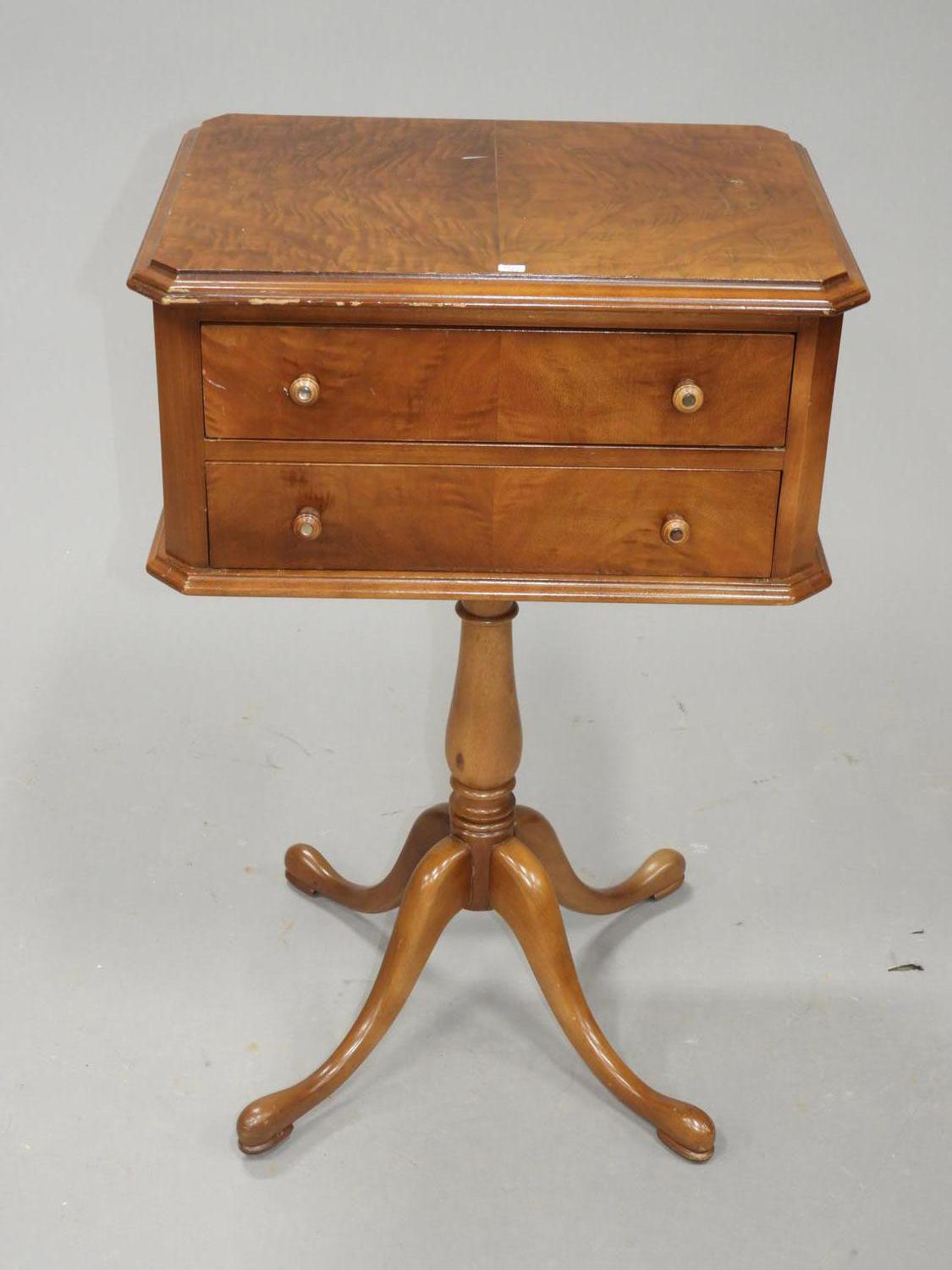 walnut pedestal two drawer pedestal table, early 20th century, 28" x 18" x 24"