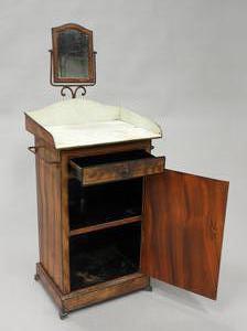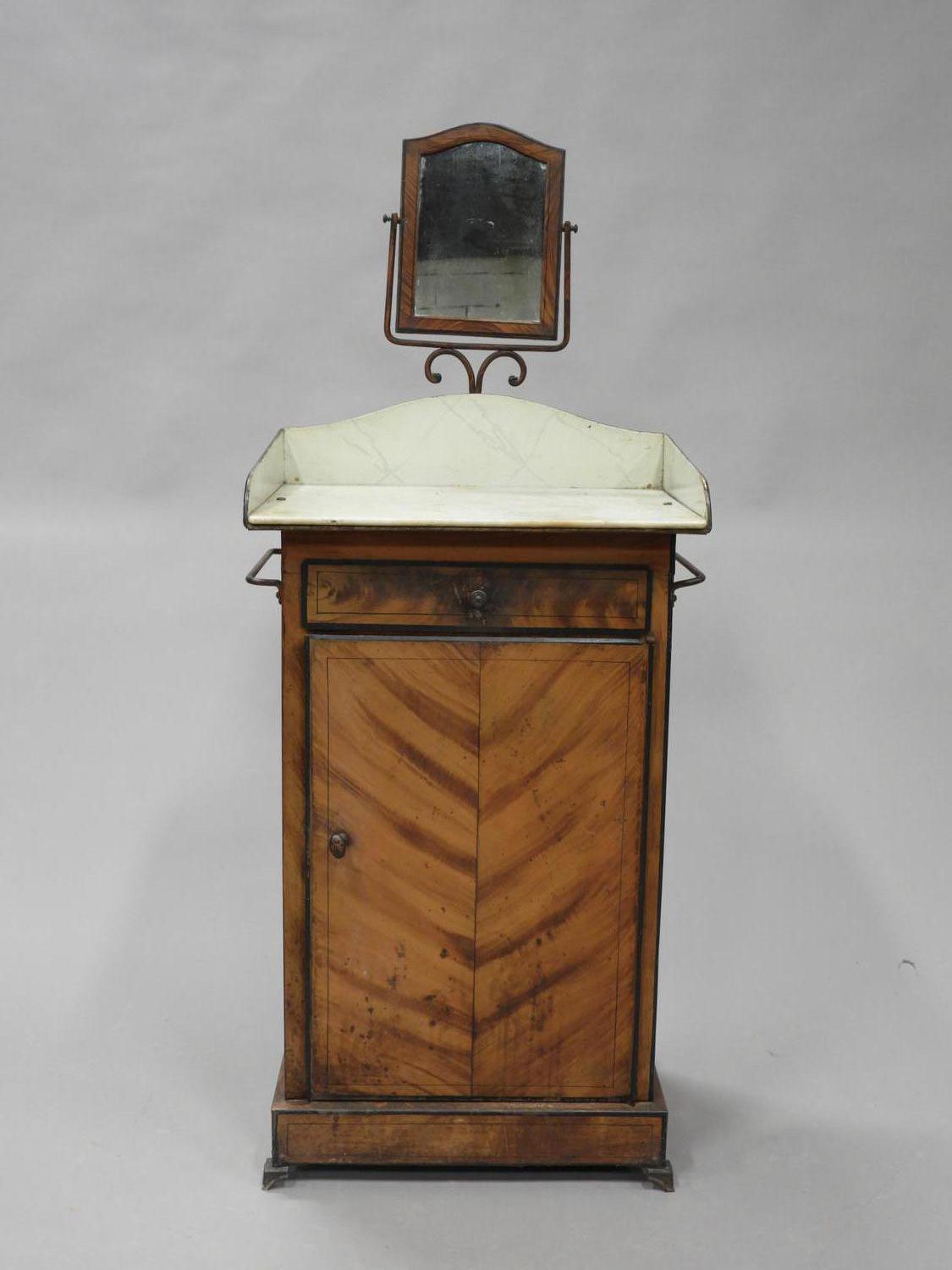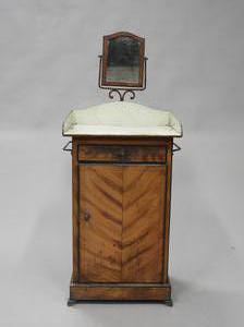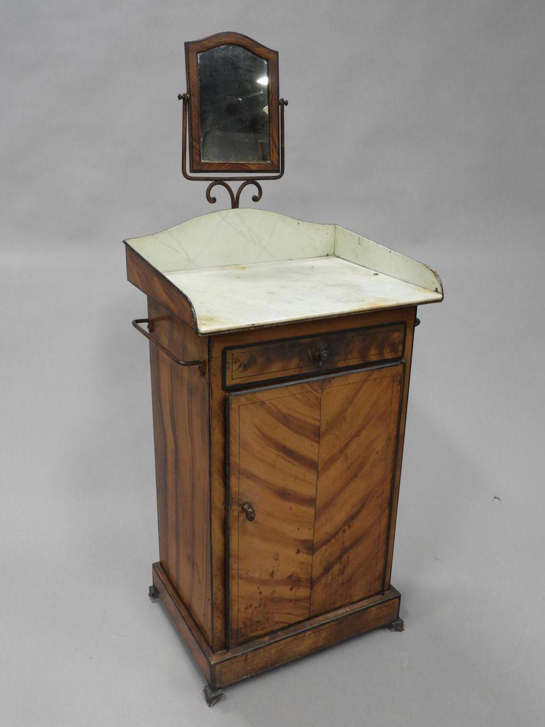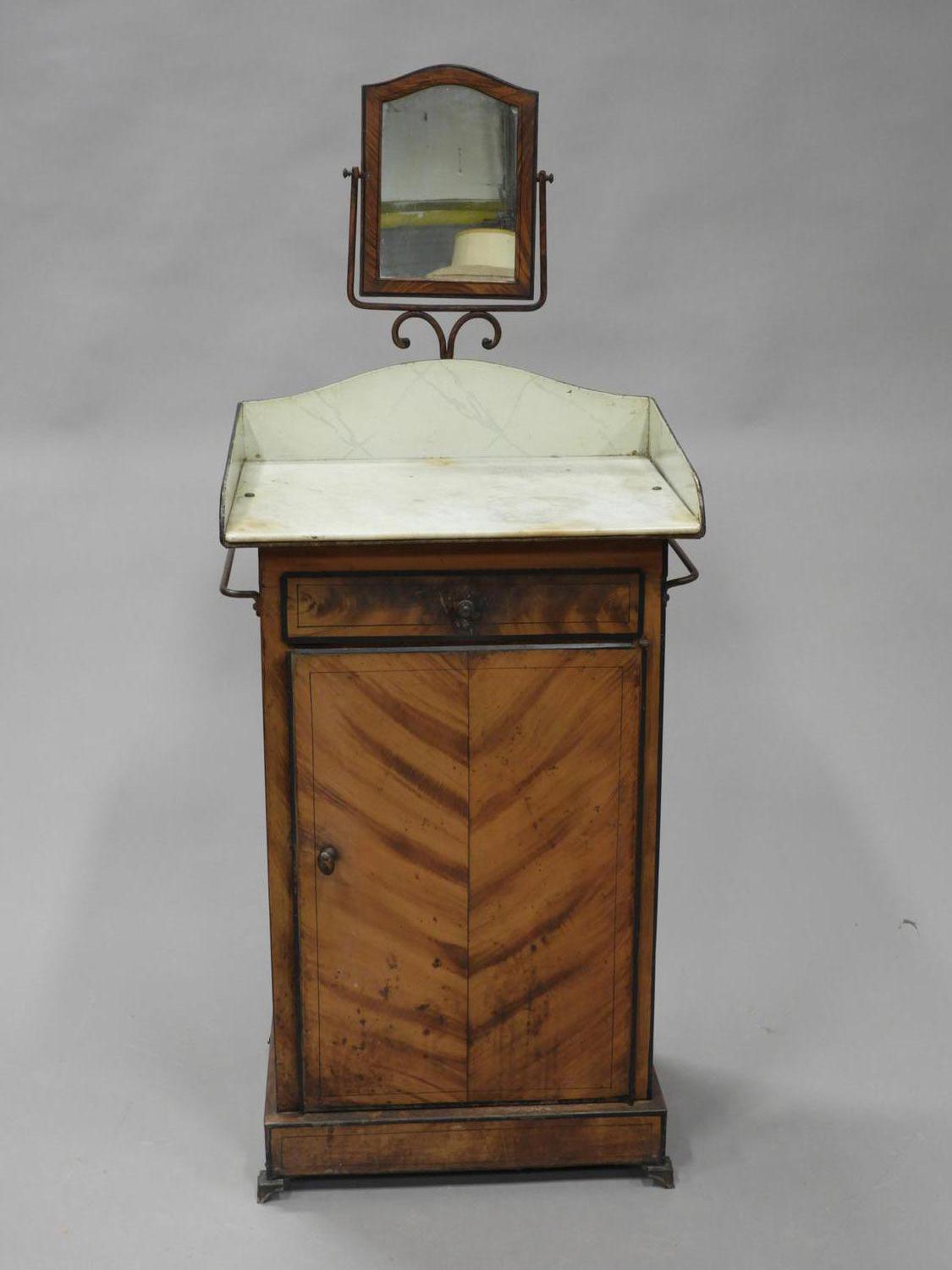 19th century regency style grain painted metal wash stand with mirror, 50" x 20" x 16"