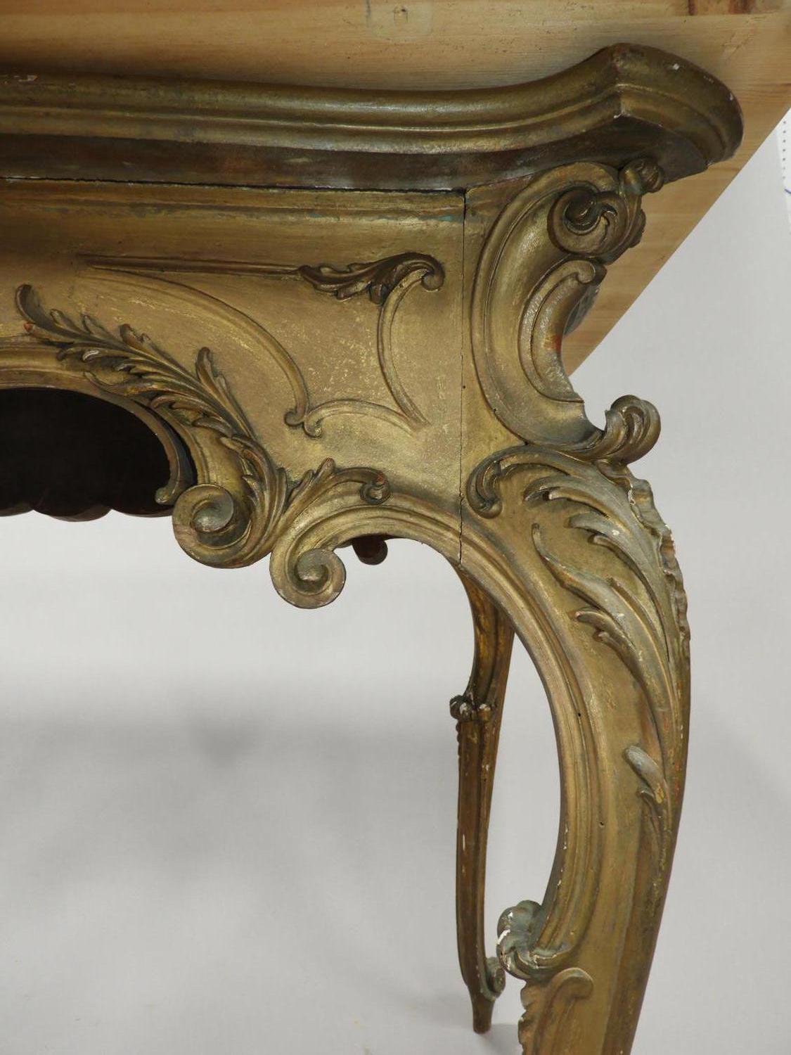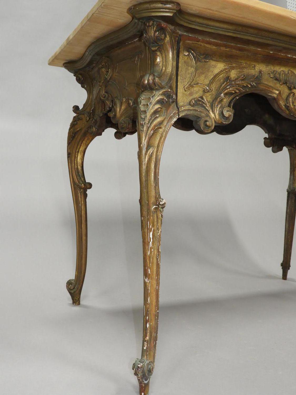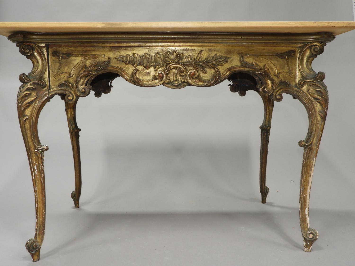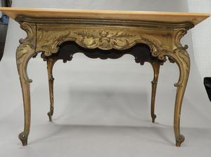 rococo-style giltwood table base, 19th century with later top, 31 1/2" x 45" x 25"