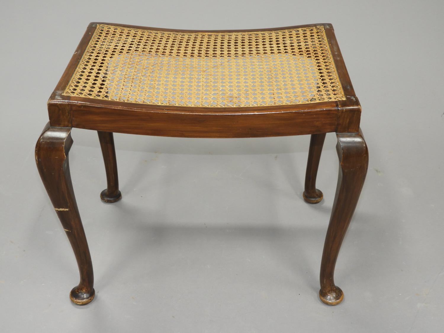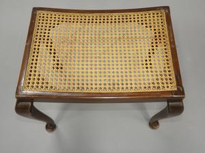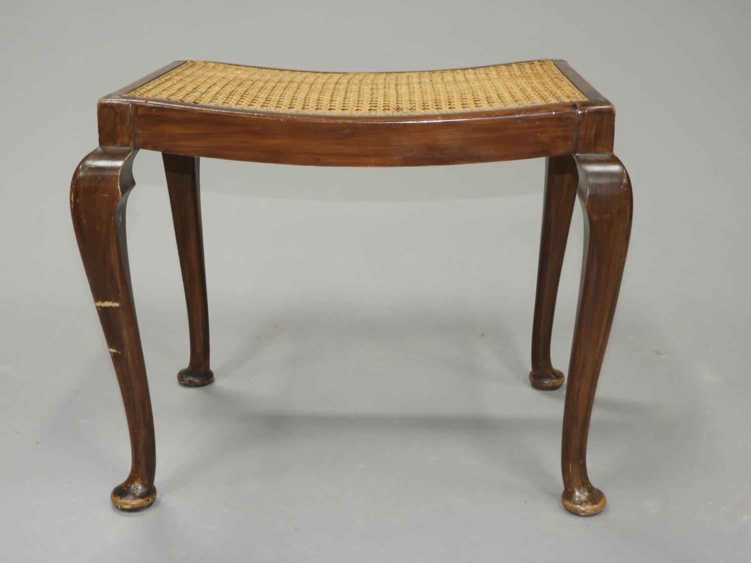 queen anne style caned bench, early 20th century, 18" x 22" x 16"