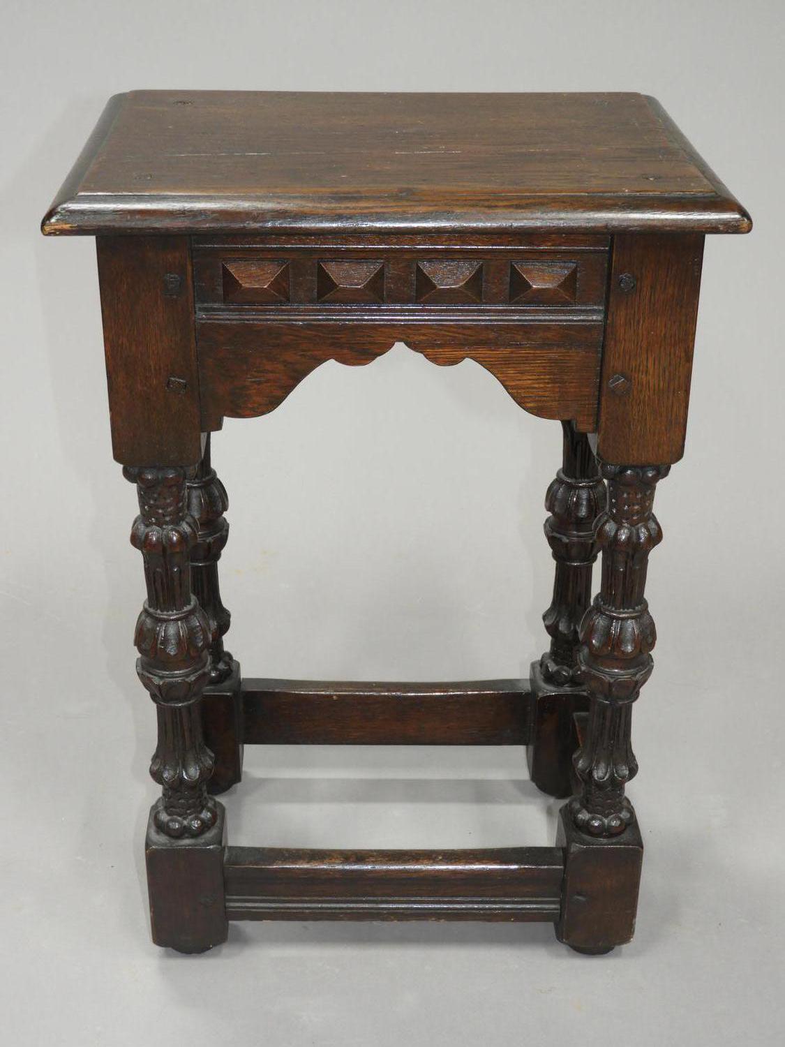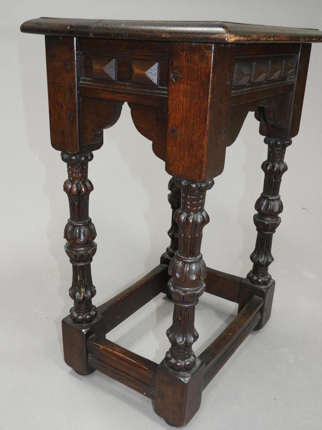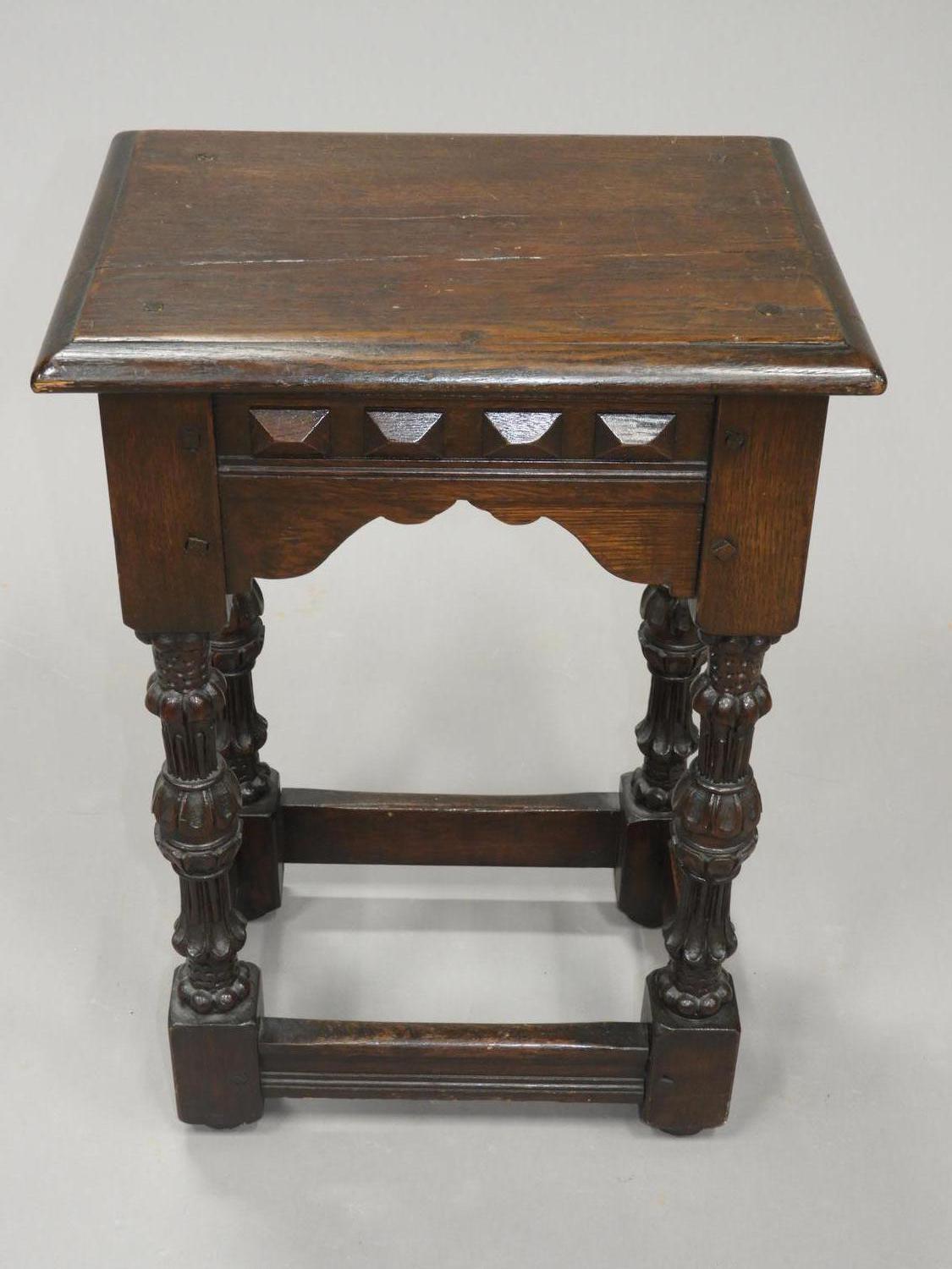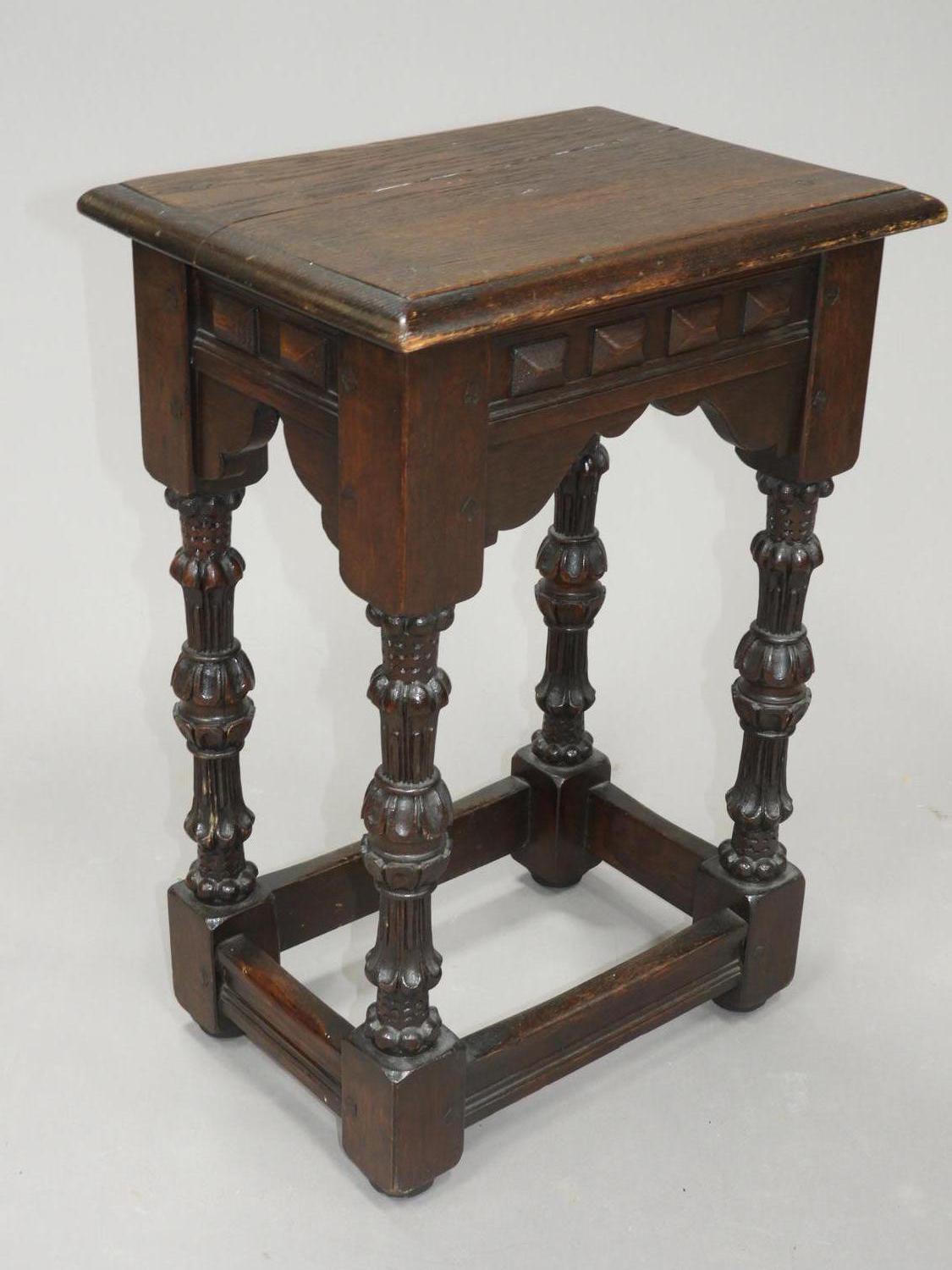 oak joint stool in the 17th century english manner, c.1900. 23 1/2" x 16" x 12"