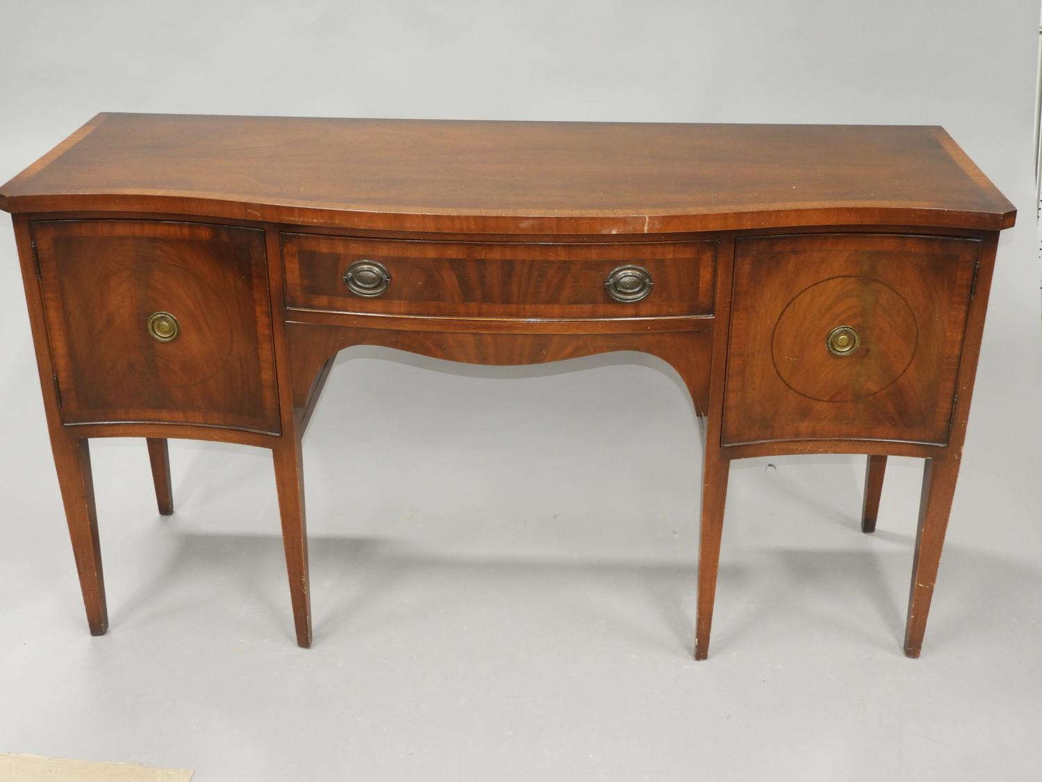george iii style cross banded mahogany sideboard, mid 20th century, 36" x 66" x 33 1/2"