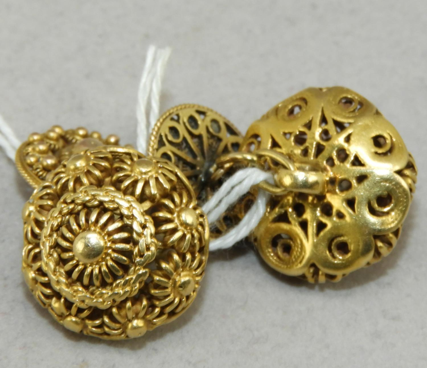 hallmarked gold cannetille work cufflinks, 24.1grms