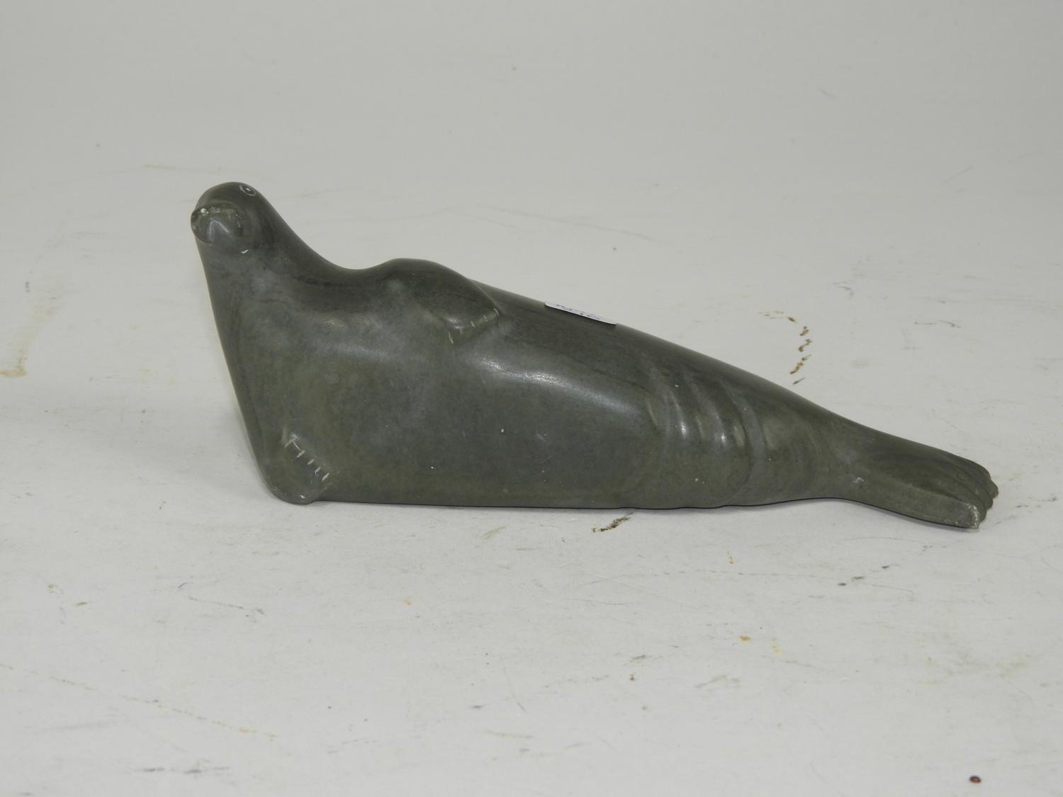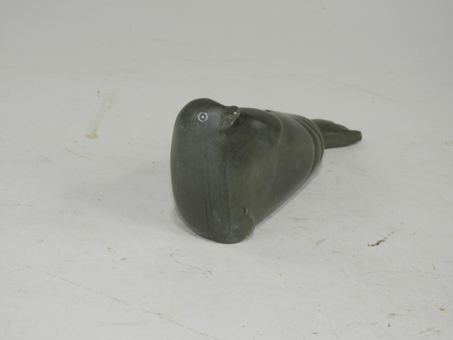 inuit carved stone seal, 2 1/2" x 6 1/2"