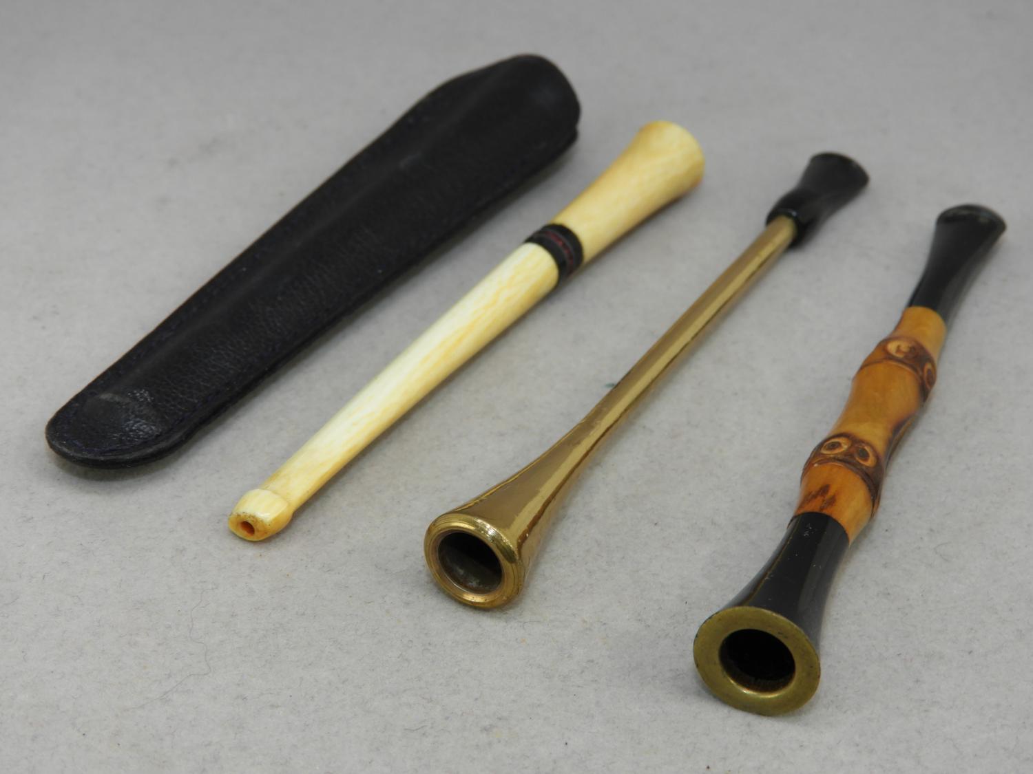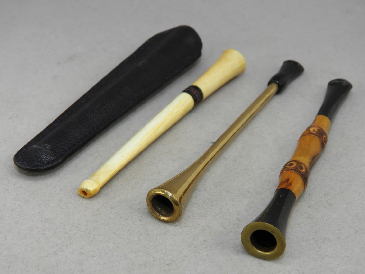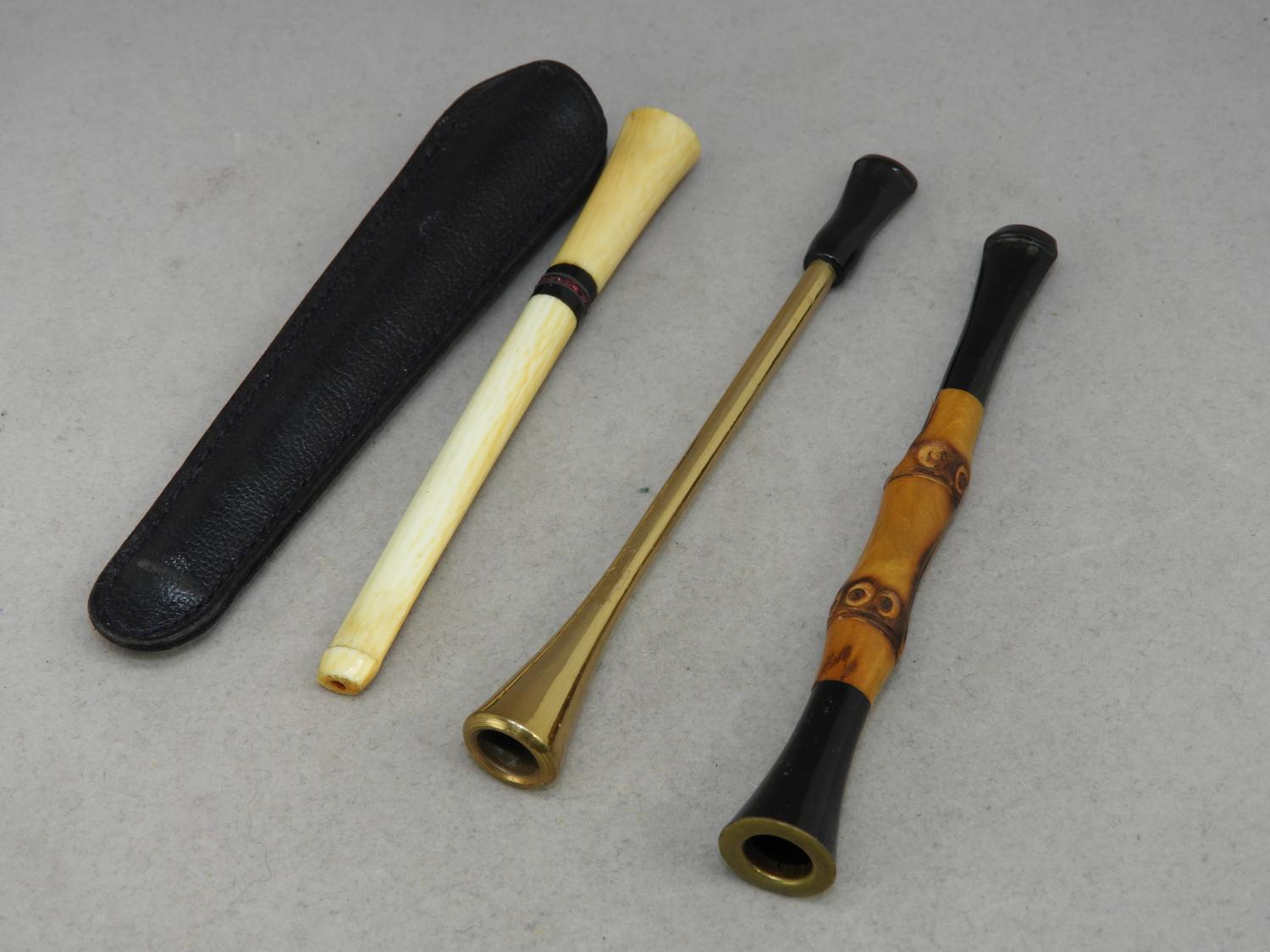 3 deco cigarette holders, ht 4 3/8" and smaller