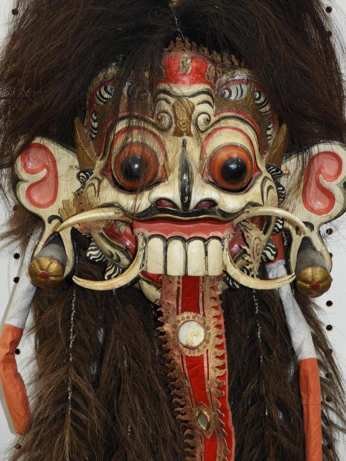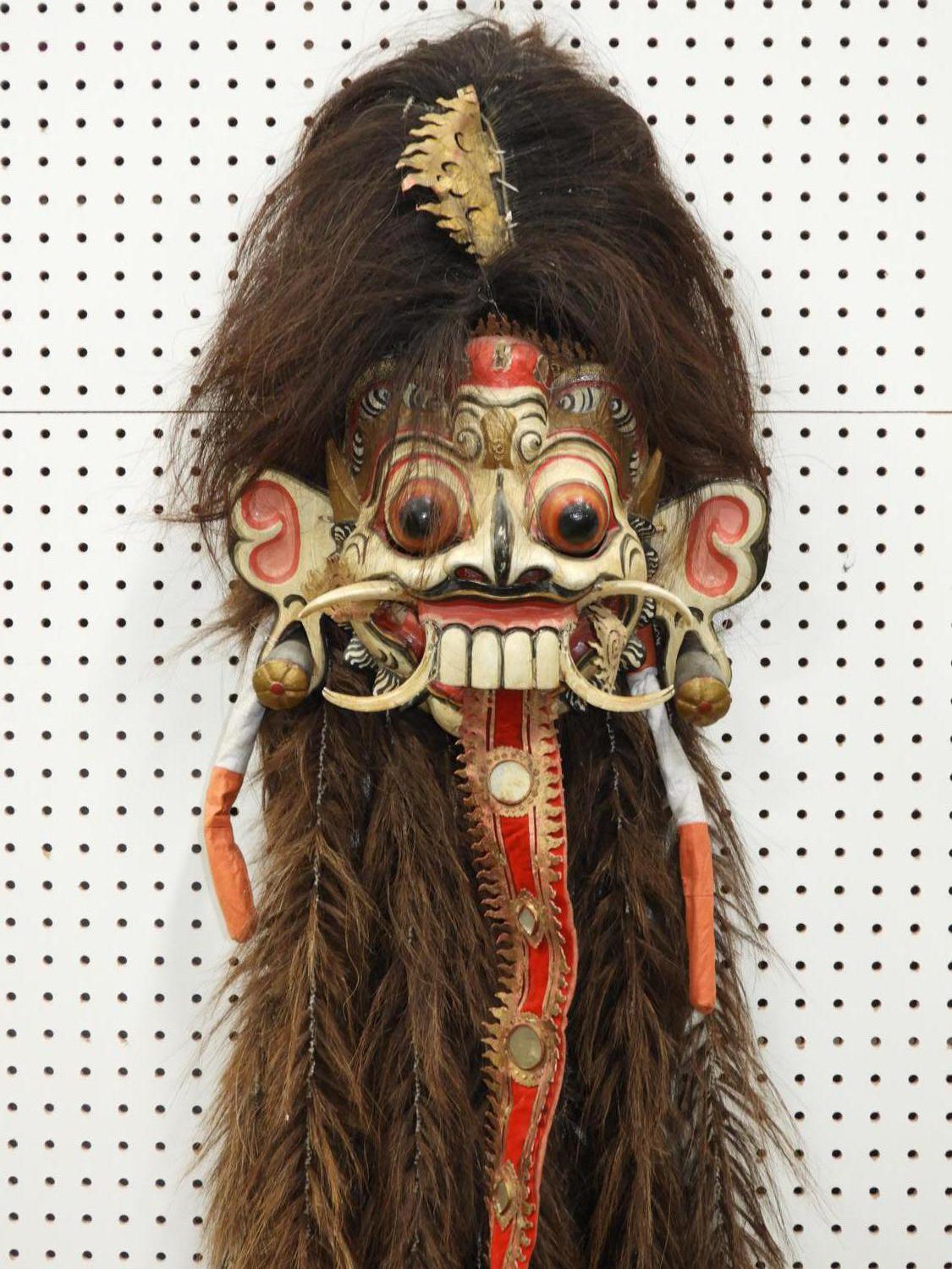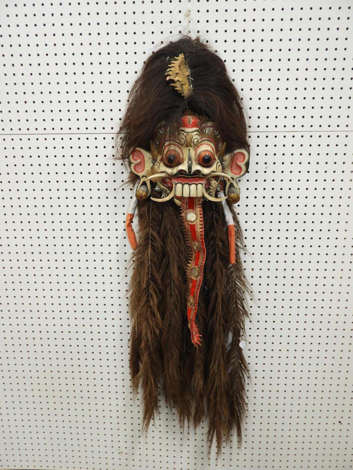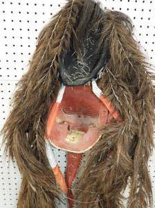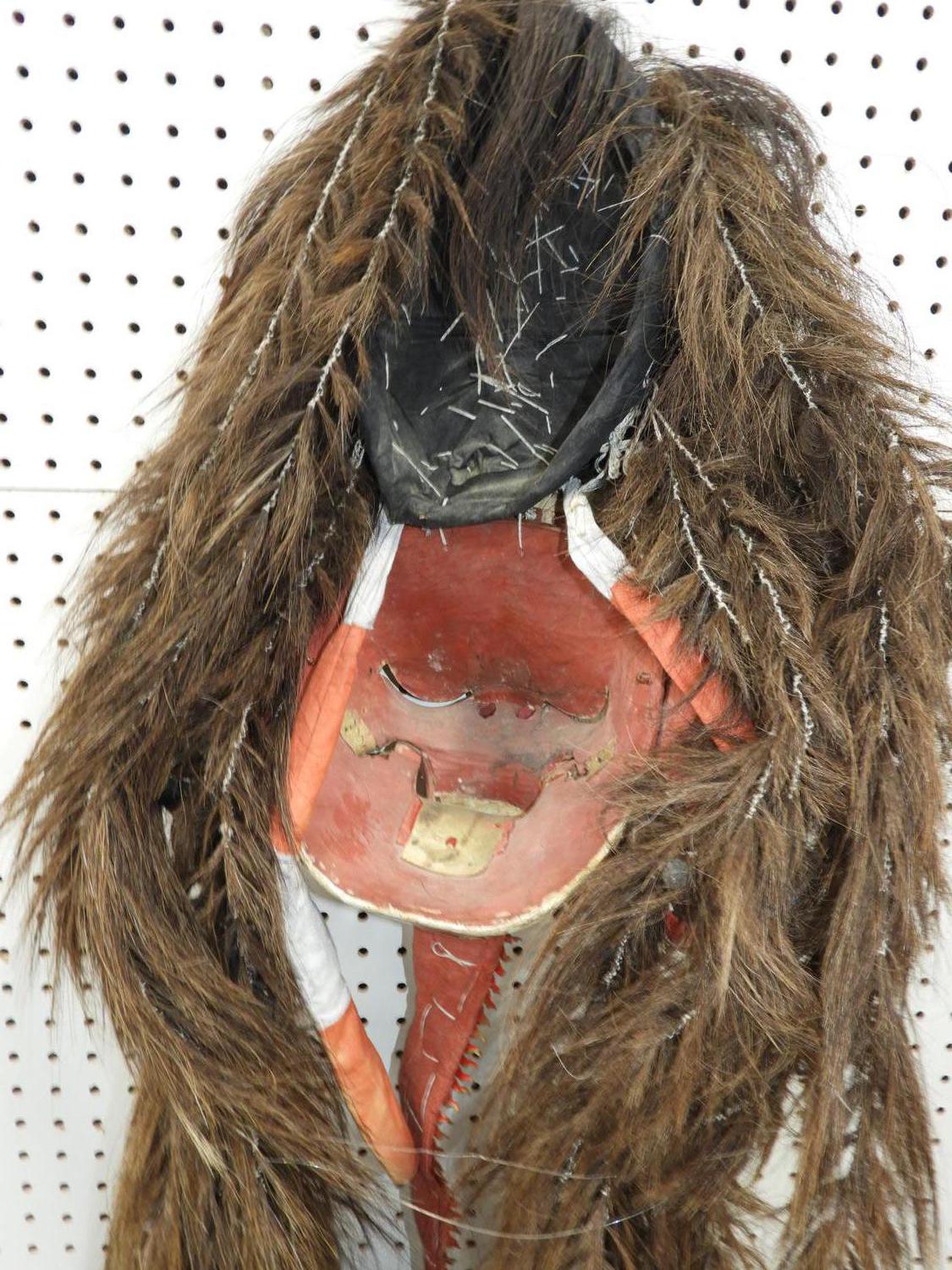 hand carved asian dragon beast mask with horsehair, ht with hair 44"