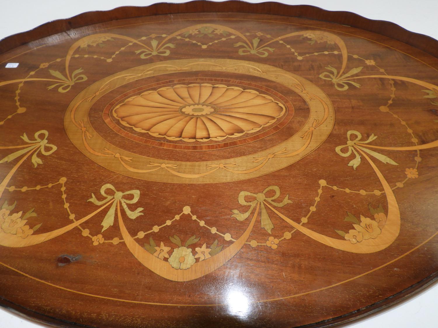 edwardian marquetry inlaid mahogany serving tray, 27 1/2" x 19 1/2"