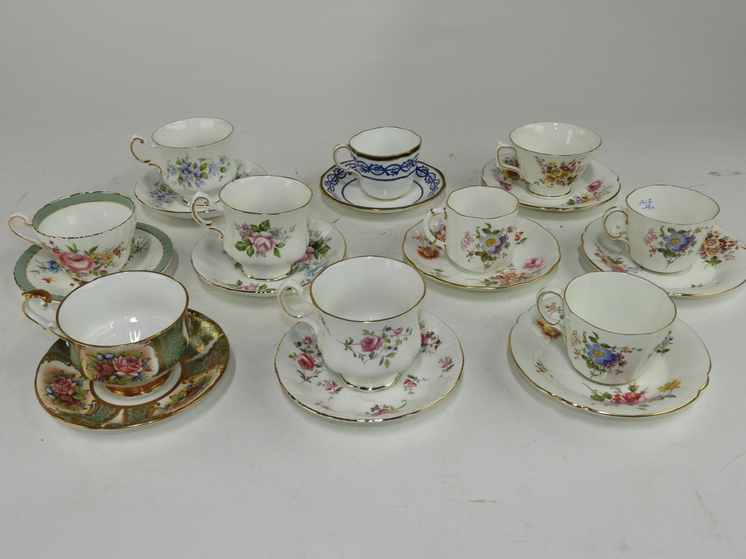 ten royal crown derby and paragon tea cups and saucers