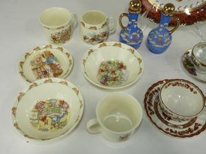 lot of misc. china including royal doulton bunnykins, 19th century platters, tea cups and saucers