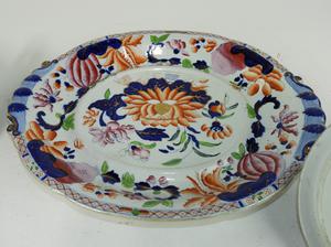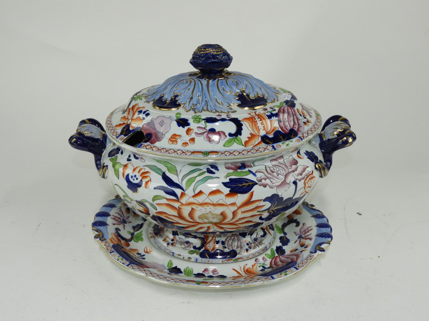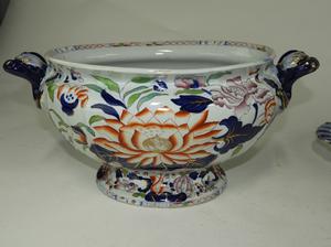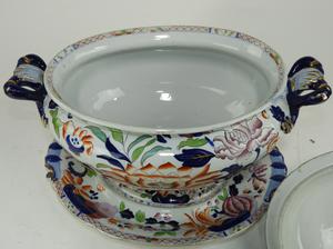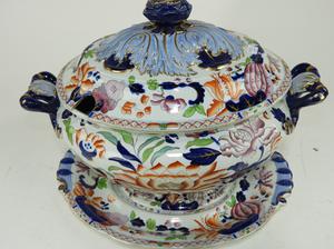 mason's ironstone covered tureen on stand, 13" x 16" x 12"