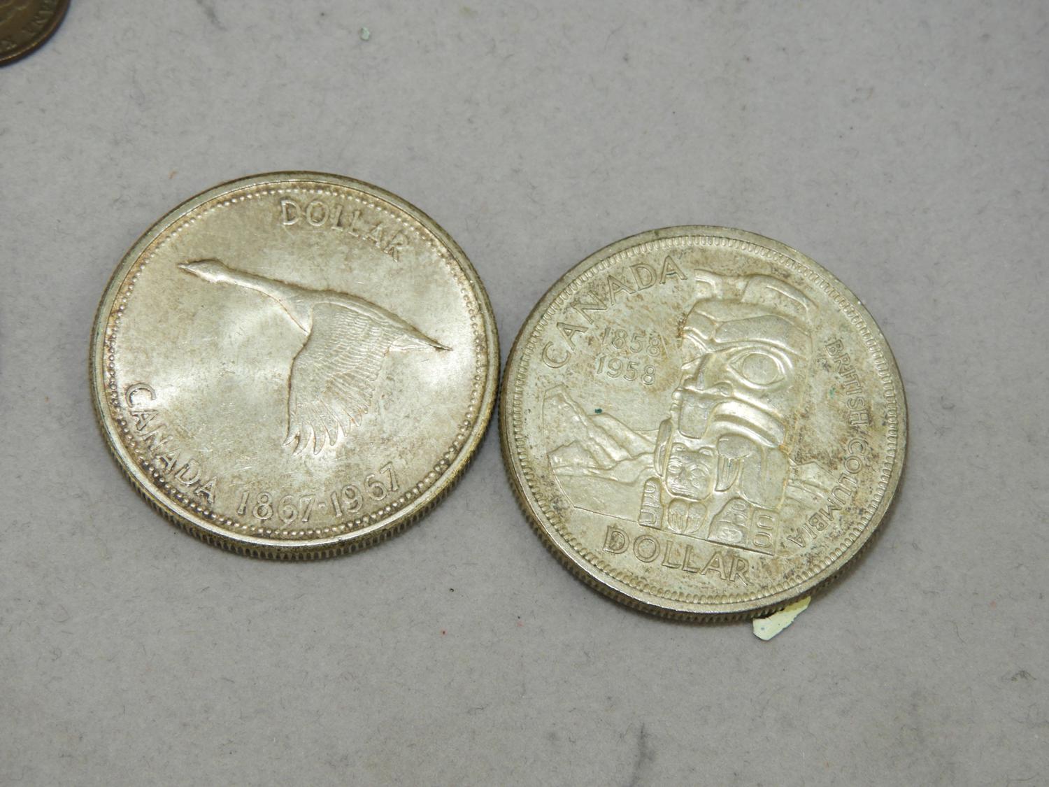 lot of canadian dutch and international coins, including two pre 1967 canadian silver dollars