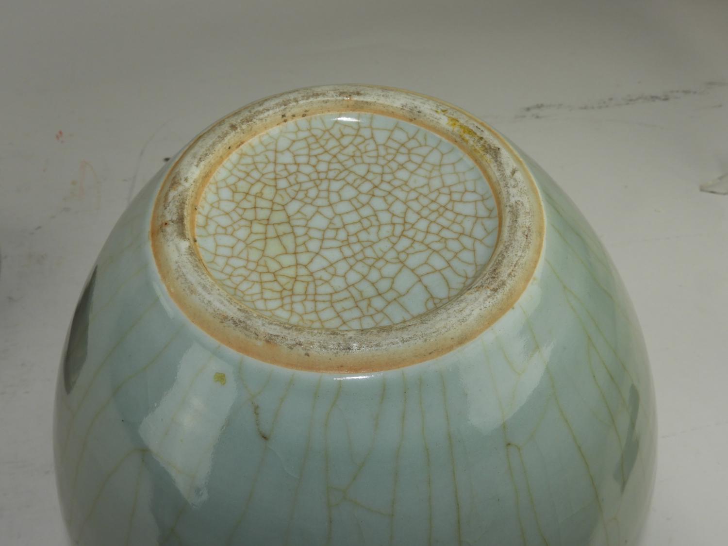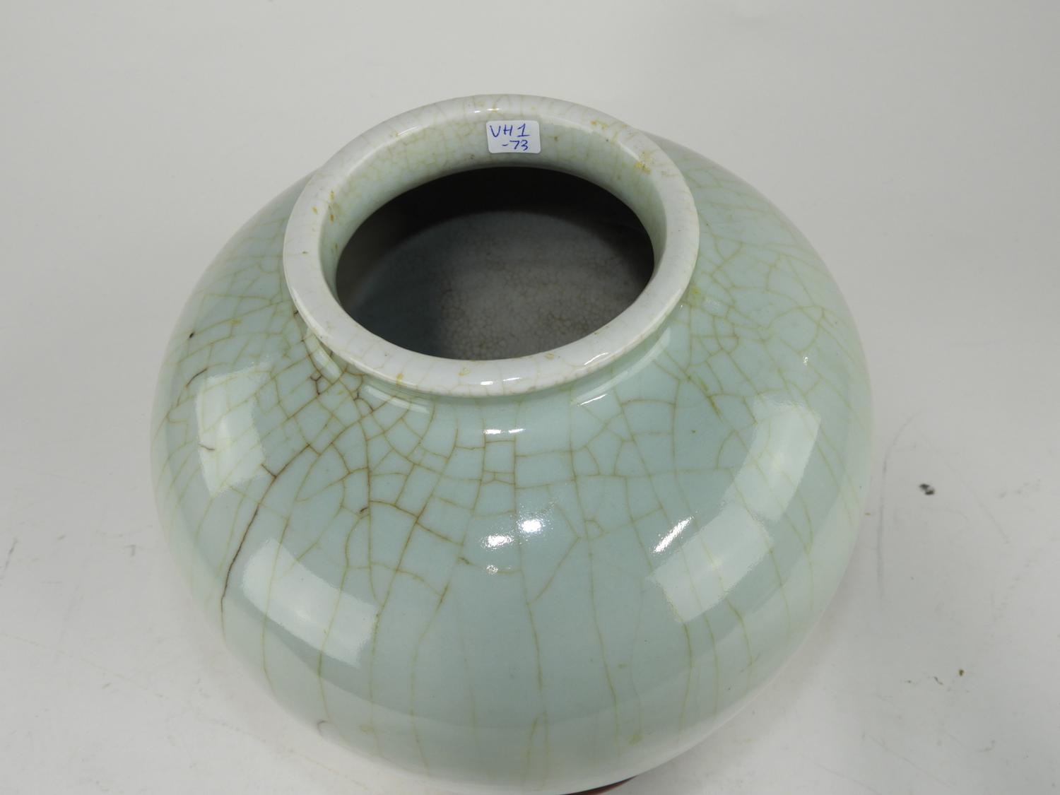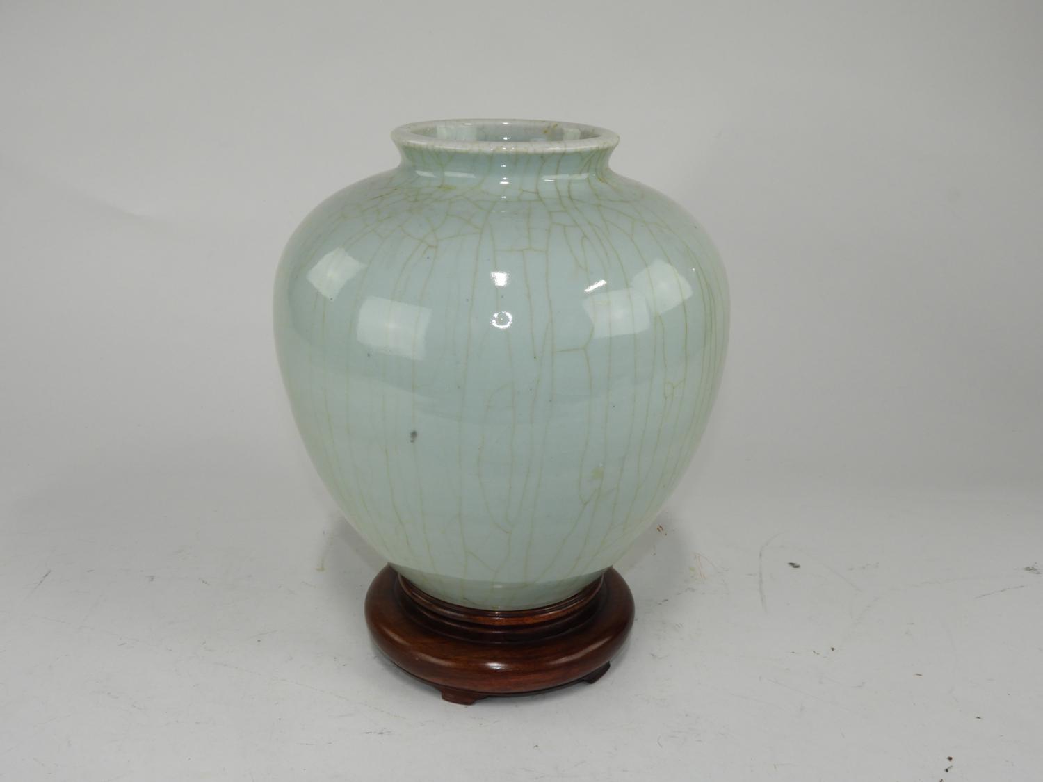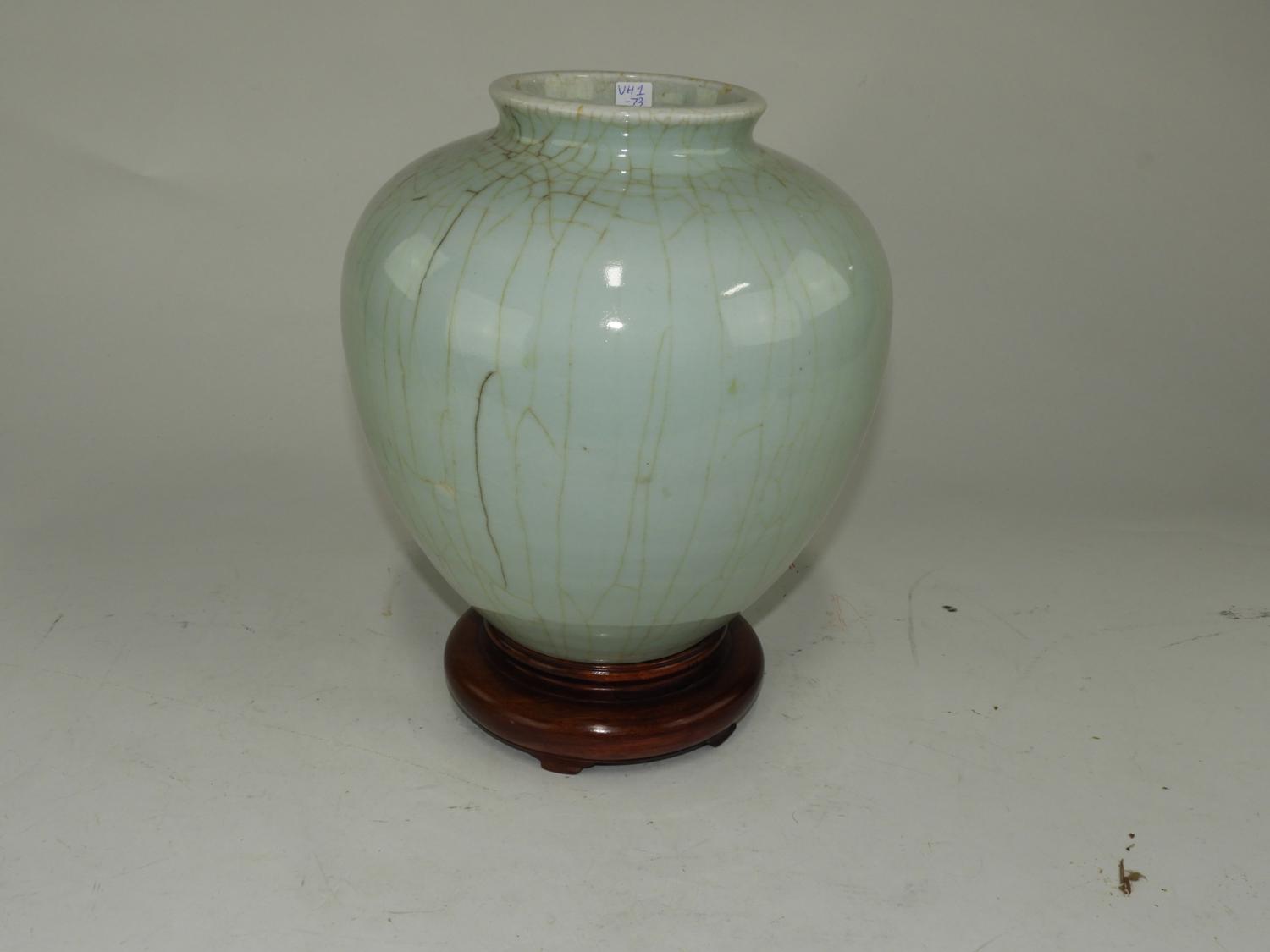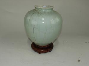 celadon crackle glazed vase on stand, ht. 13 1/2"