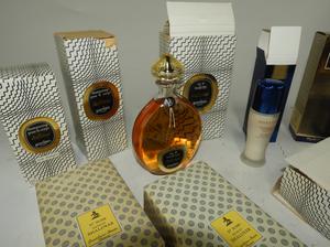 2 Eau de toilette, one lotion, 2 talc, 2 shampoo, 2 soap, antipersperant
