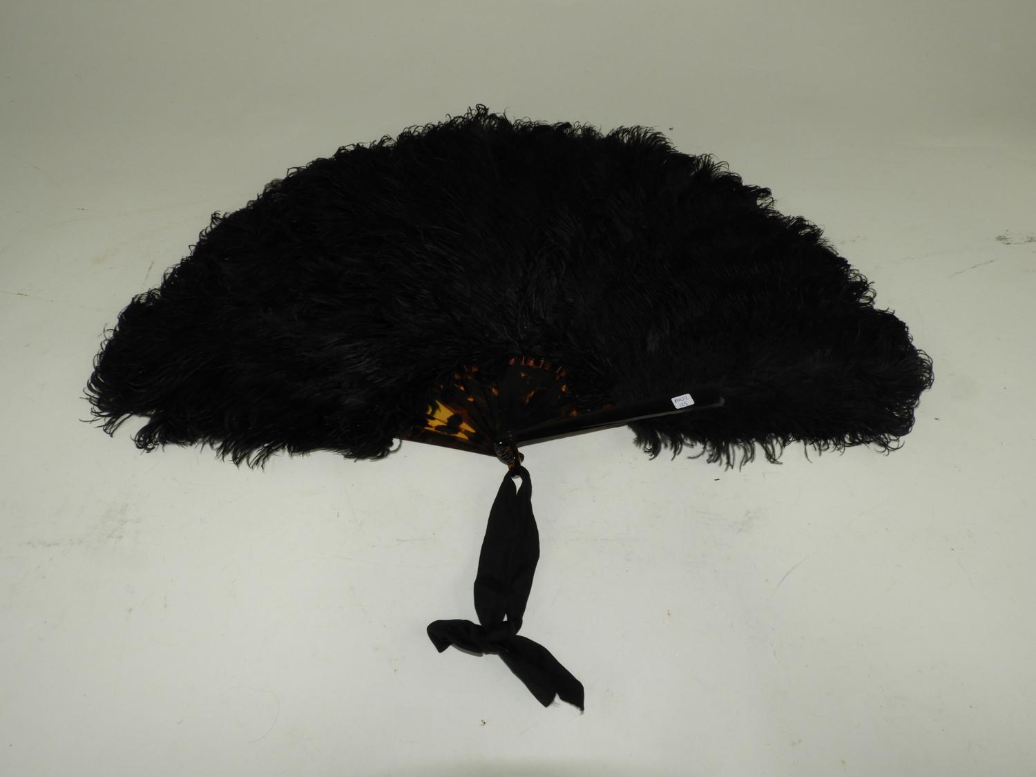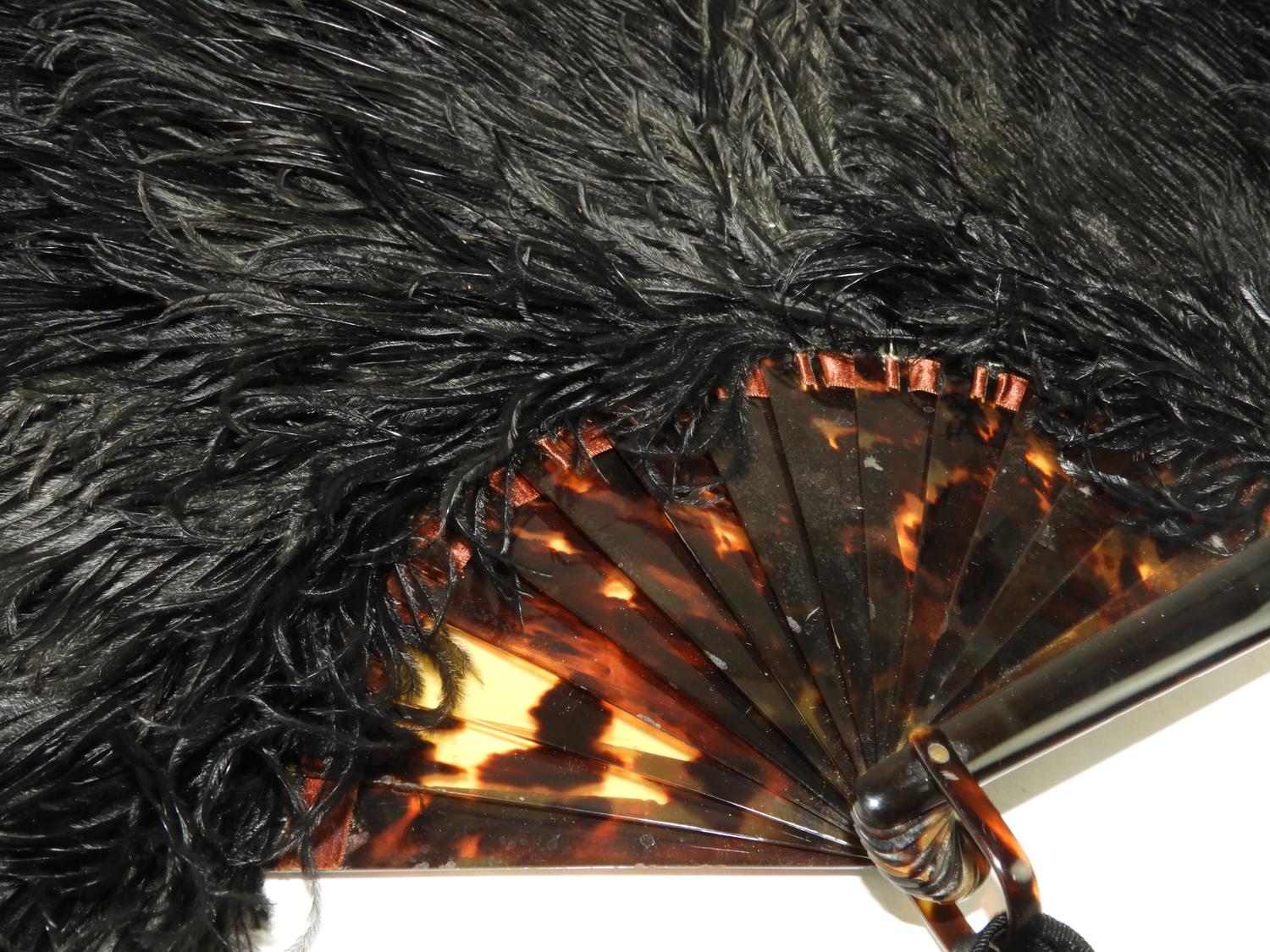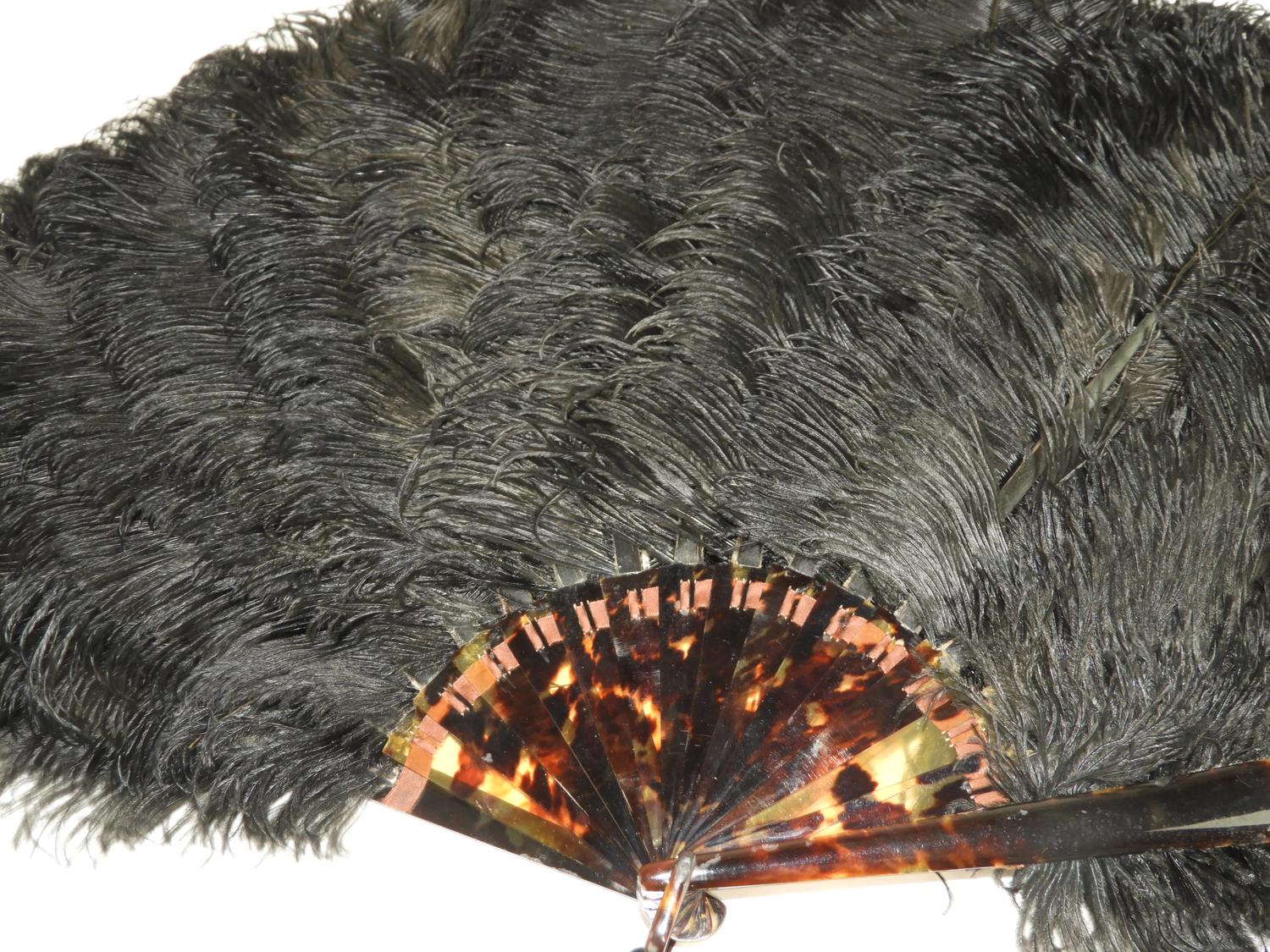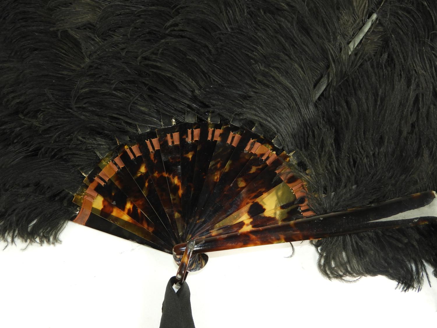 tortoise shell ostrich feathered fan, circa 1920s, 26" across