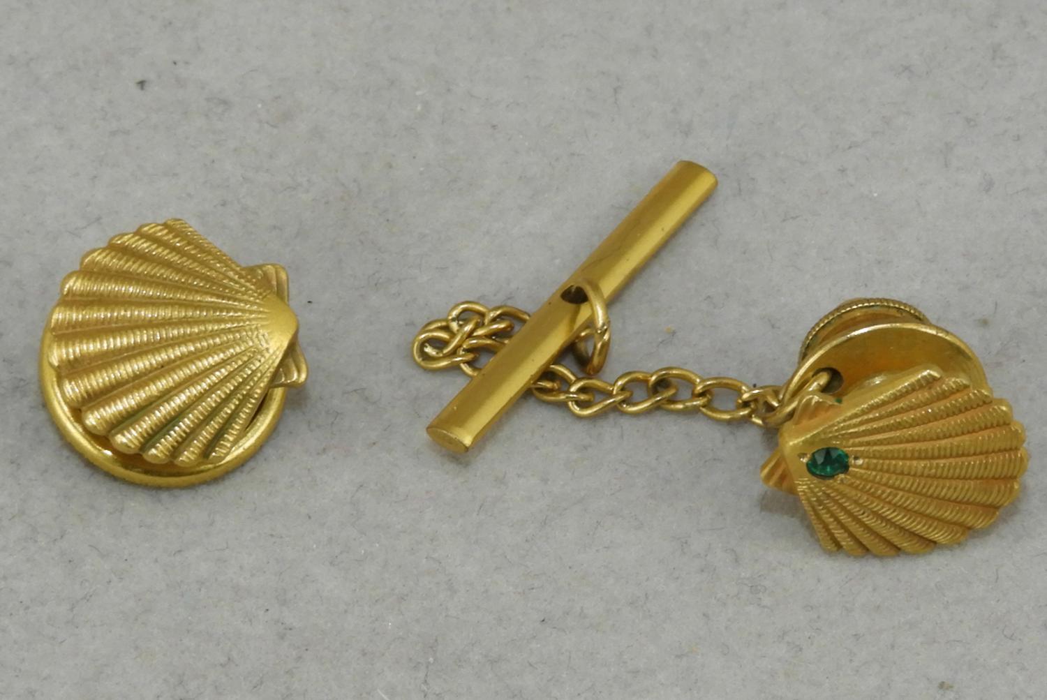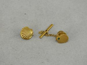 birks 10k shell single cufflink and tie tack, 3.6grams