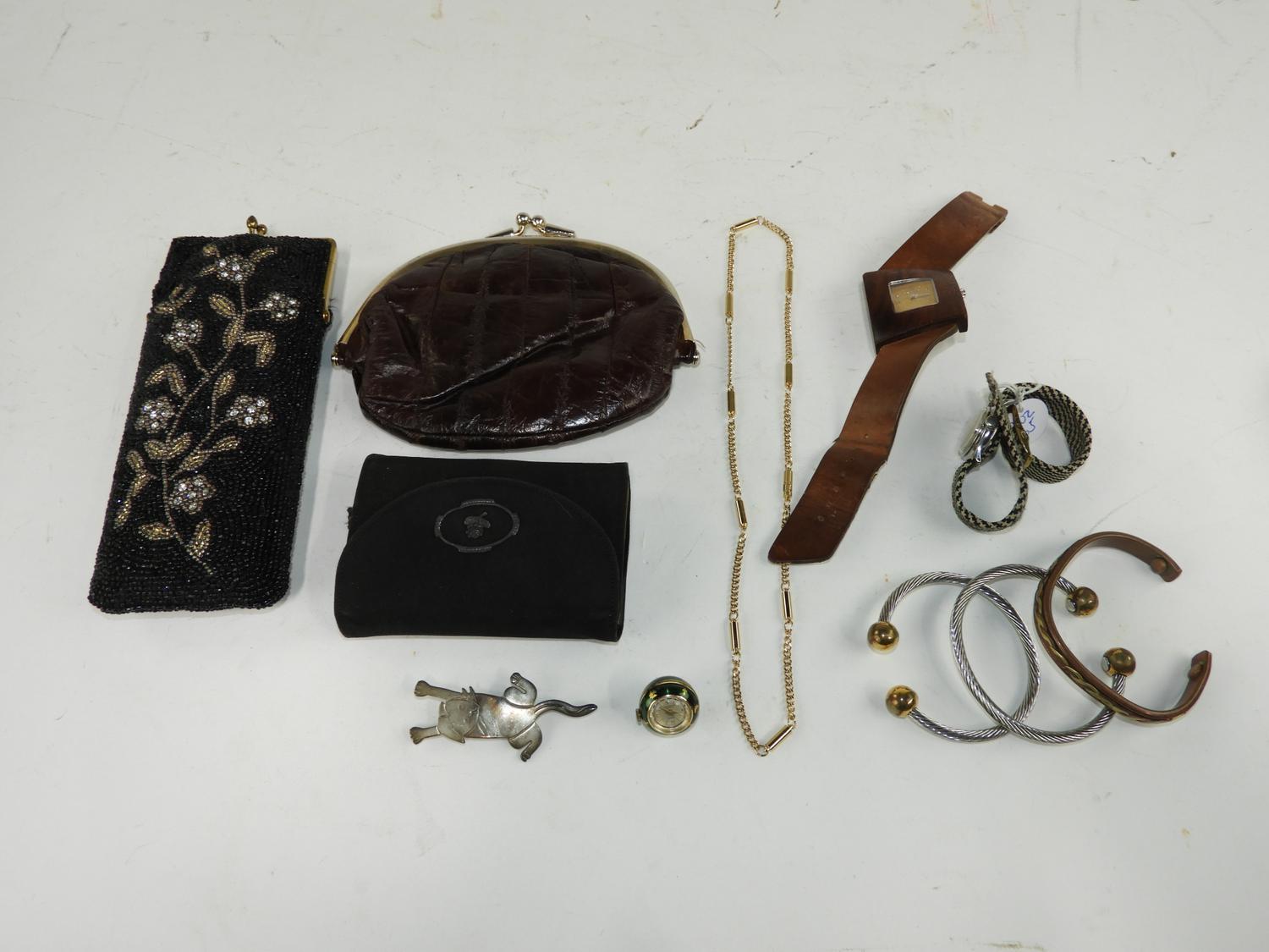lot of costume, flask, purse