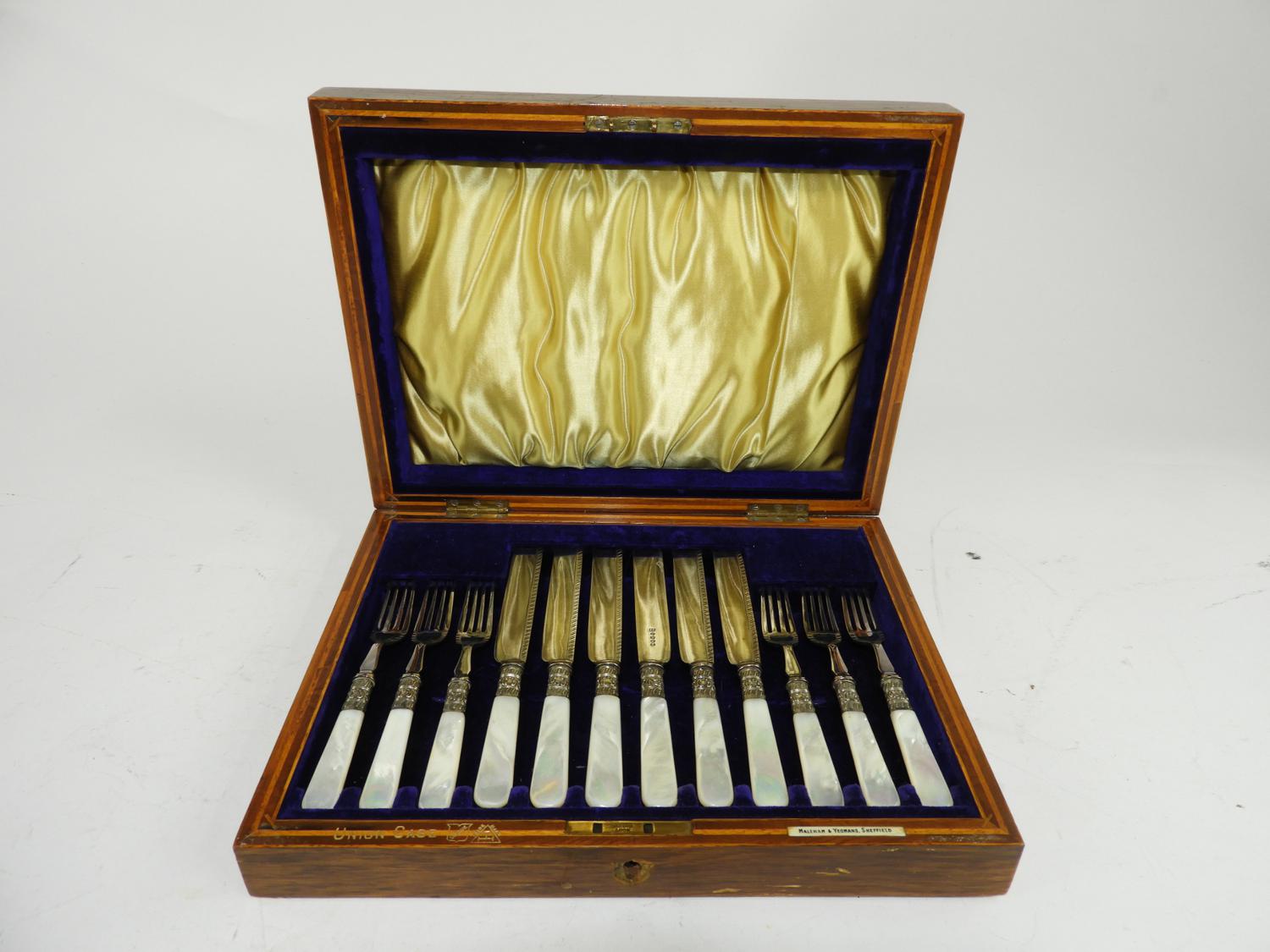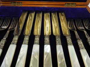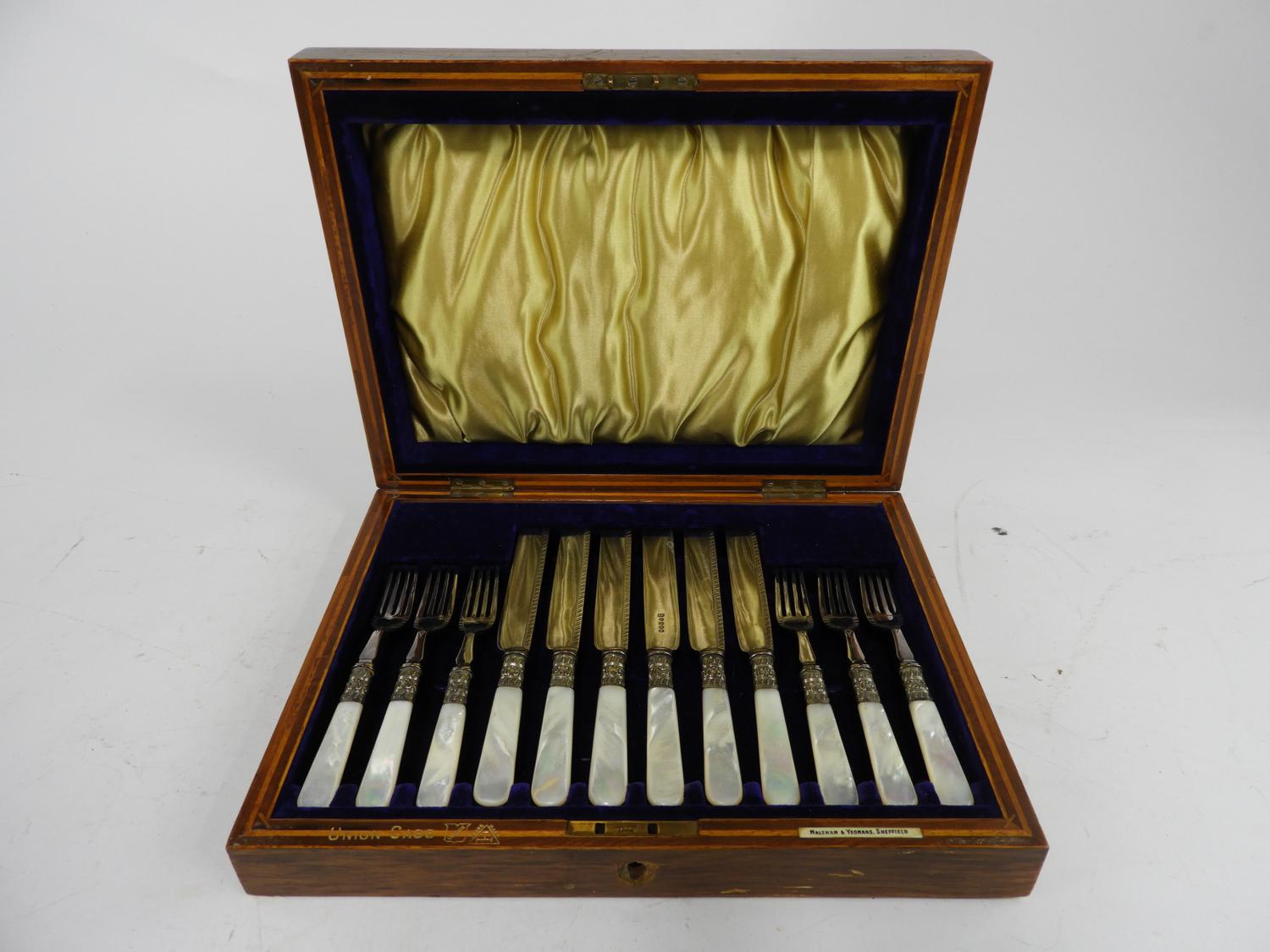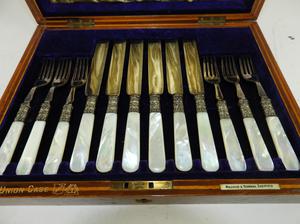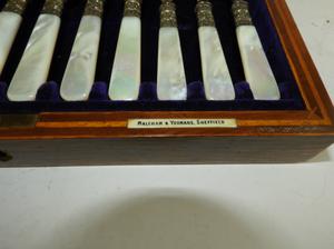 maltham and yeomans, sheffield mother of pearl handled fish set in box