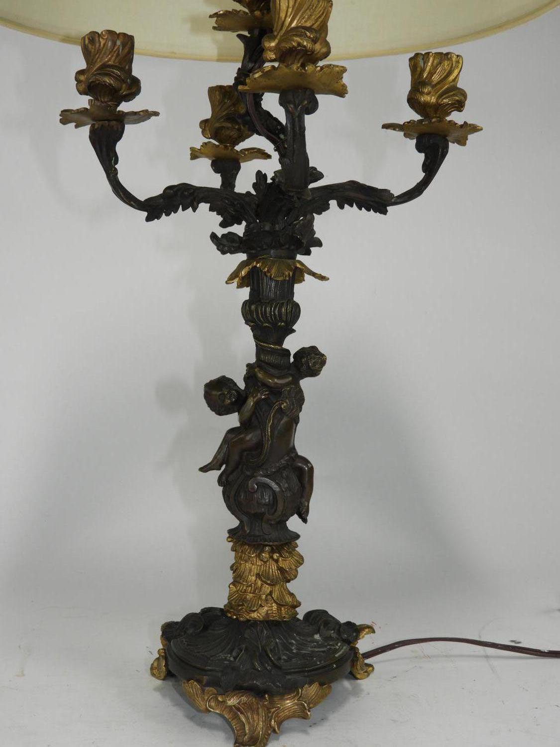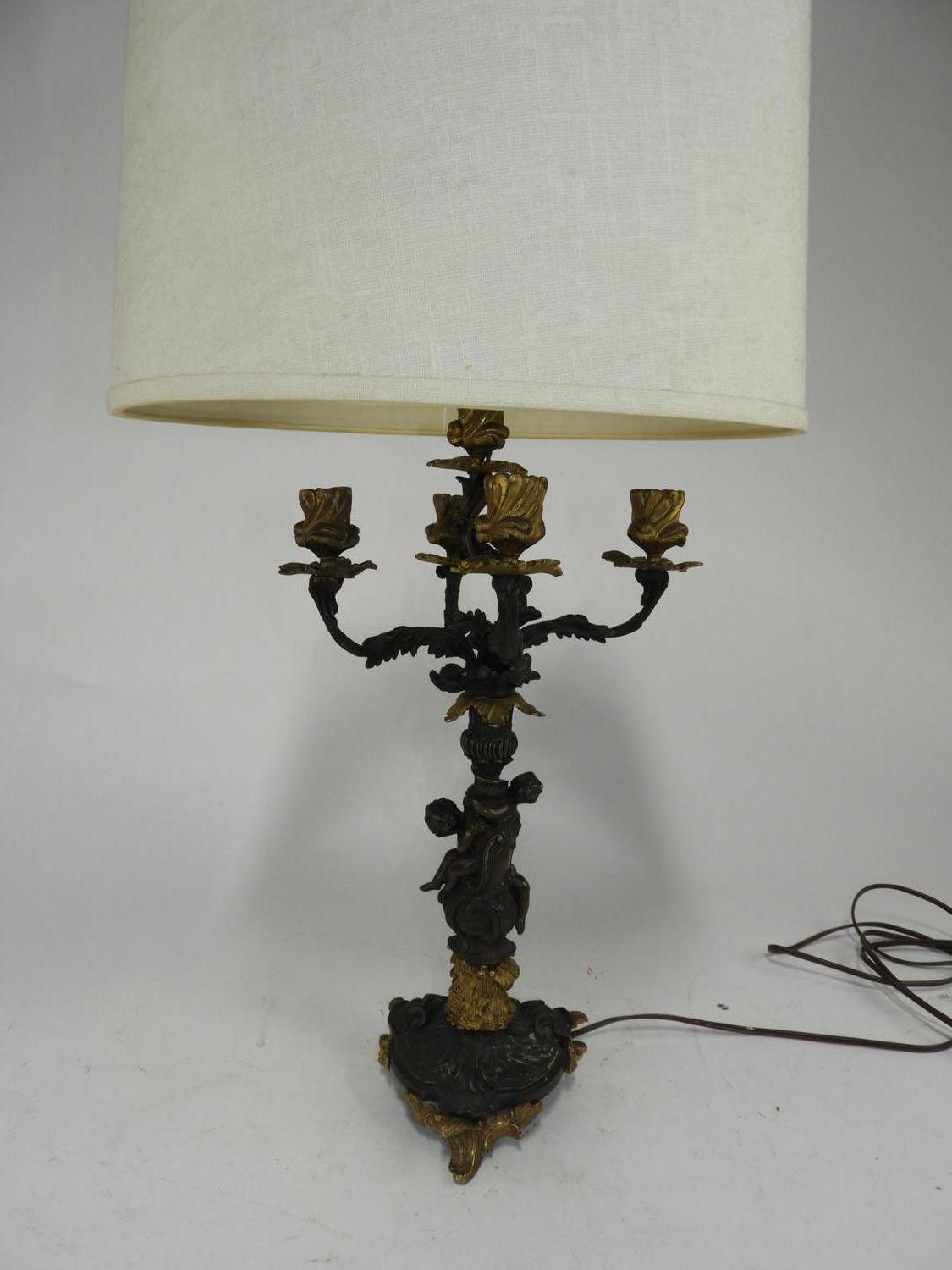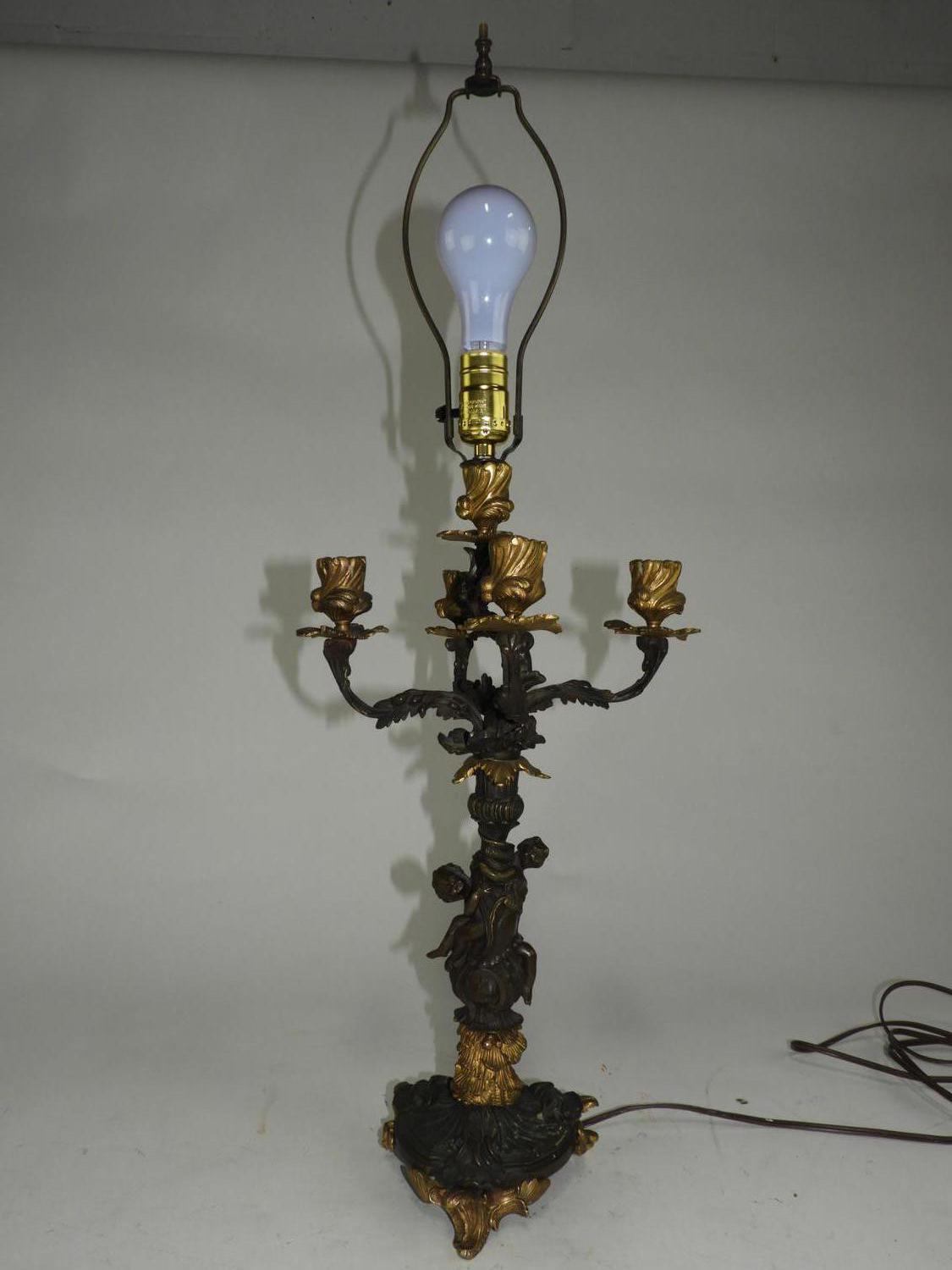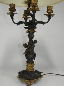 late 19th/early 20th century partial gilt bronze figural candelabra, electrified, ht. 19"