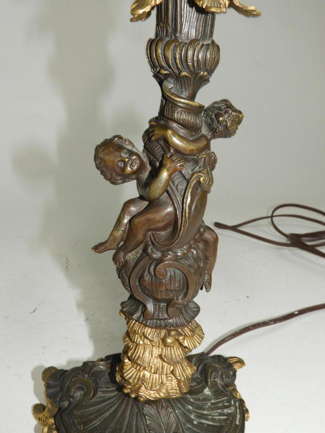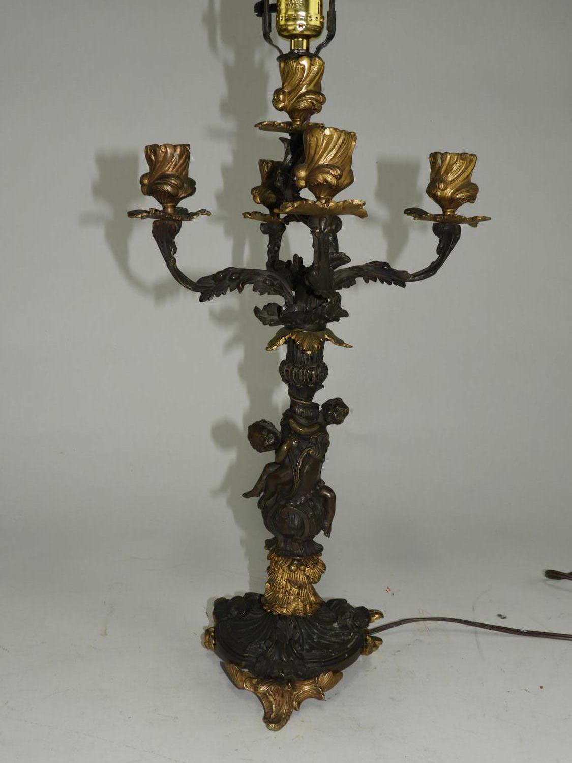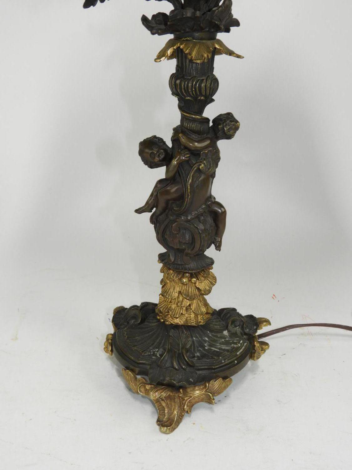 late 19th/early 20th century partial gilt bronze figural candelabra, electrified, ht. 19"
