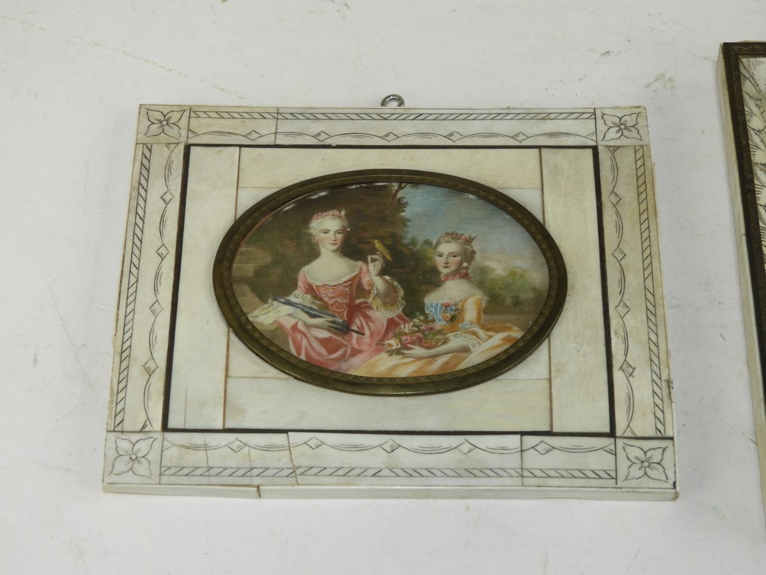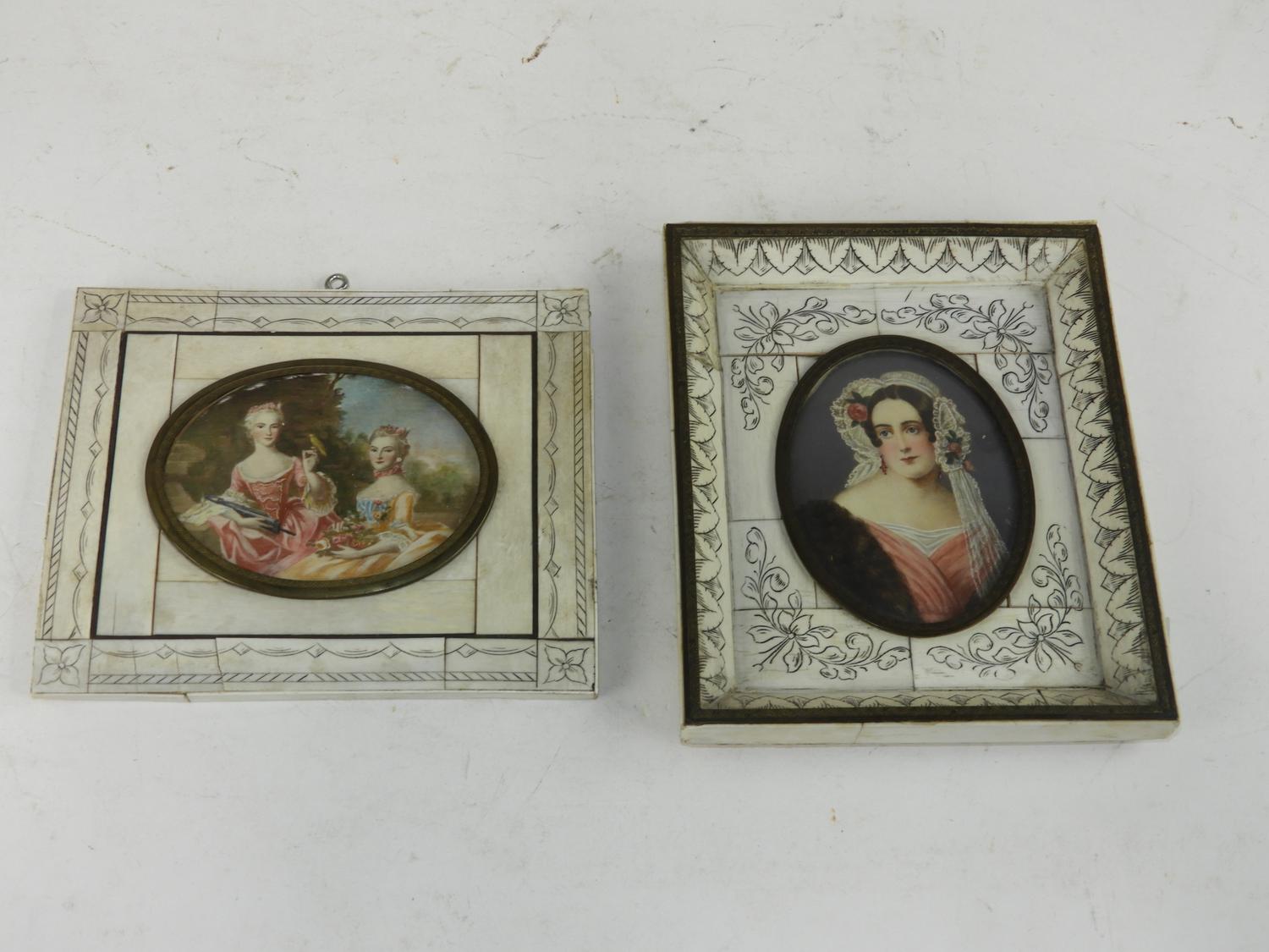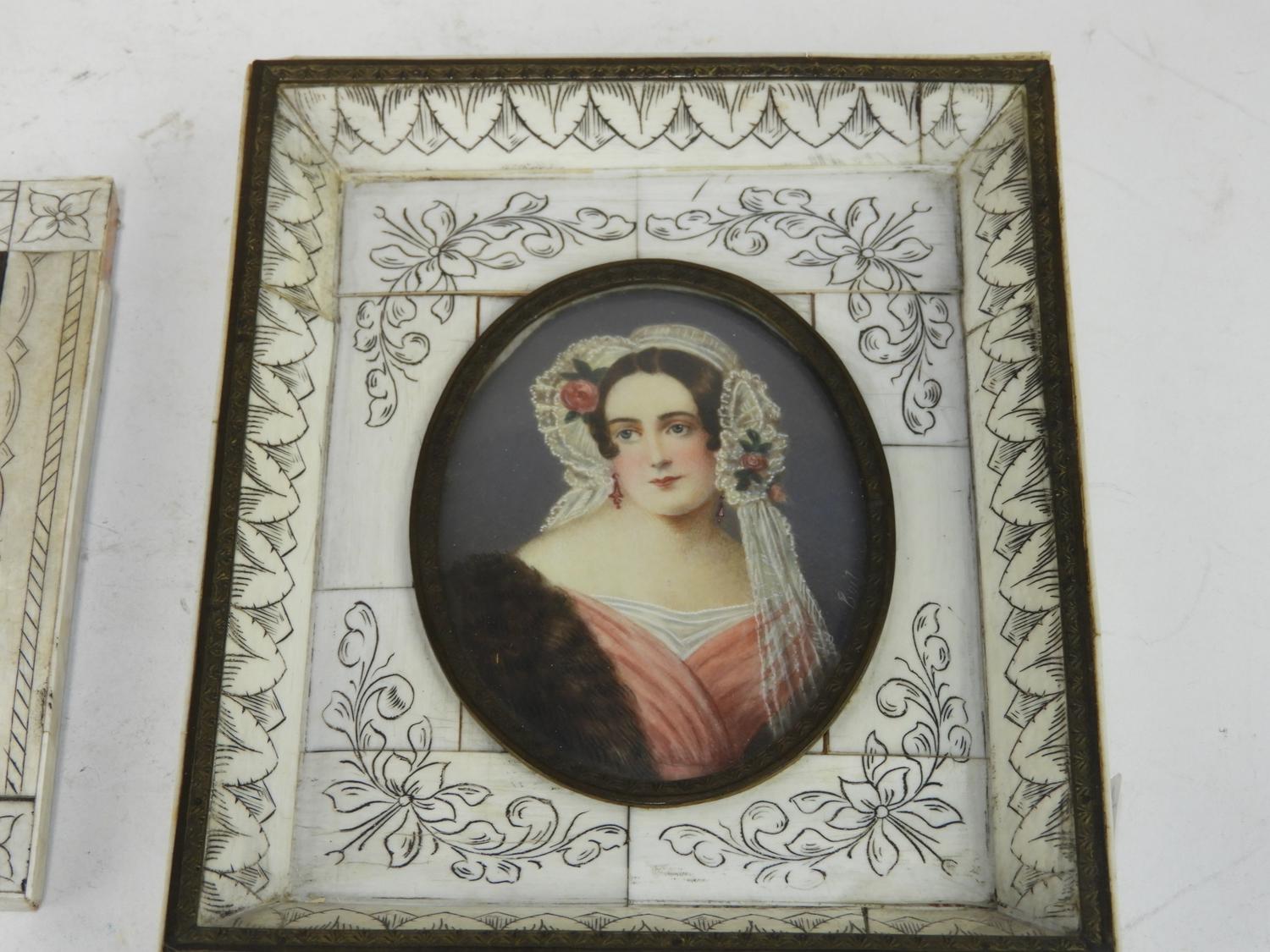 19th century portrait miniature signed boit, 3 1/2" x 2 1/2" in and ivory frame, with a similar framed portrait print