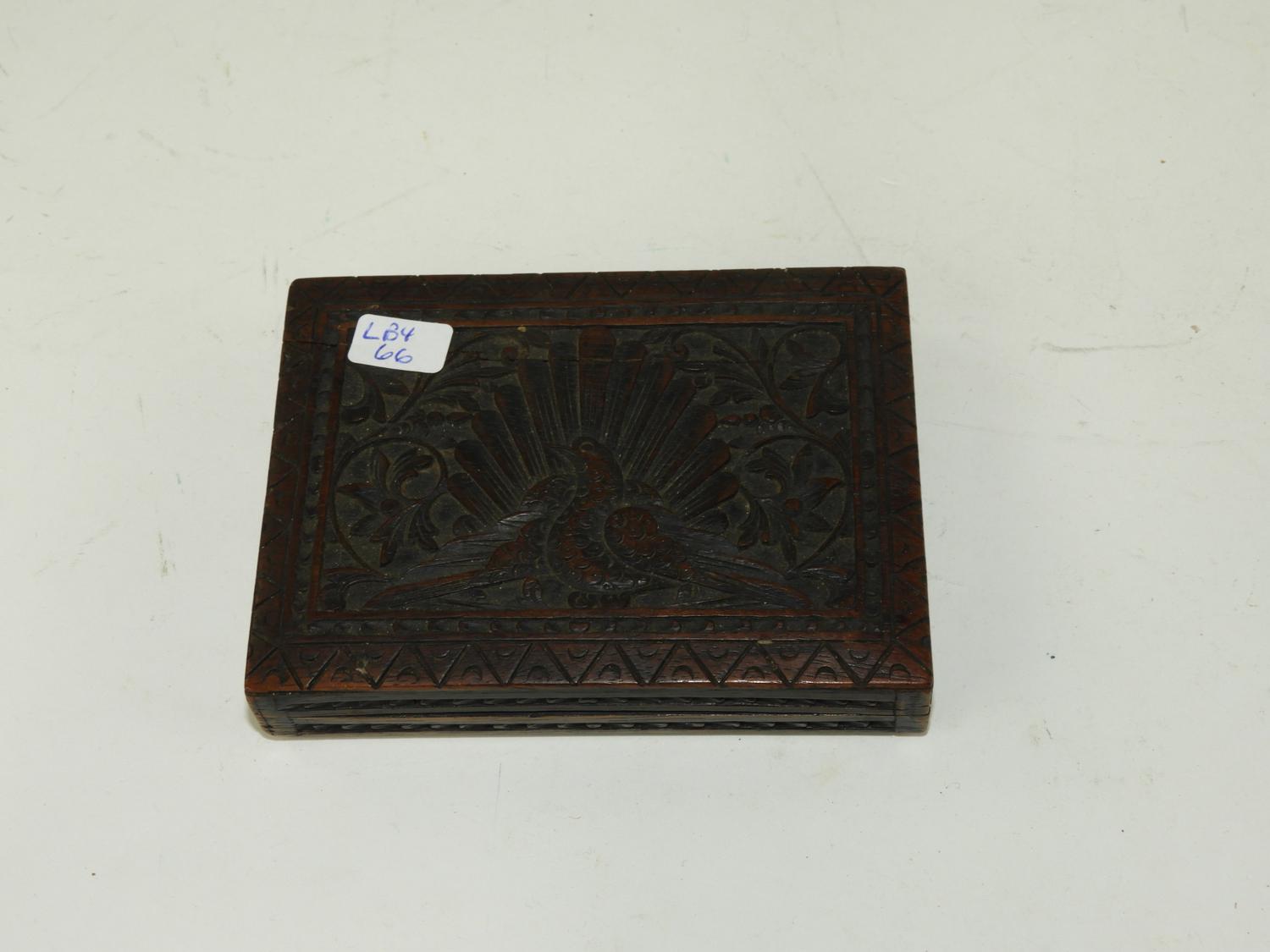 carved wood birds of paradise cigarette box, 4 1/8" x 3"