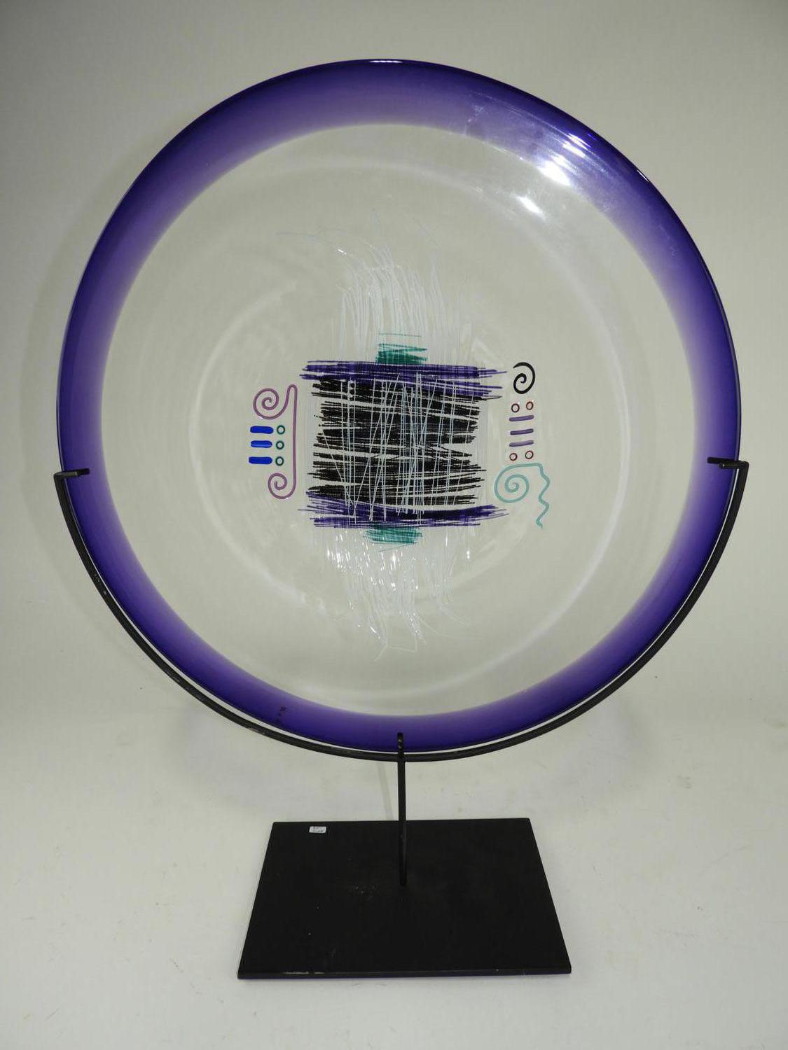 art glass charger on stand, ht. 24'