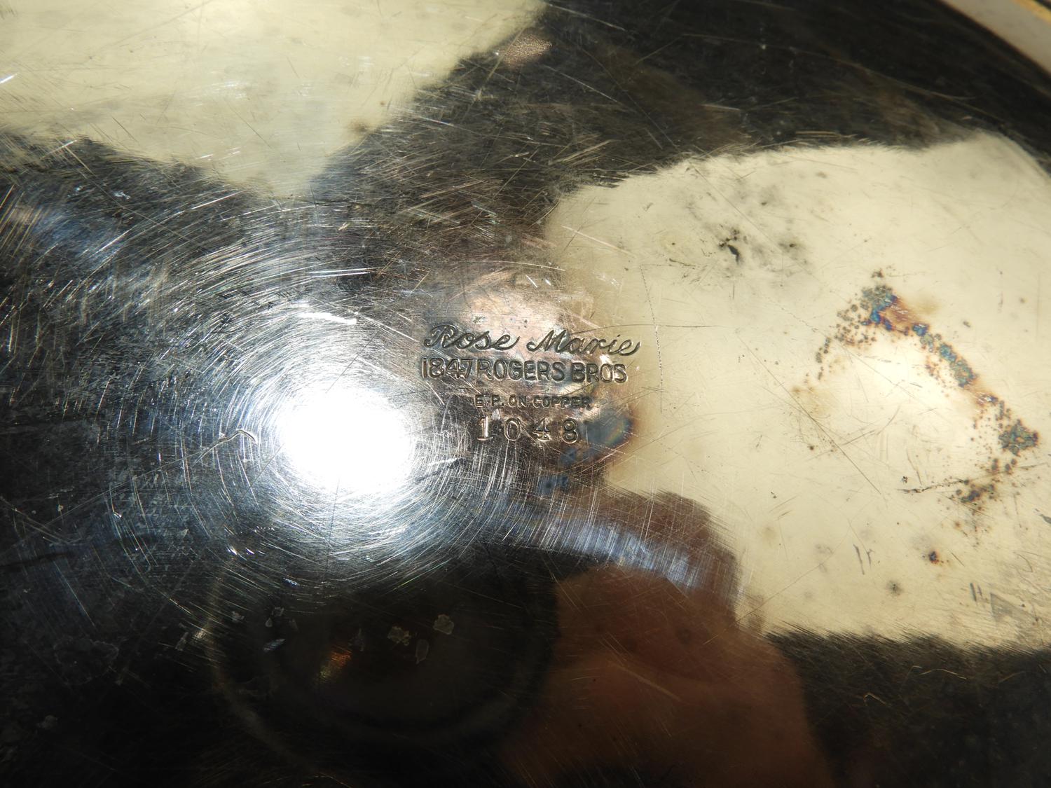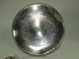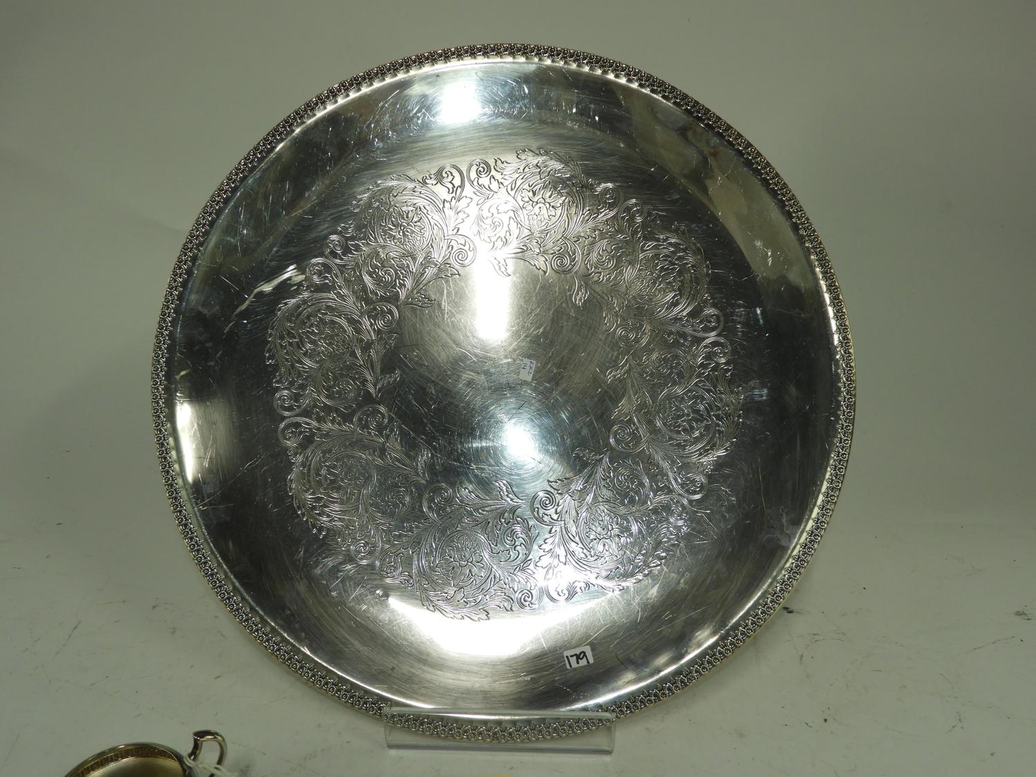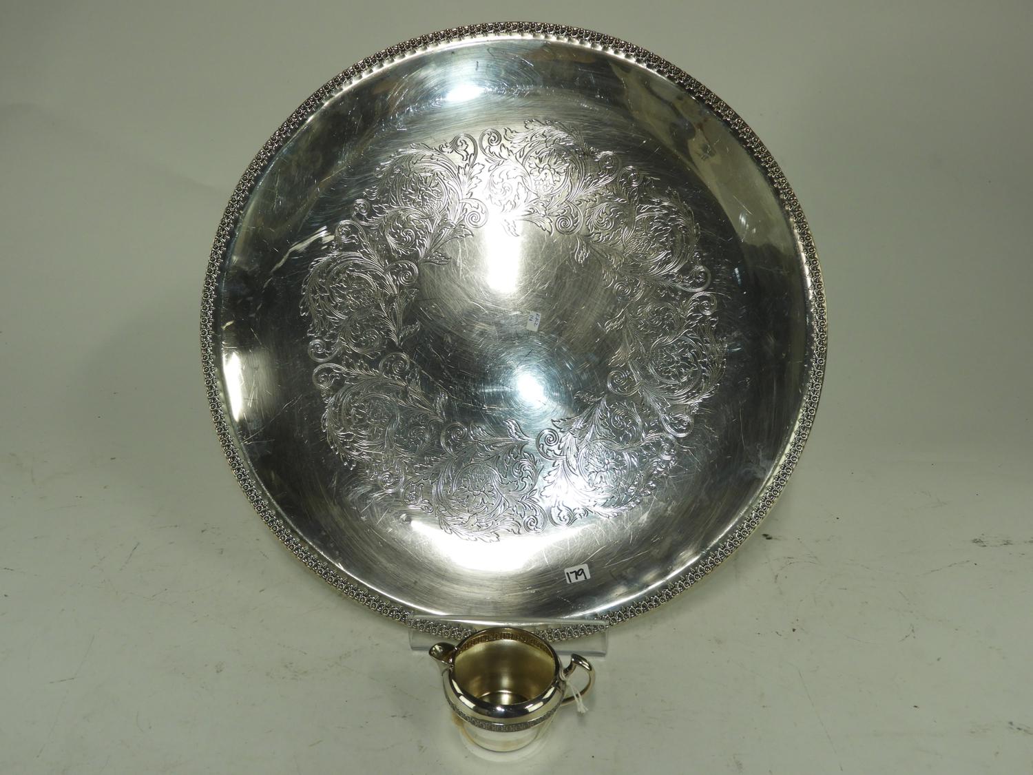 large silver plated platter with creamer, d.20"