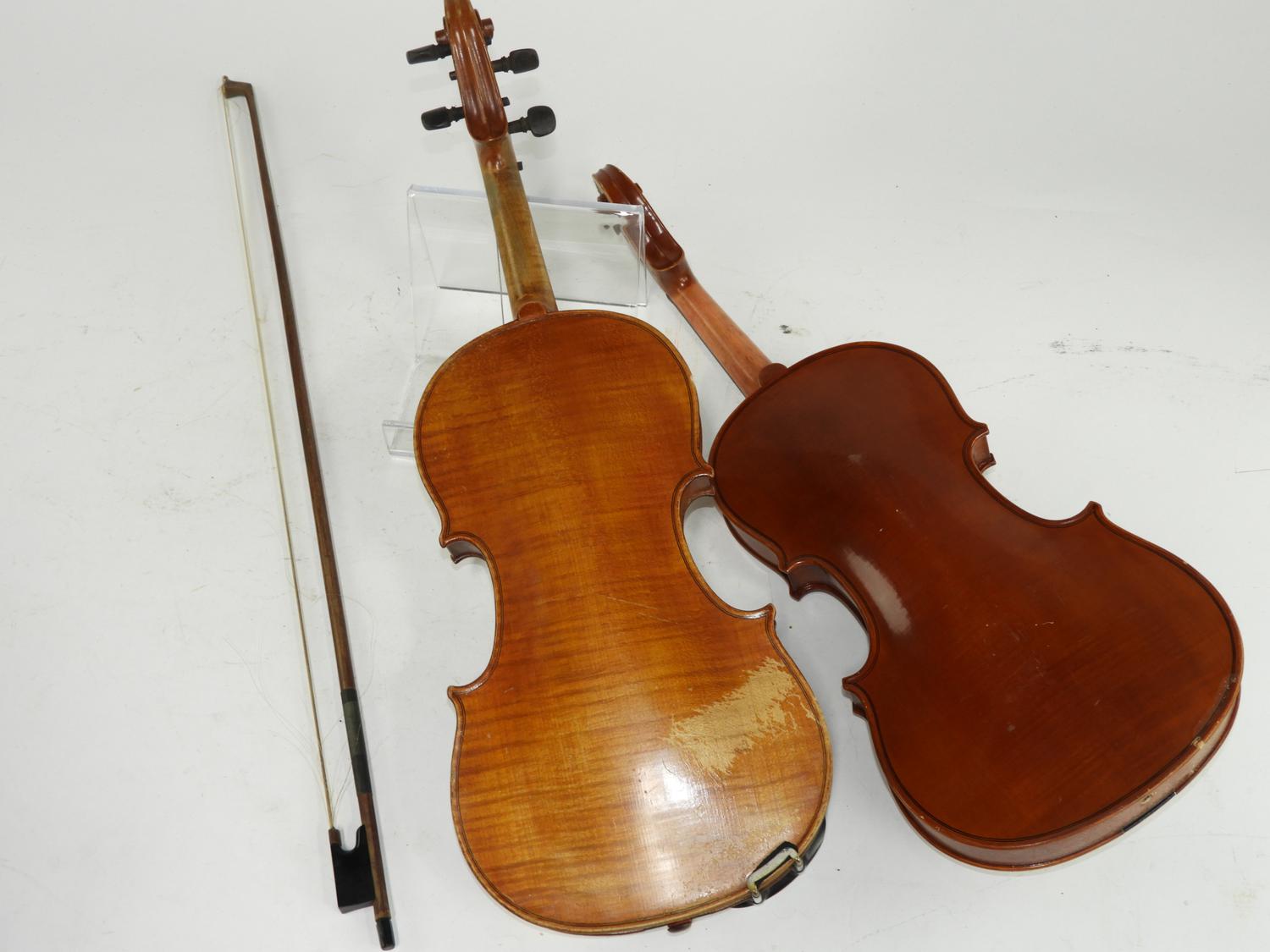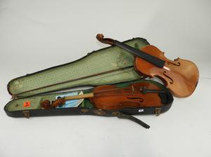 two students violins including yamaha, with a bow and case