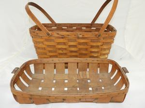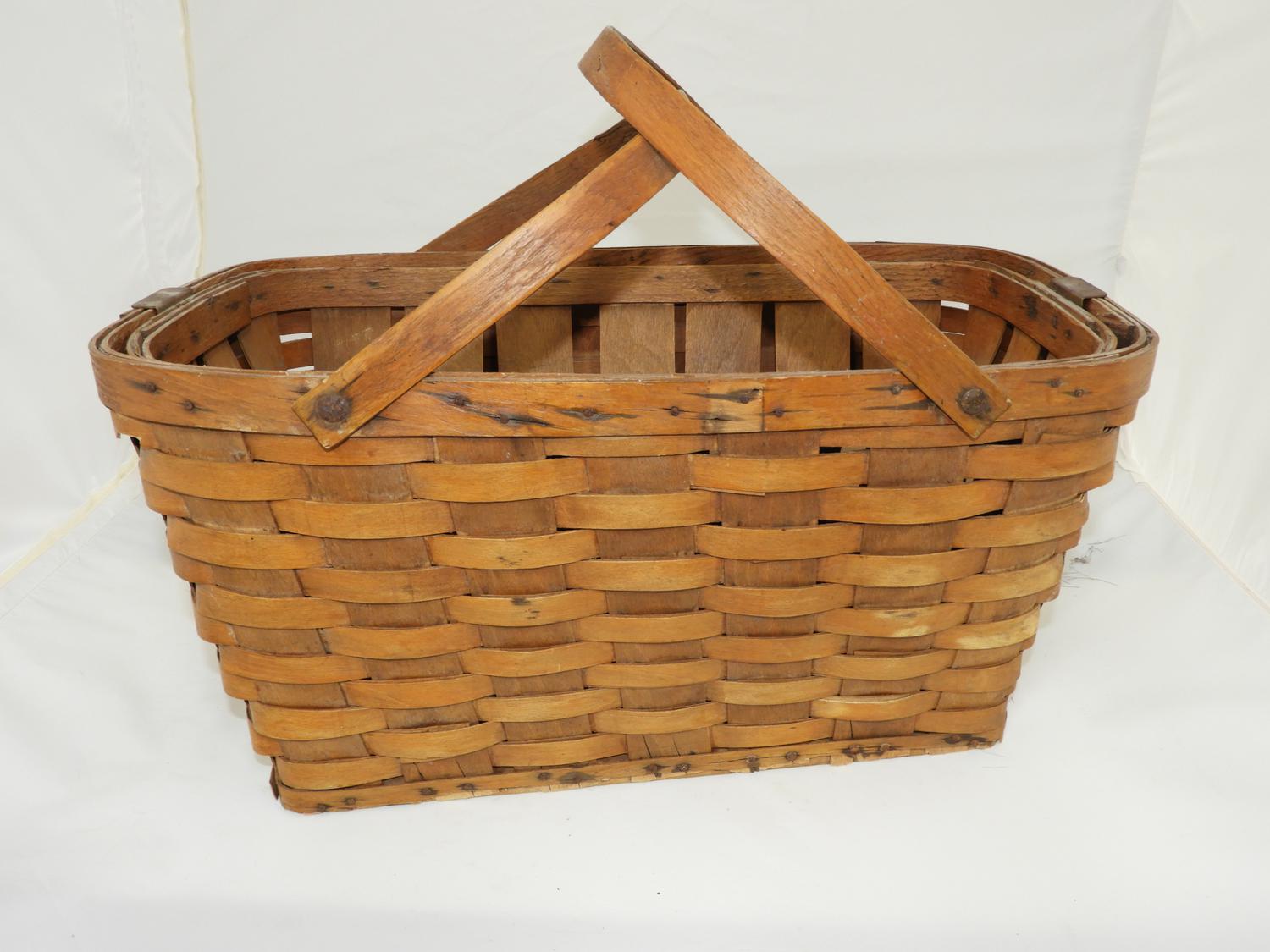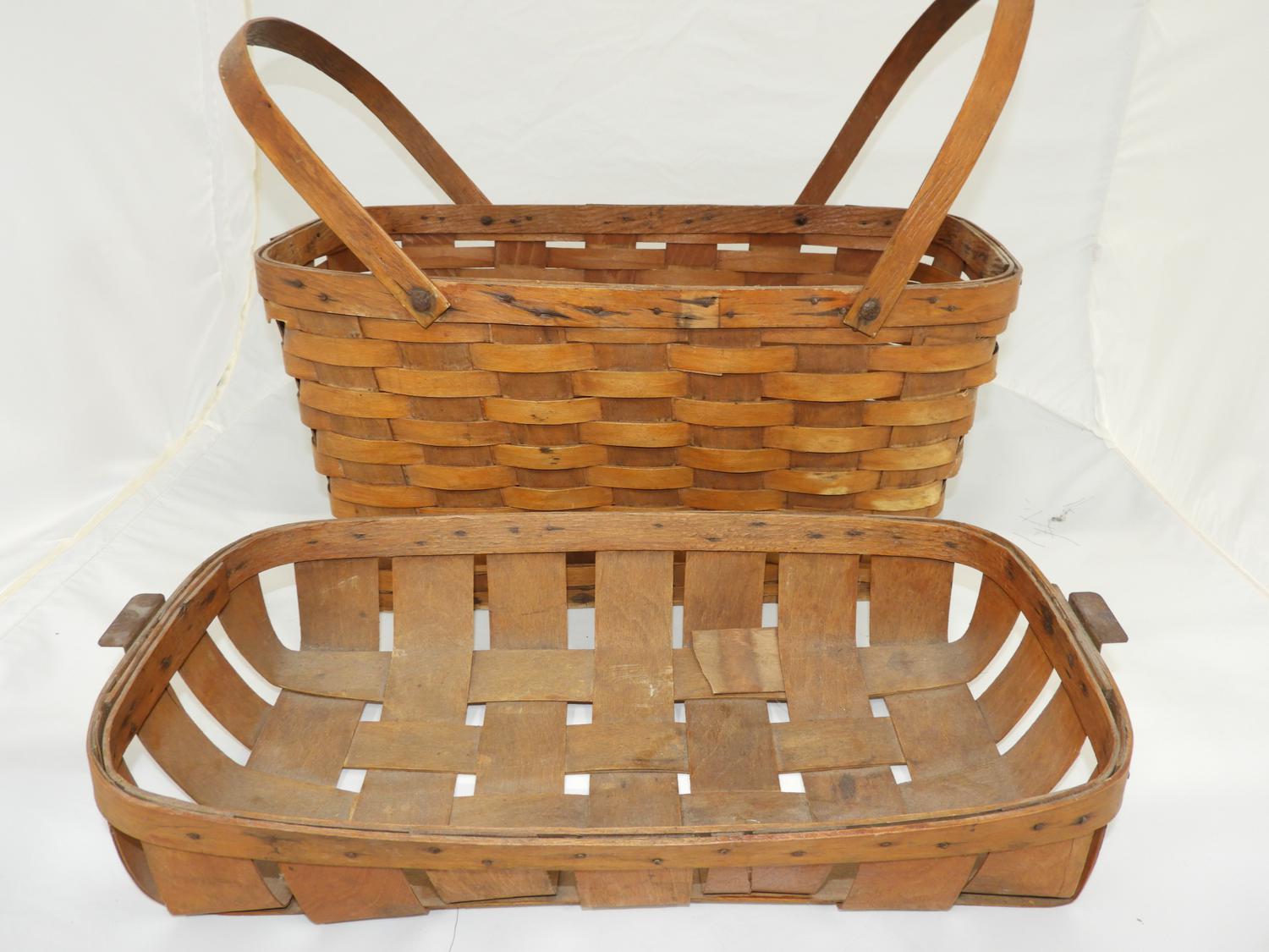 two handled woven basket with inset tray