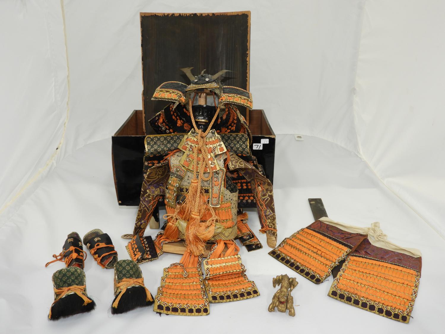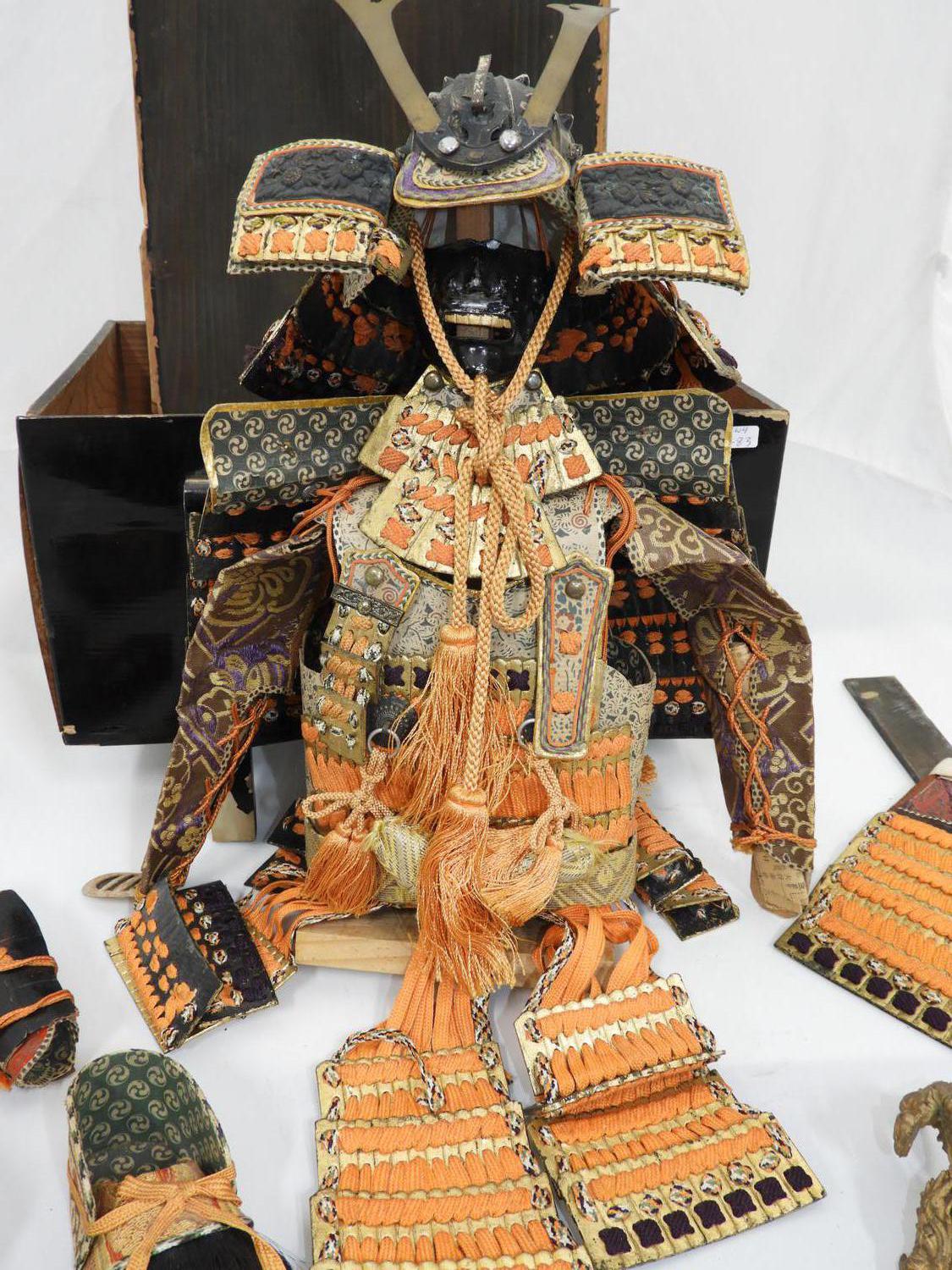 miniature samurai suit of armour with stand and lacquered box