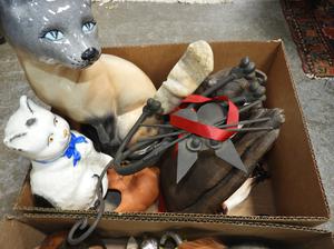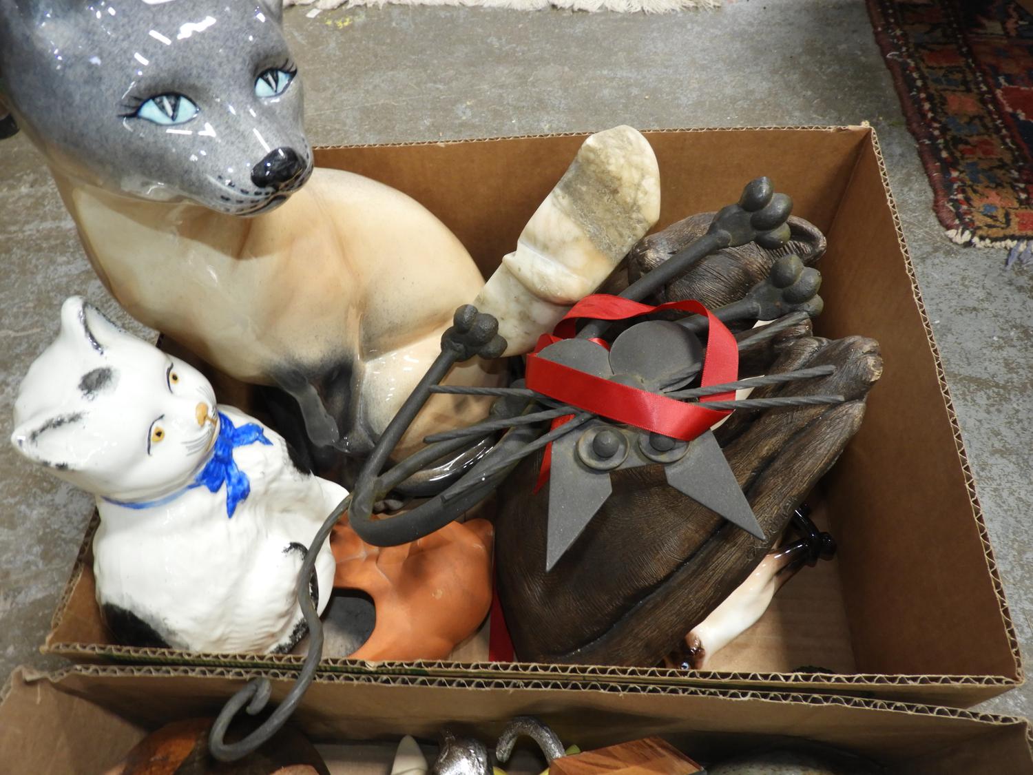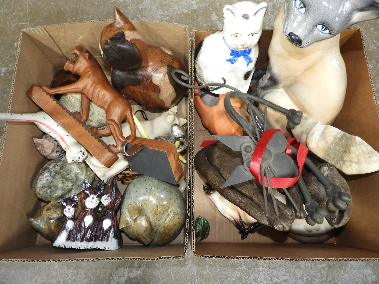 2 boxes of cat decorative items