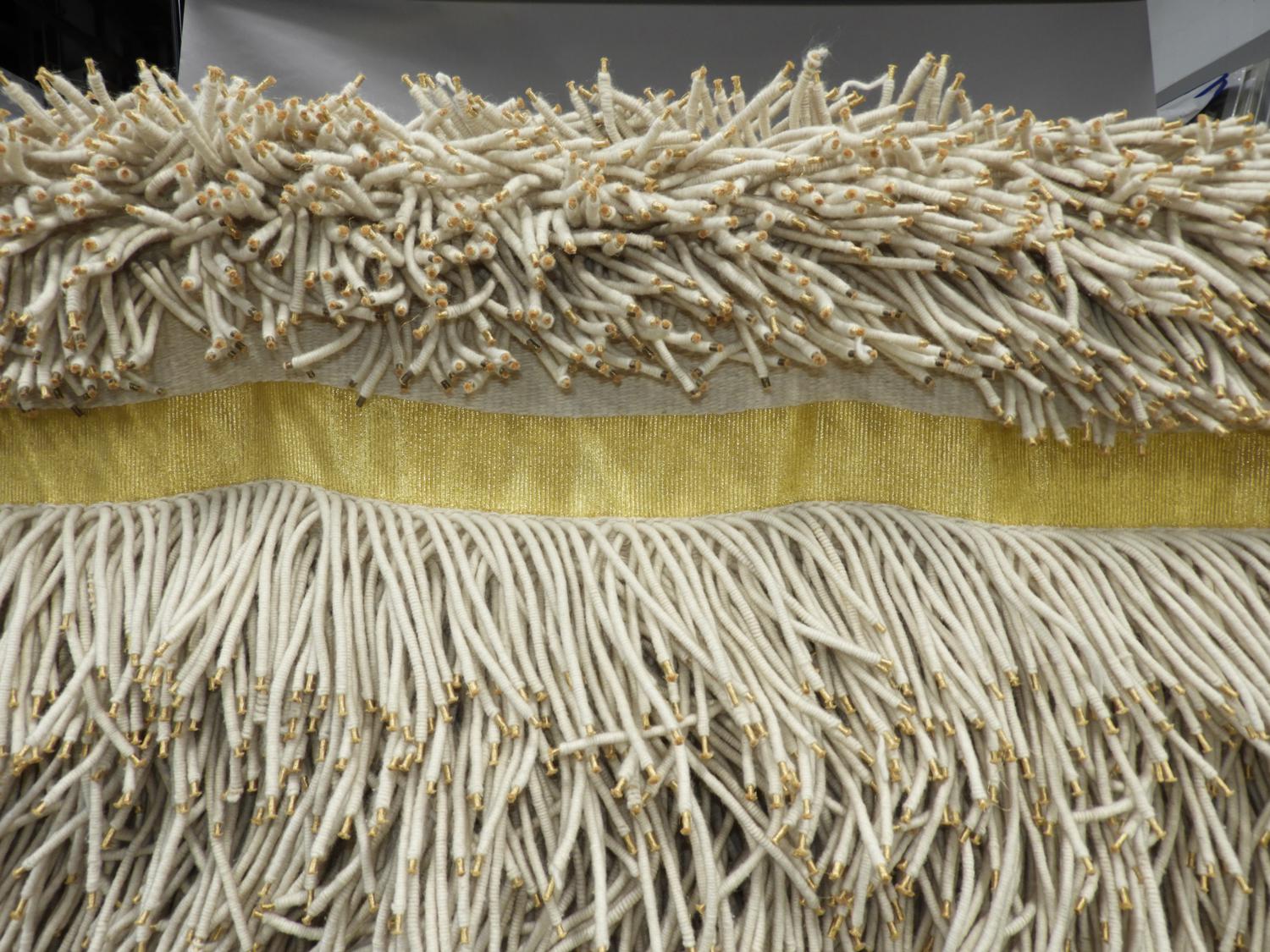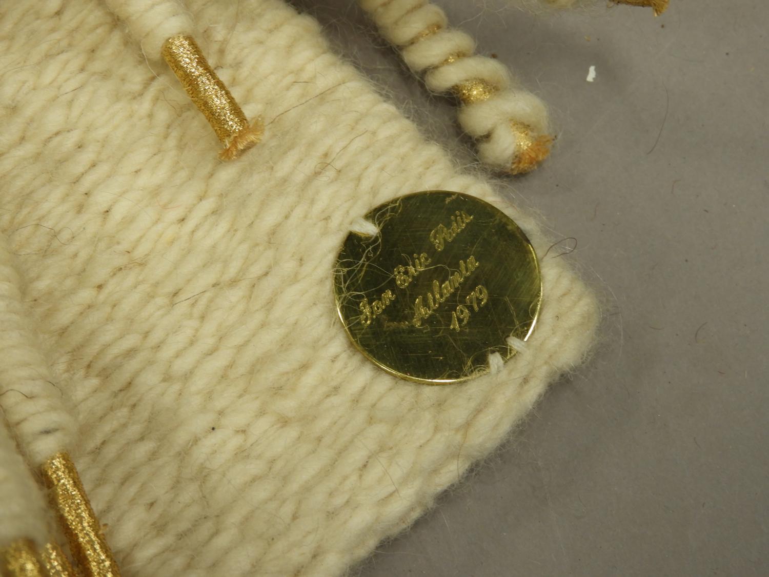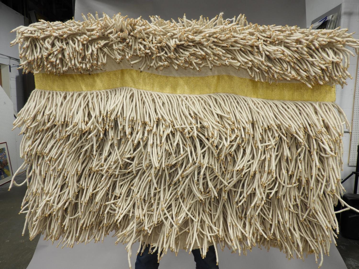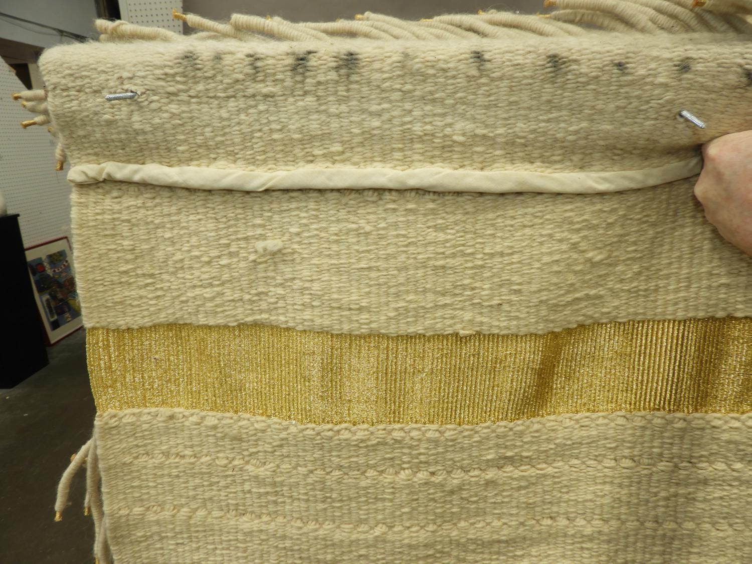 jon eric riis, d.1979, gold metallic thread wall hanging, 47" x 70"