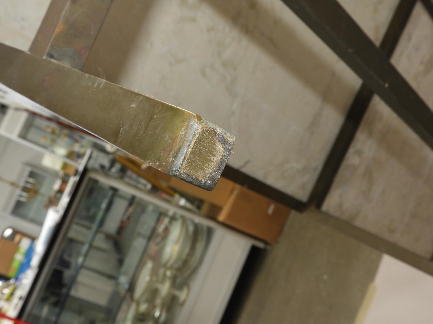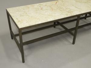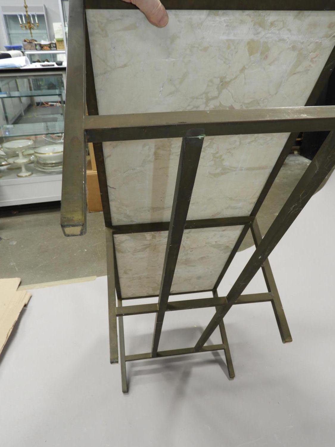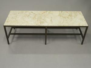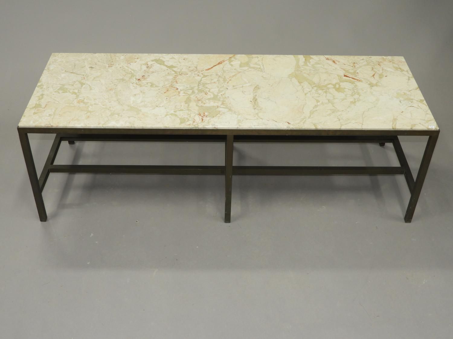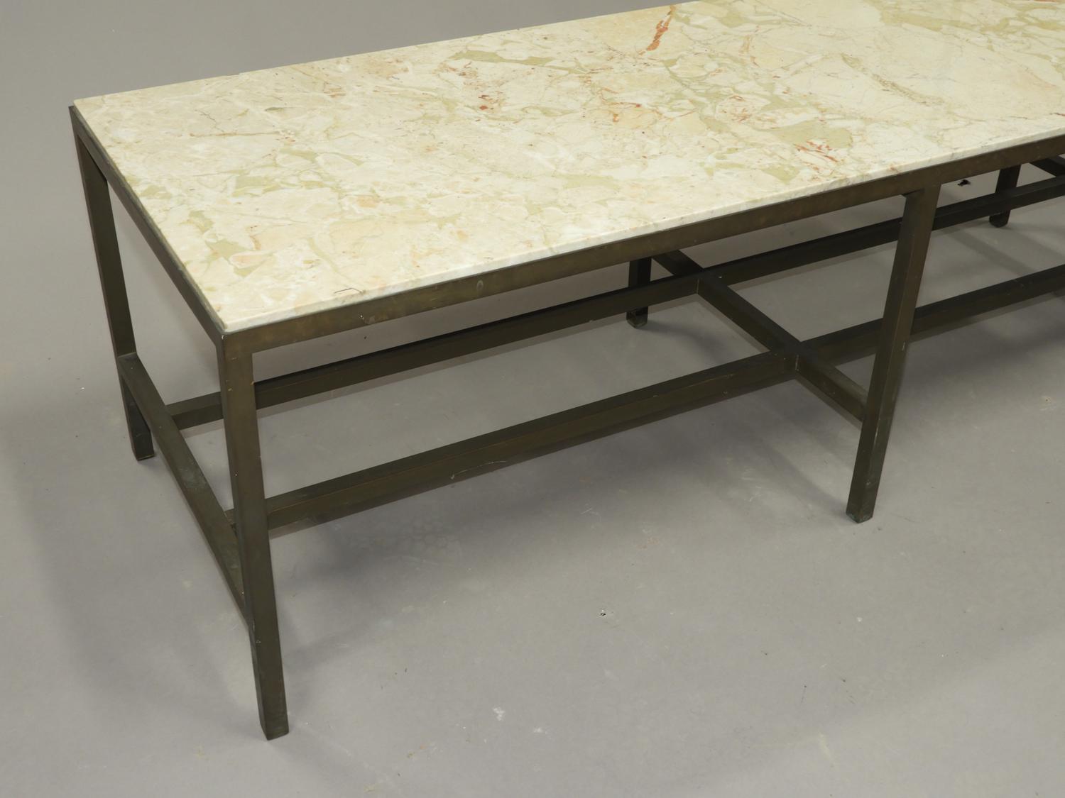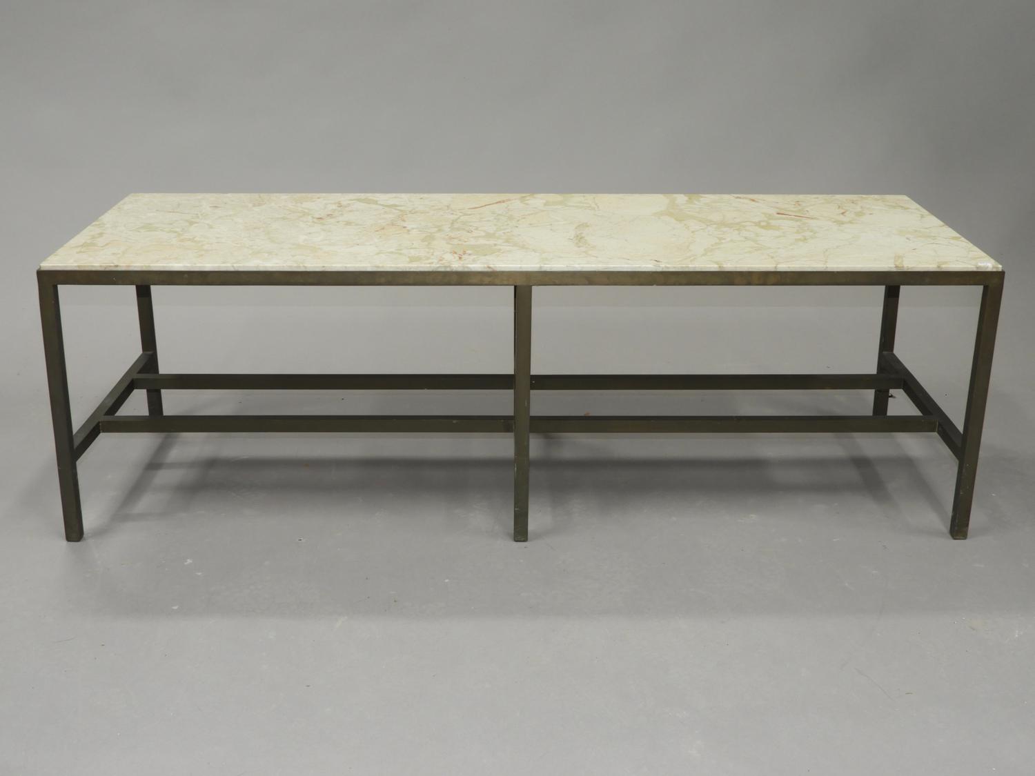 mid 20th century marble top brass bass coffee table, 15 1/4" x 48" x 17 1/2"
