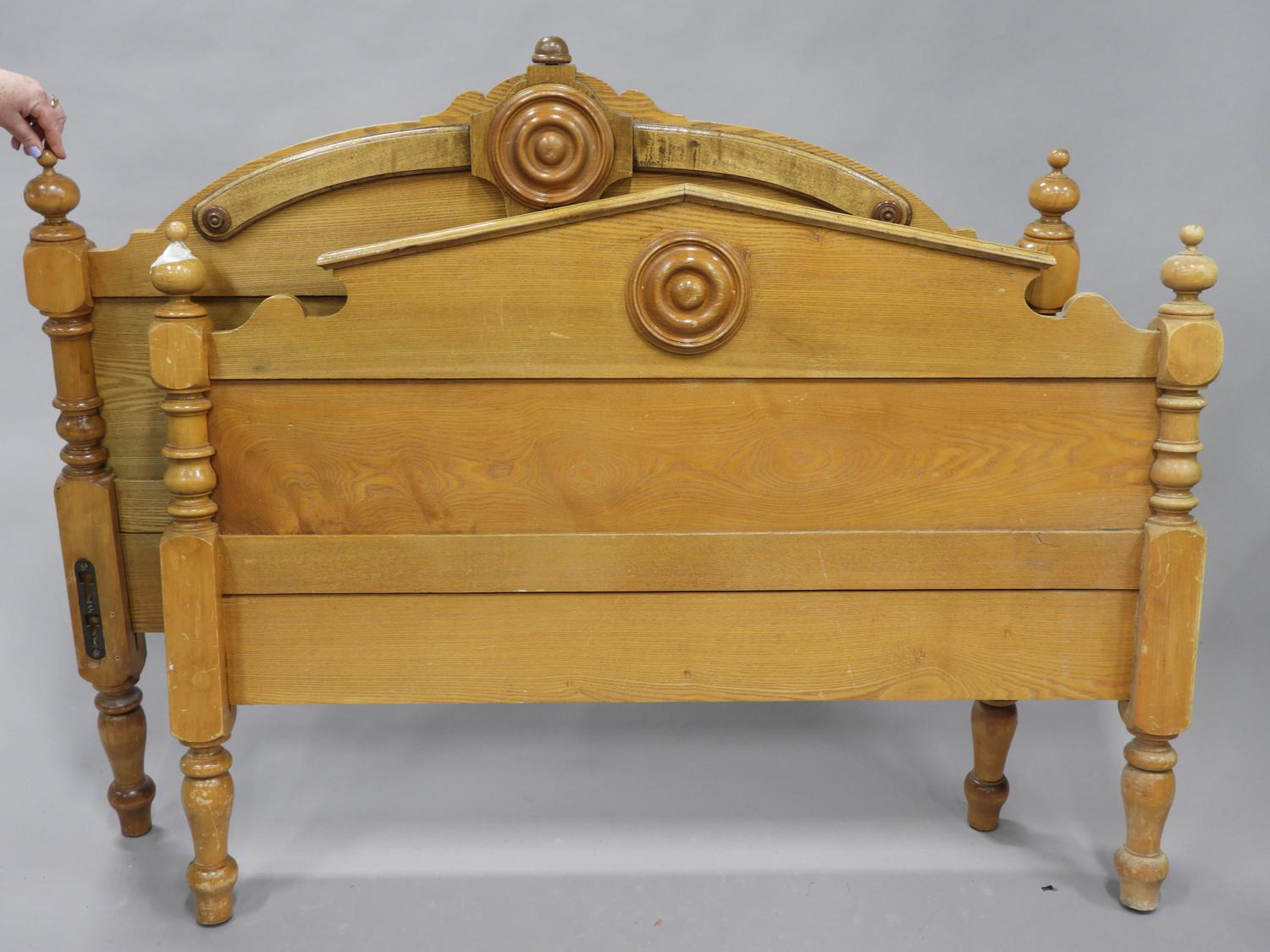 canadiana mixed wood bed frame, late 19th century, complete with rails and slats