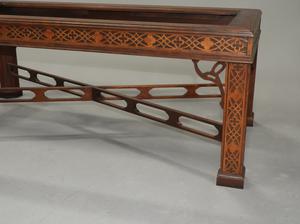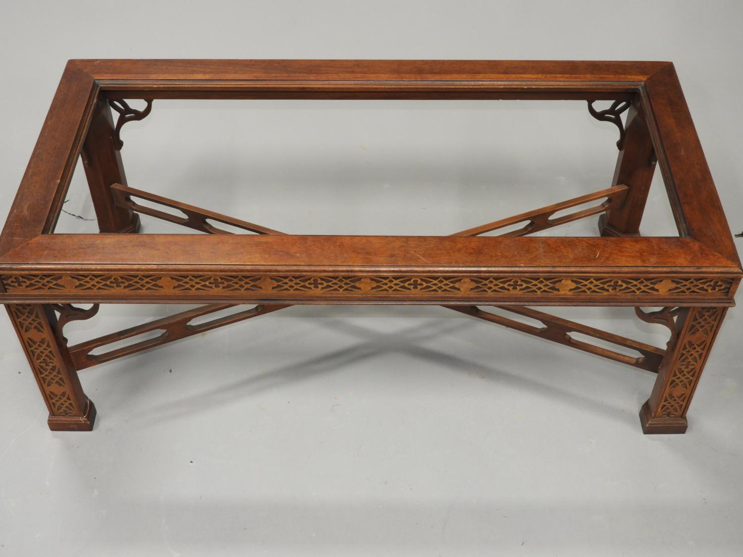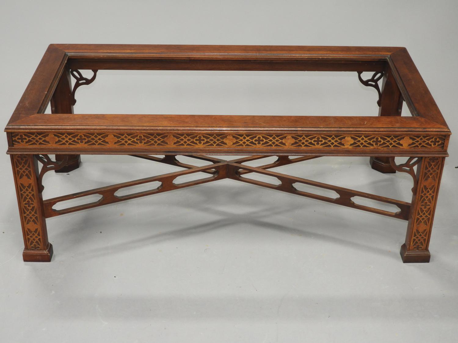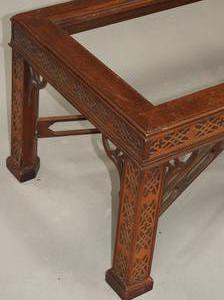 chippendale style mahogany finish coffee table base, requires marble or glass, 20th century, 15 1/2" x 39" x 18 1/2"