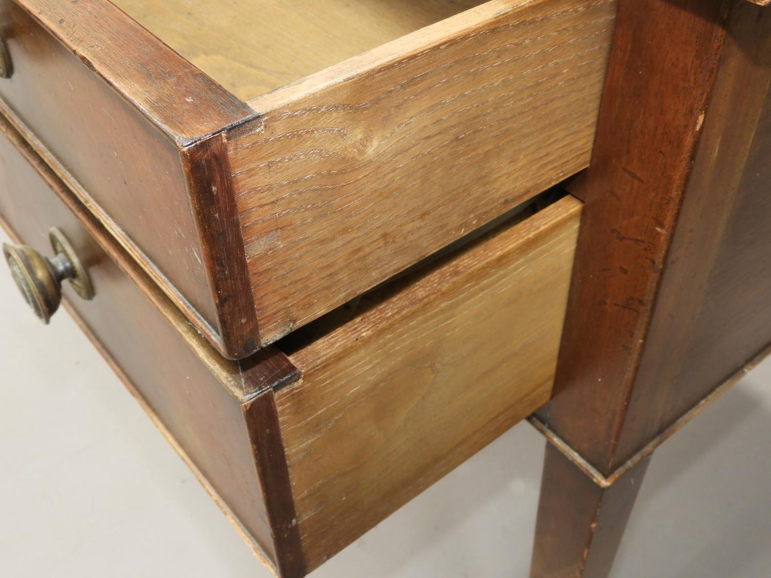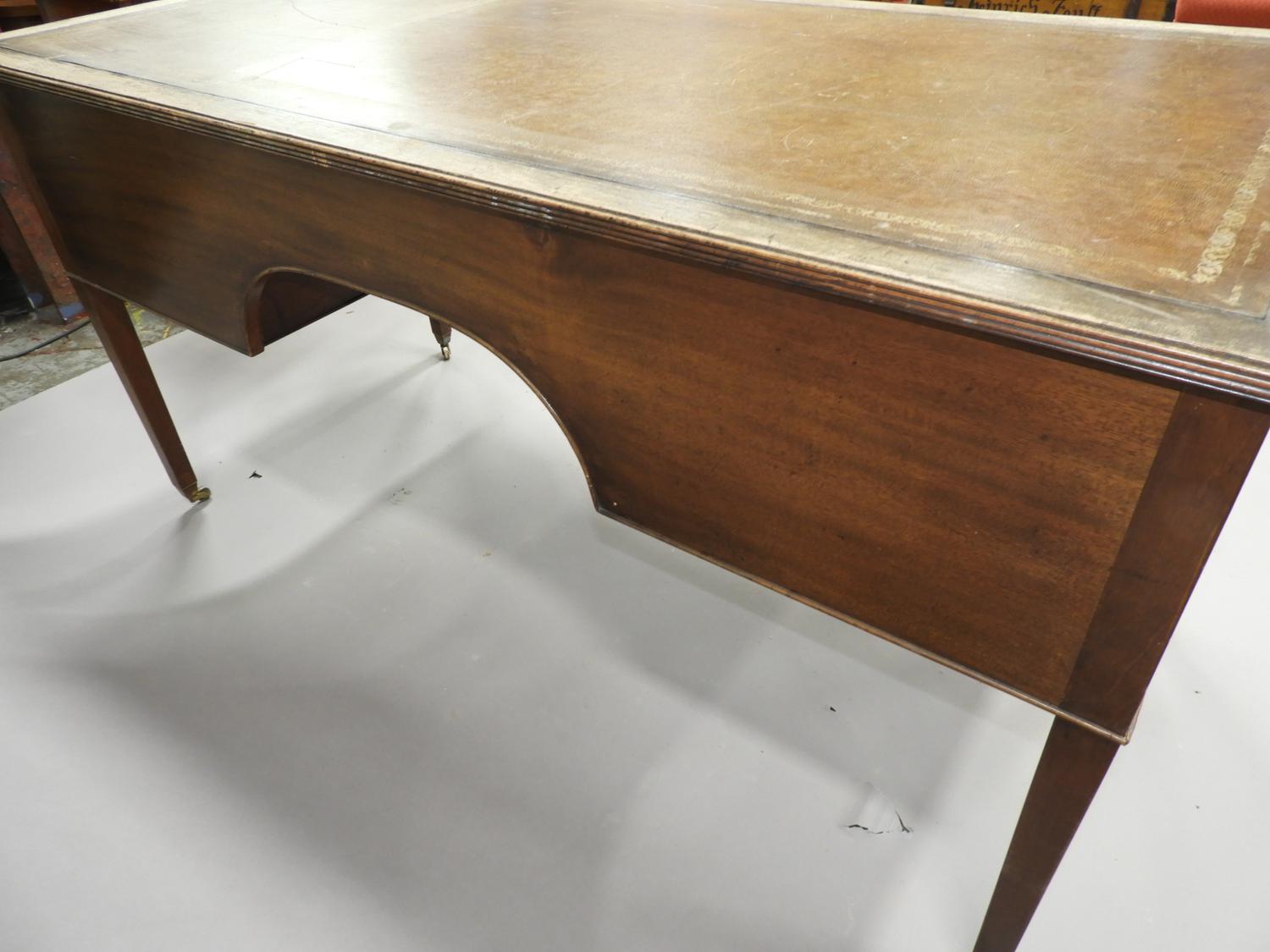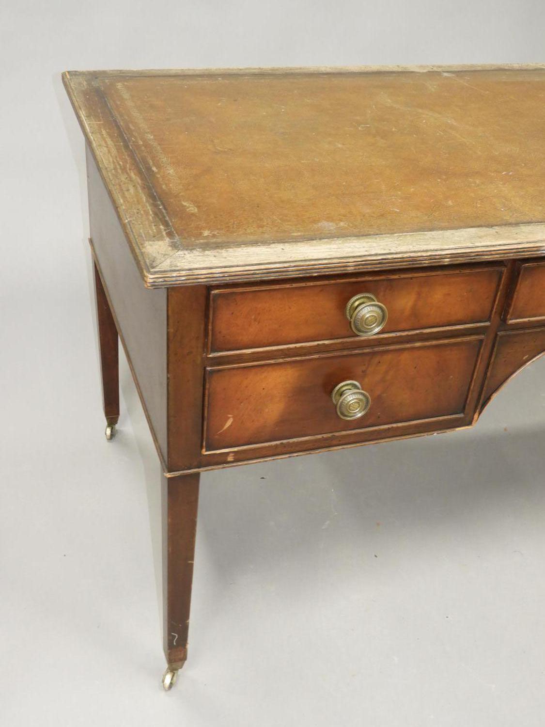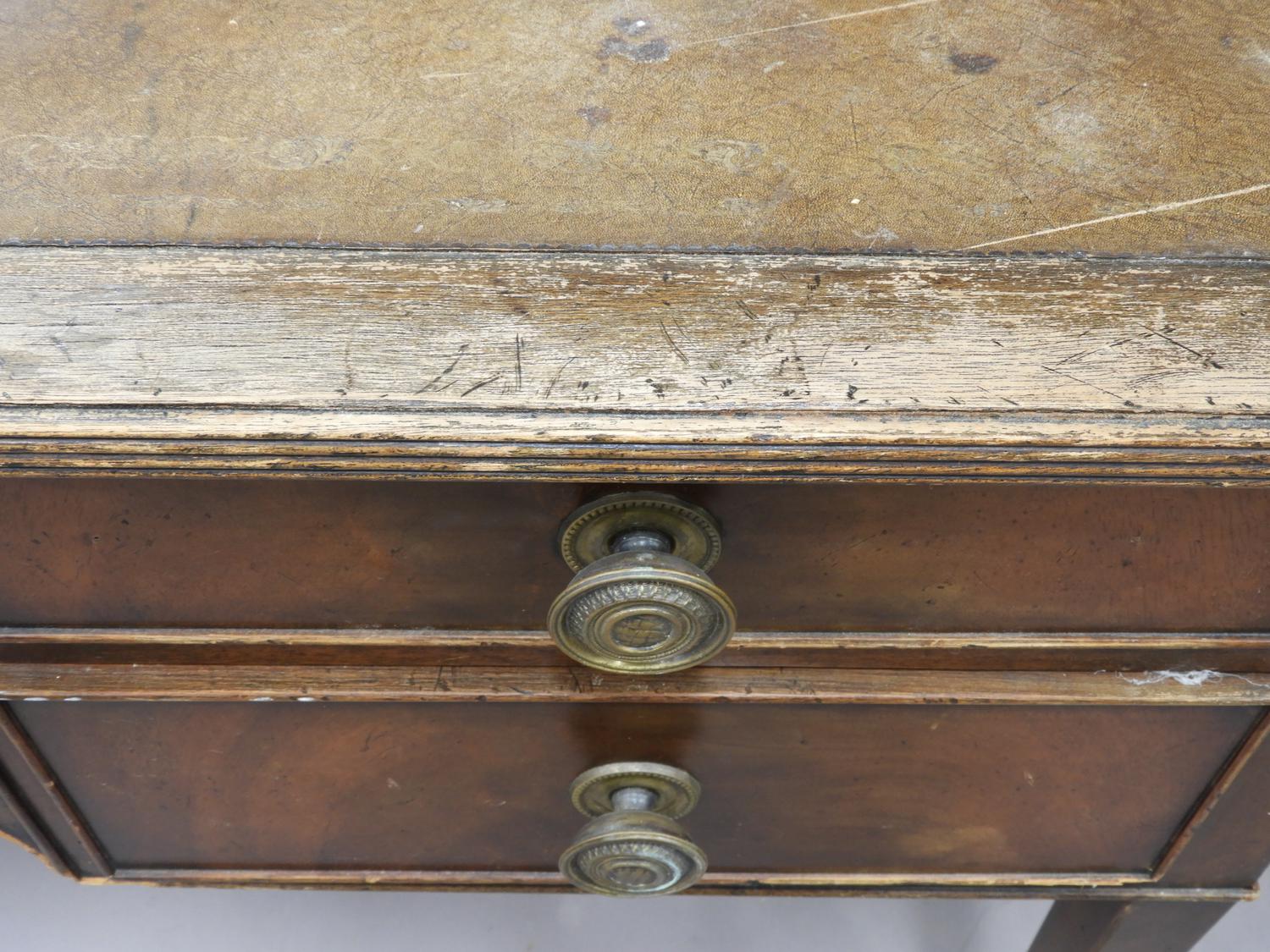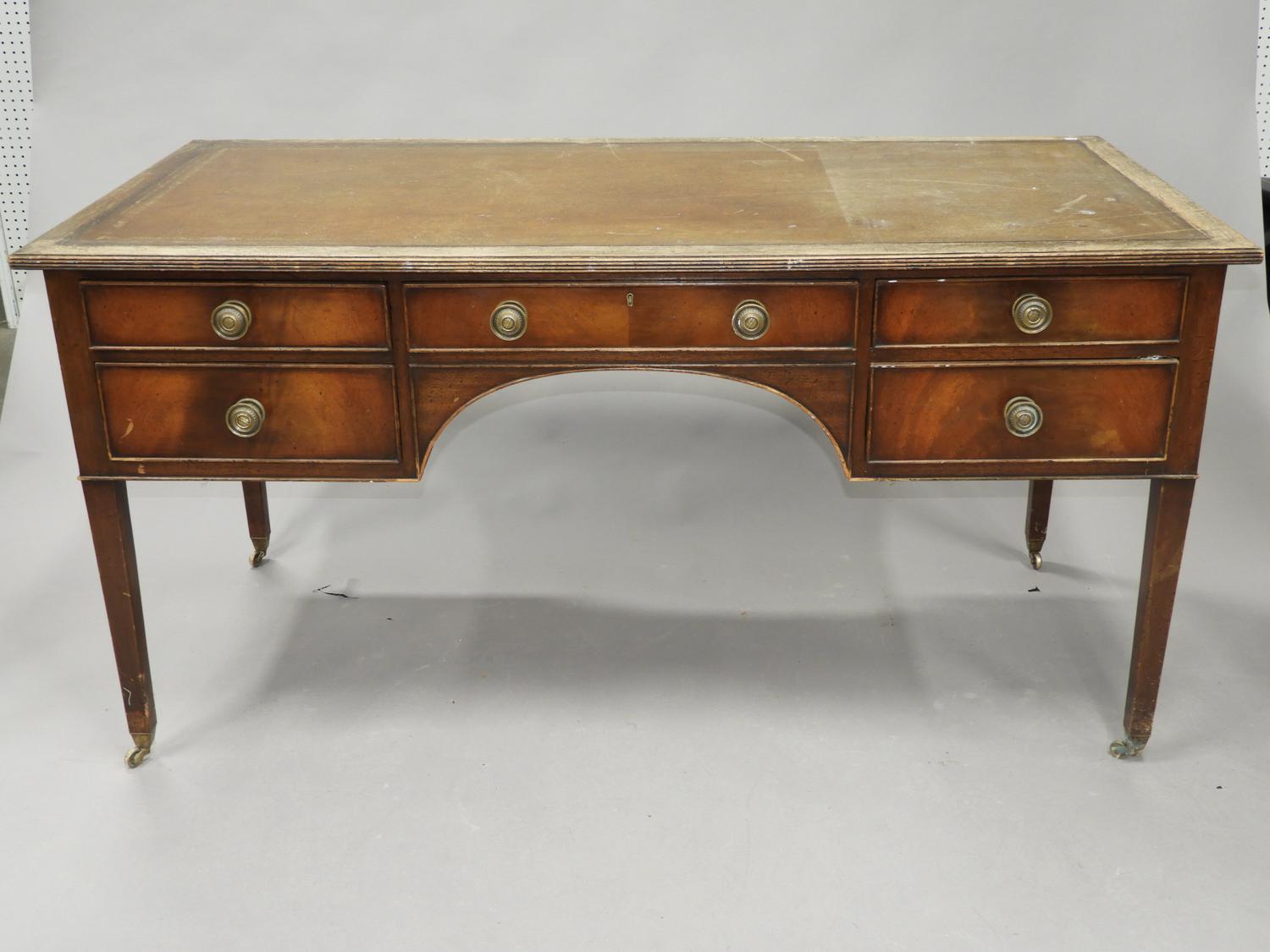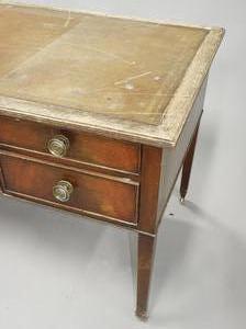 mahogany writing table with tooled leather inset top, c.1900, 32" x 63"" x 31"