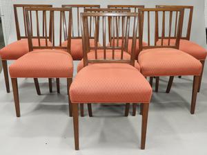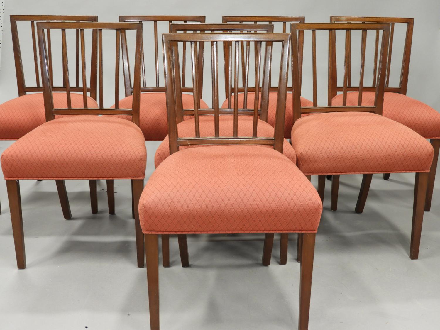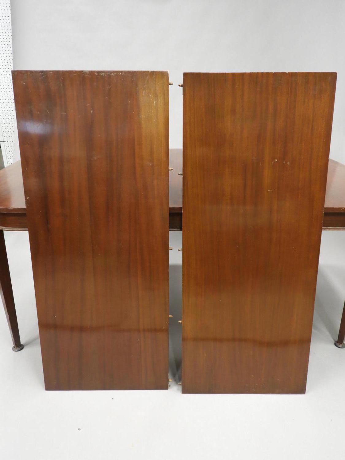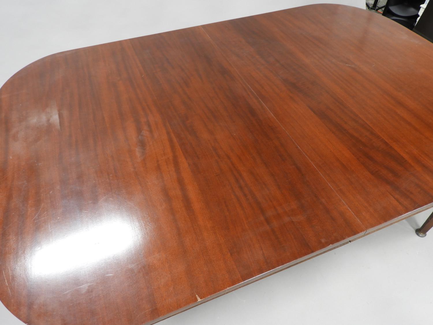 mahogany extending dining table with 2 leaves and a matching set of eight chairs