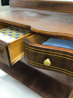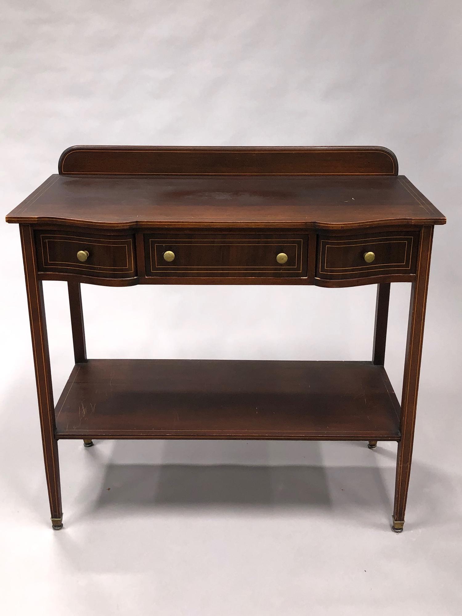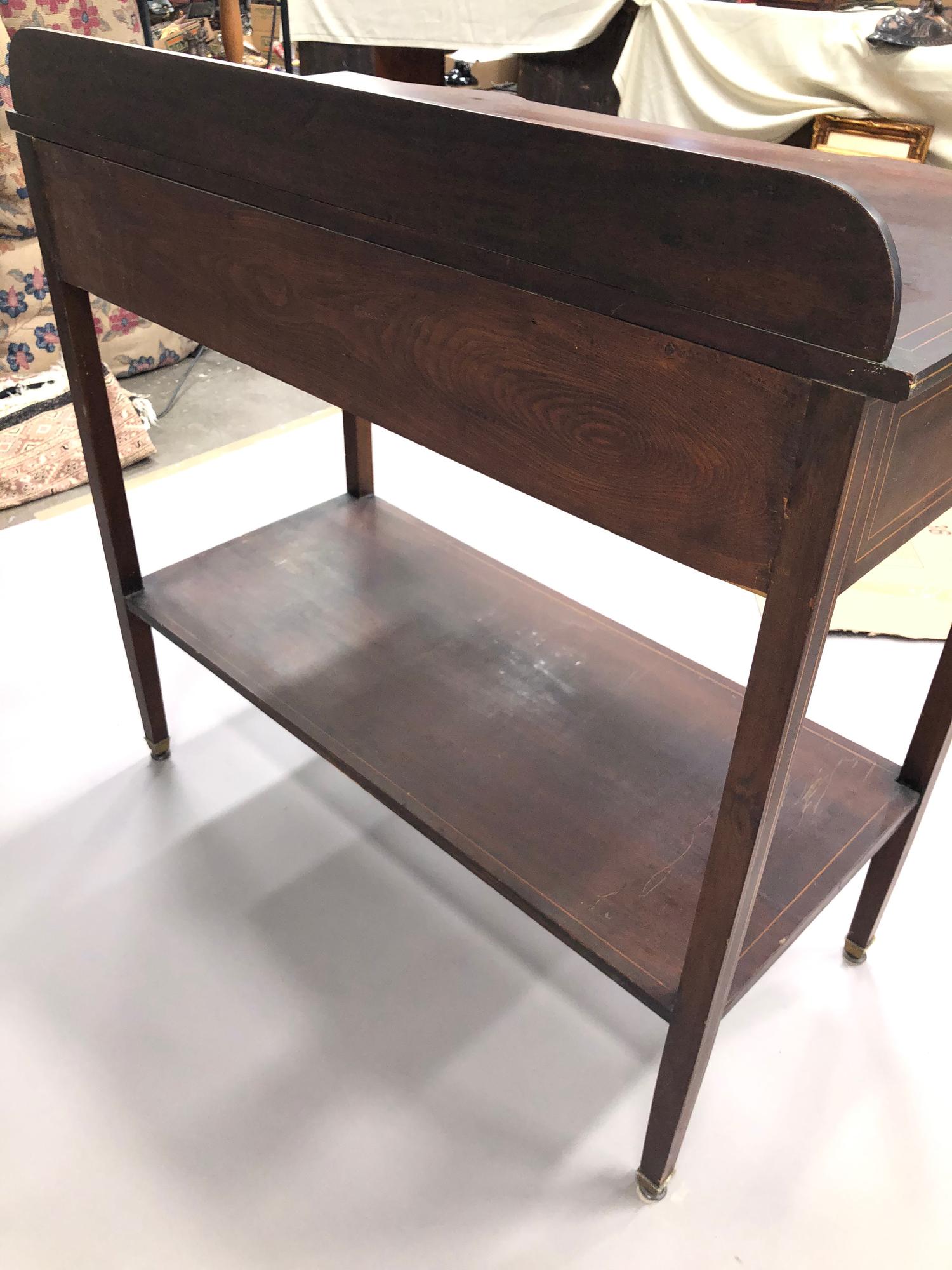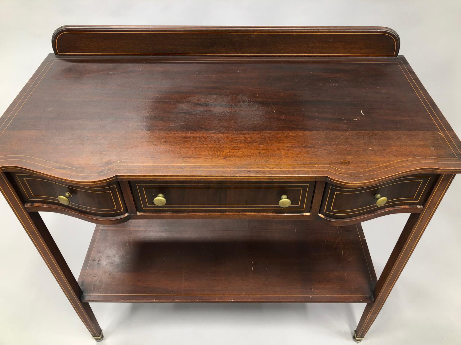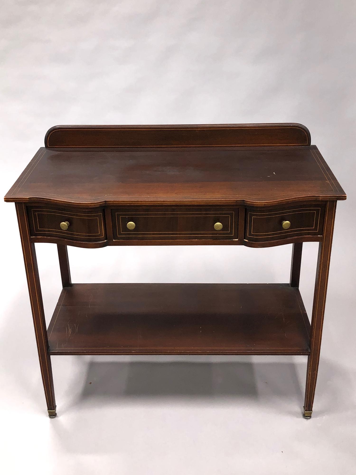 edwardian inlaid mahogany two tier serving table, 41" x 42" x 19 1/2"