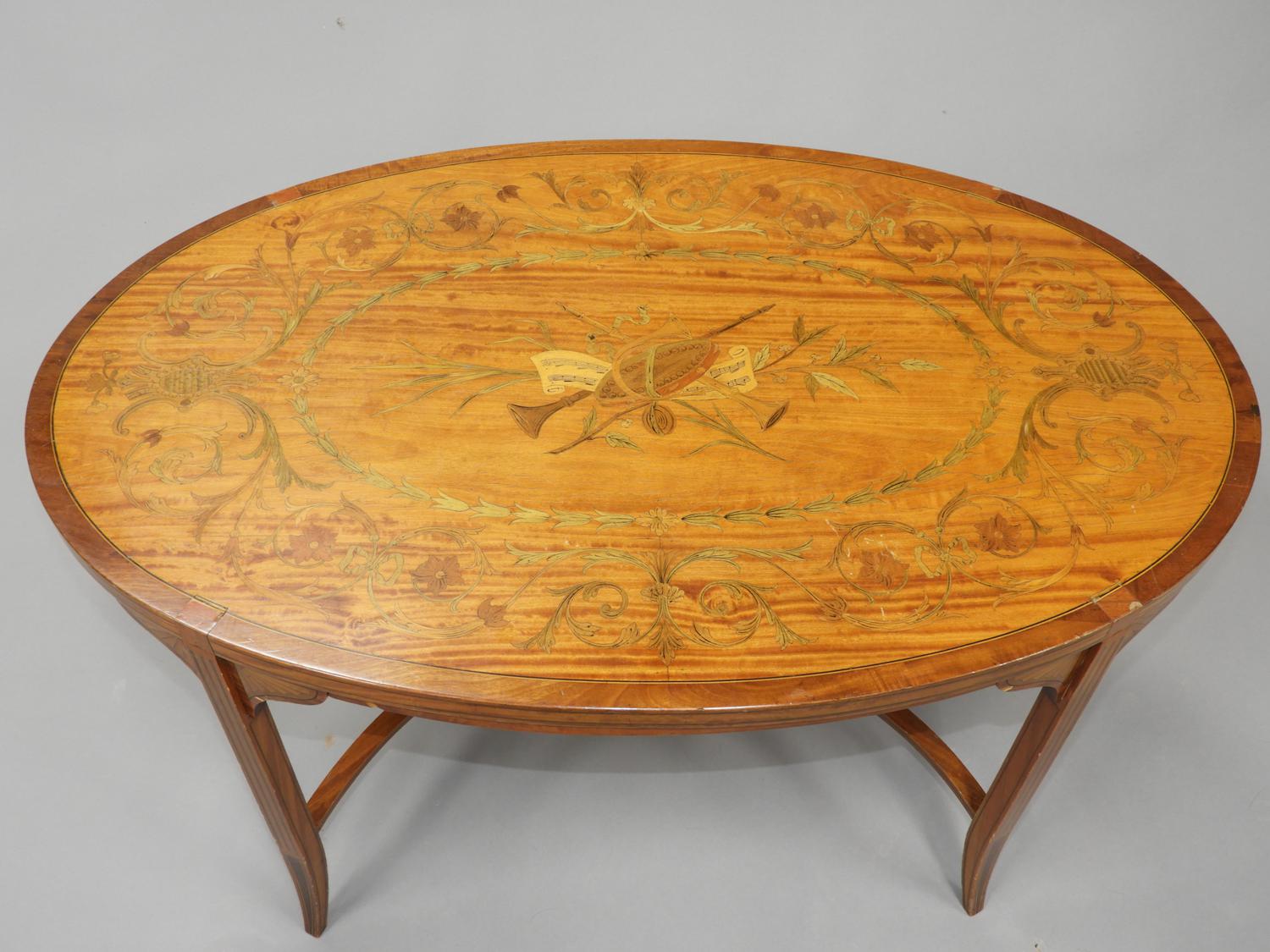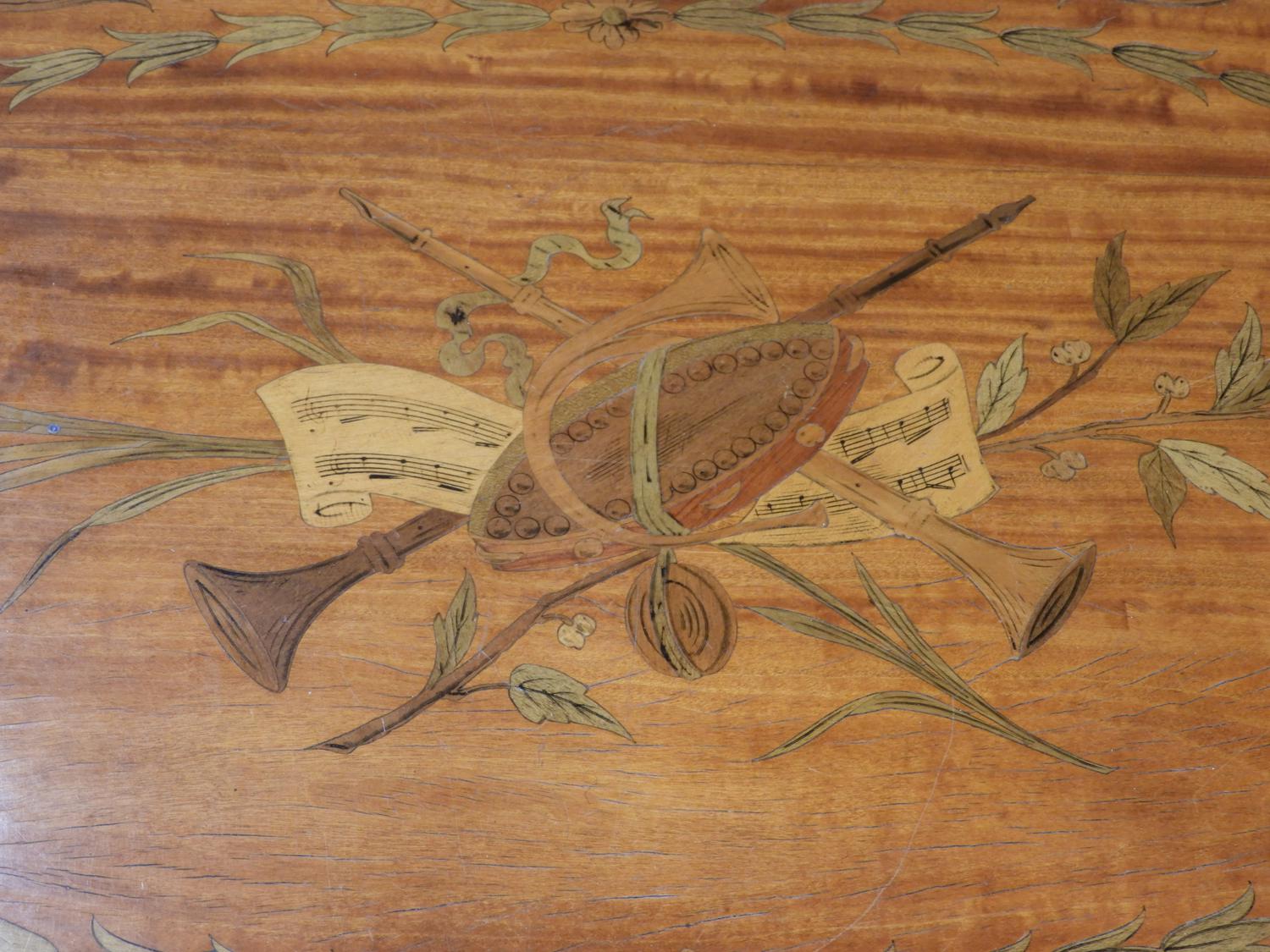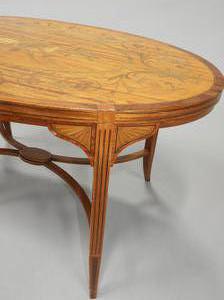 marquetry inlaid mahogany low table, 18 1/2" x 34 1/2" x 21 1/2"