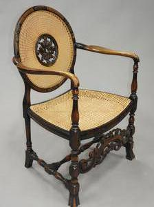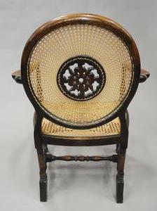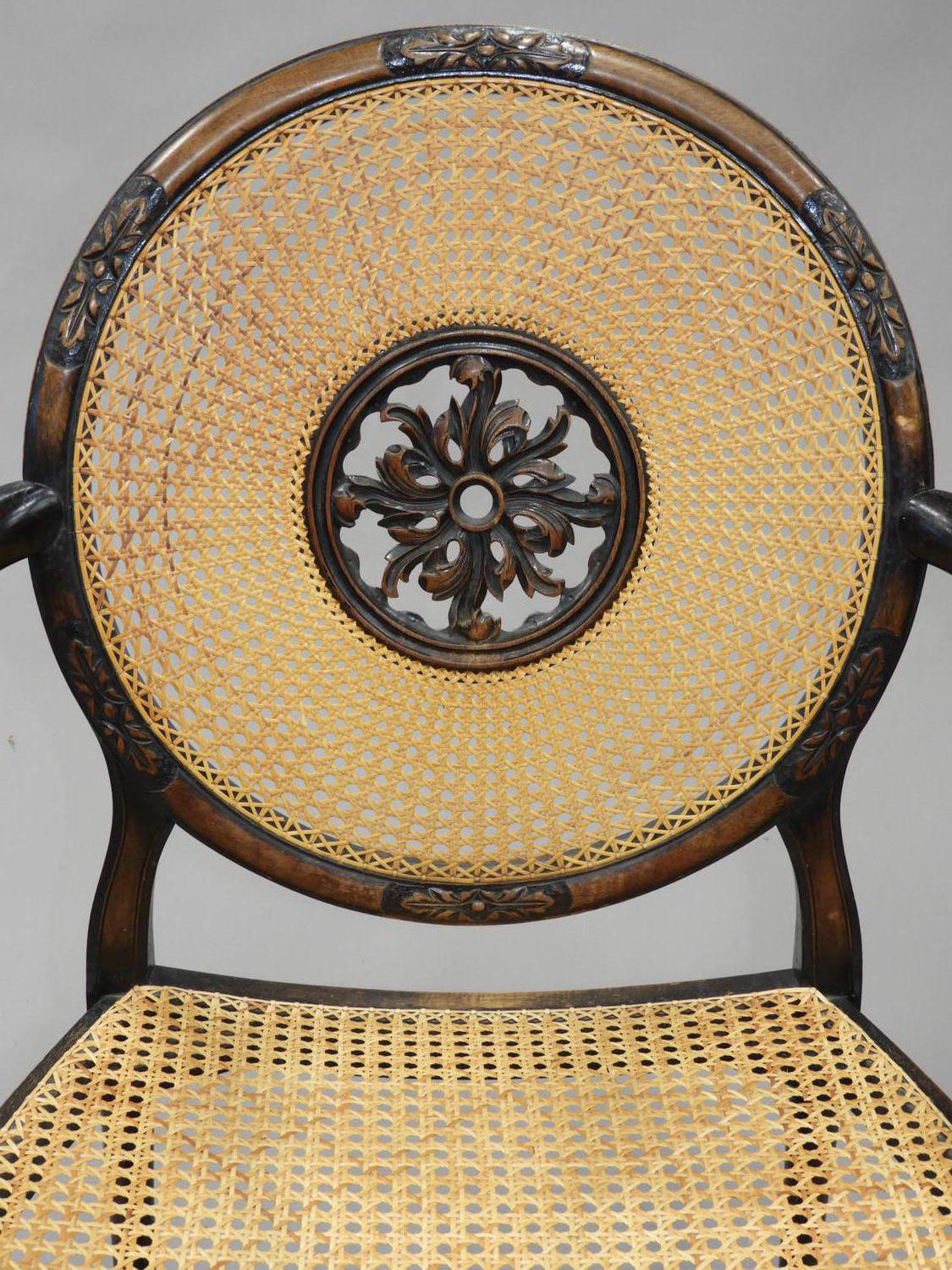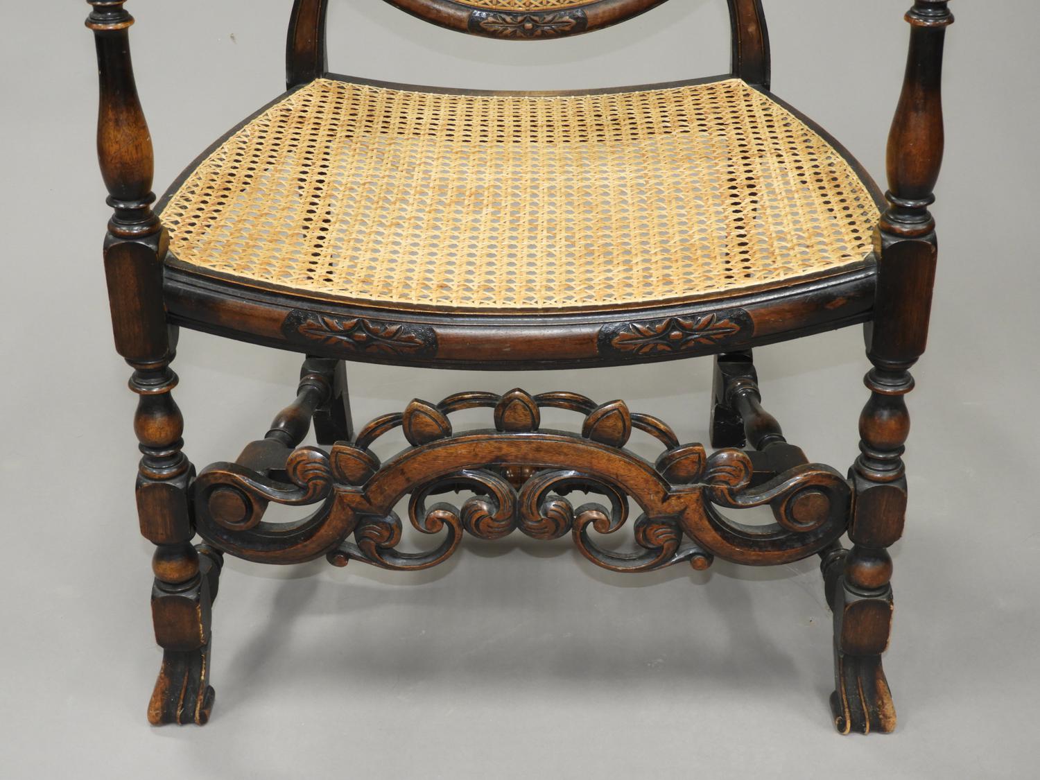 carved oak open armchair with caned seat and back, late 19th century
