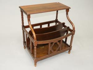 walnut magazine side table, 11" x 21" x 15"