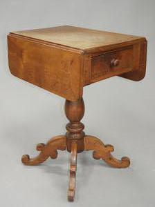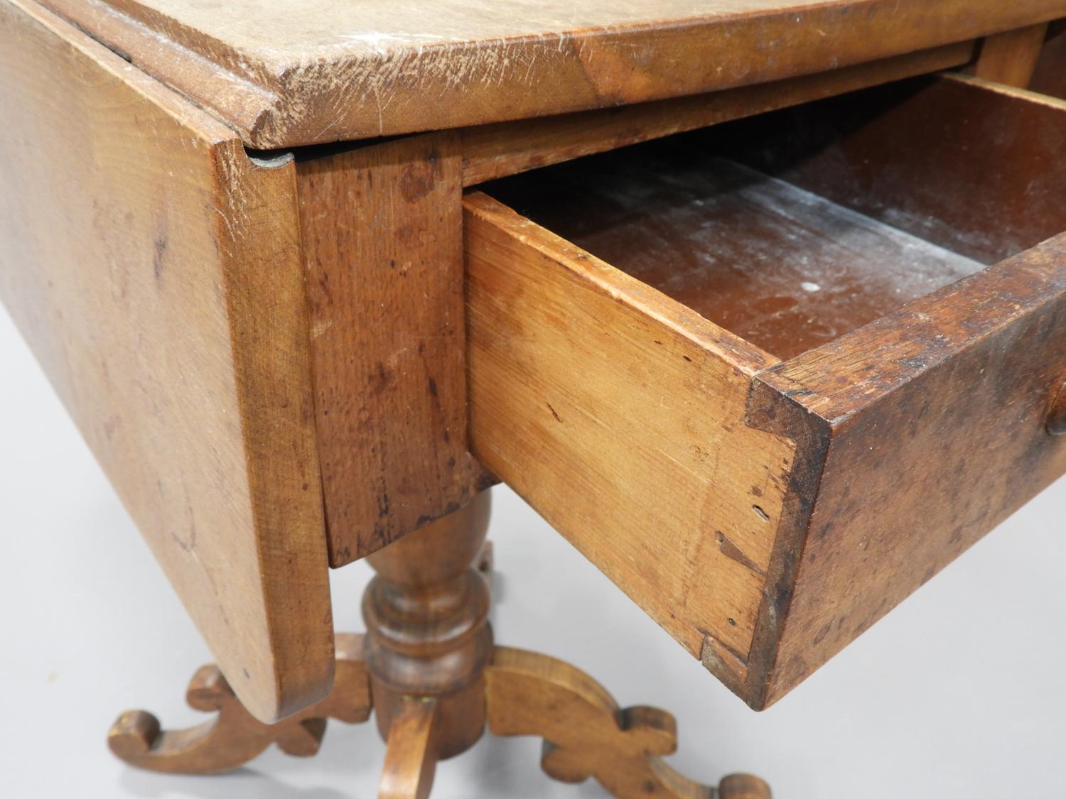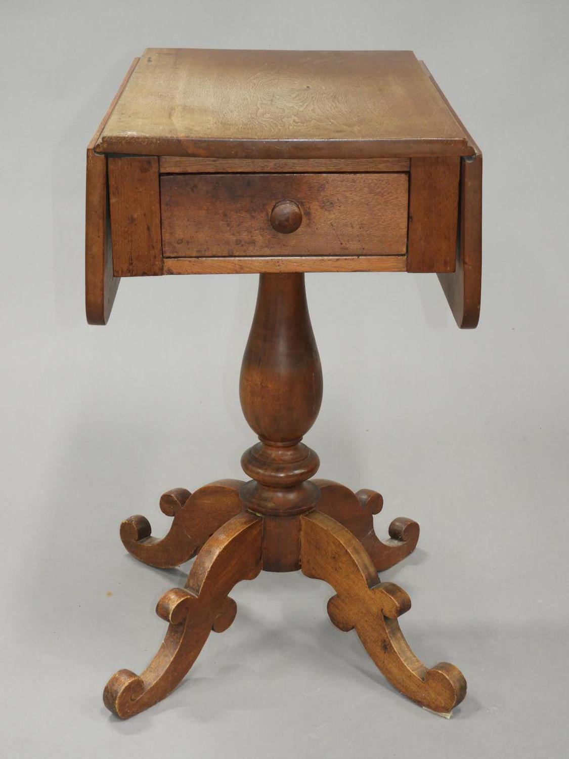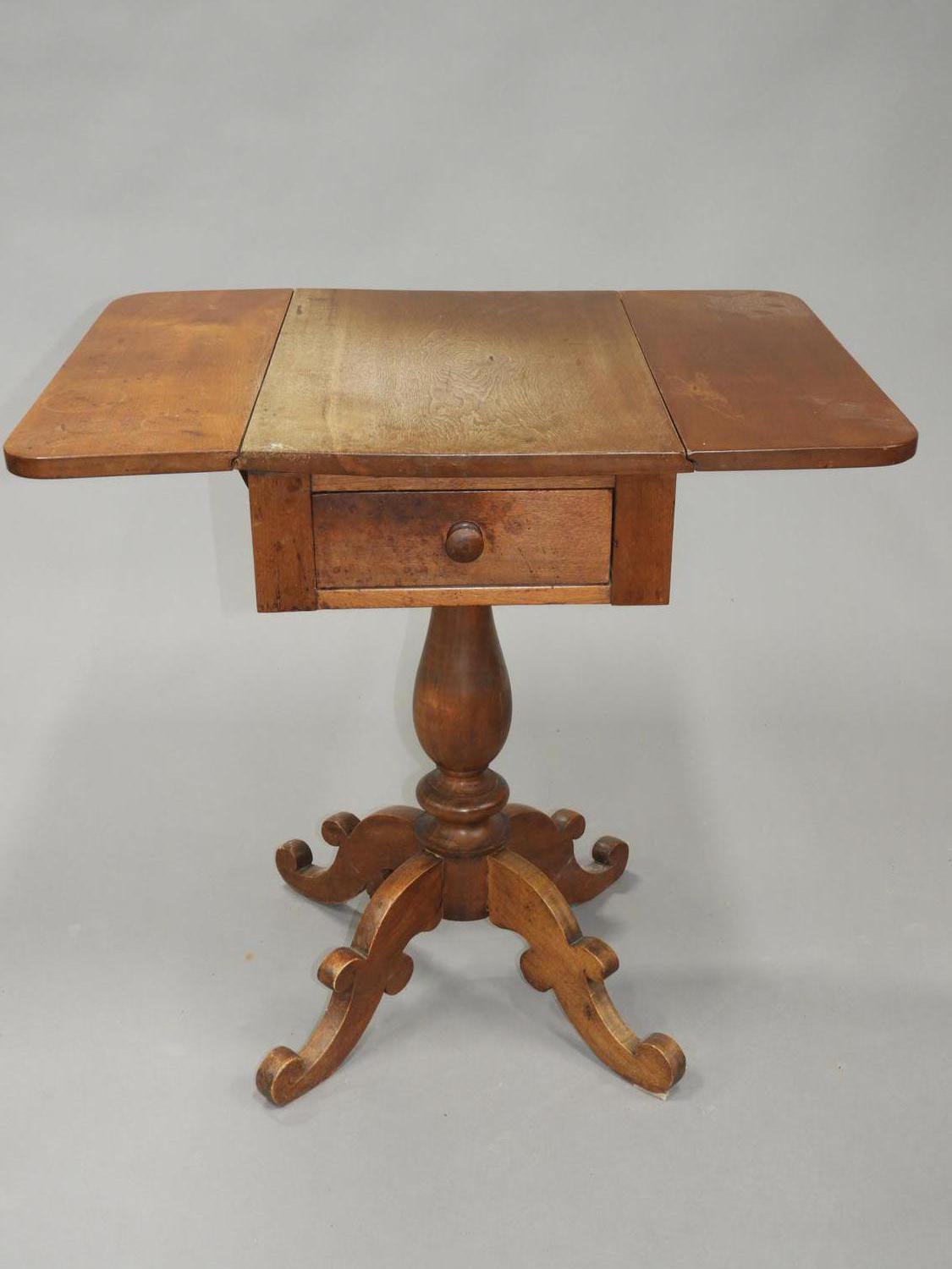 cherrywood drop leaf pedestal table with single drawer, 19th century, 25" x 30" x 22"