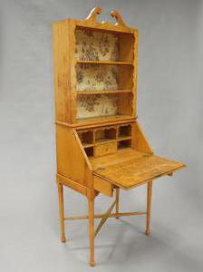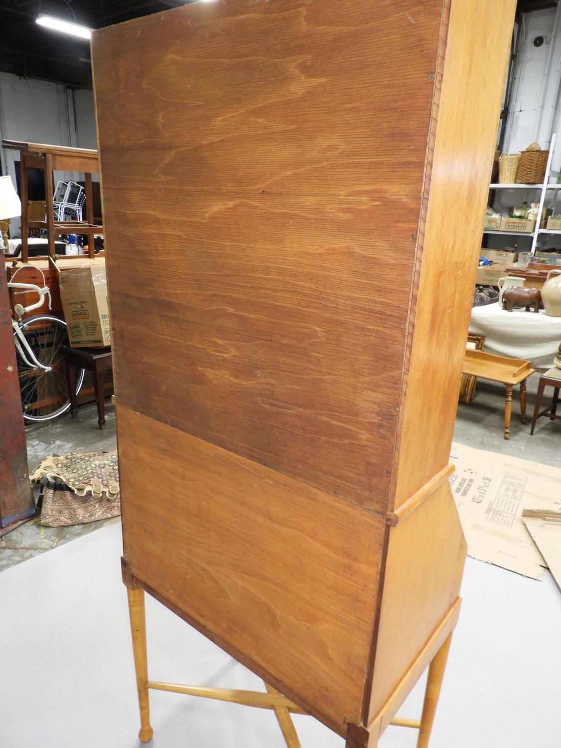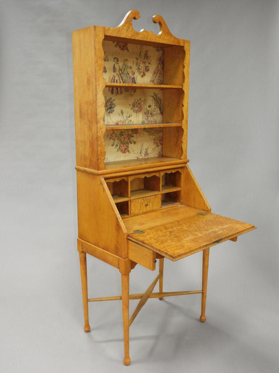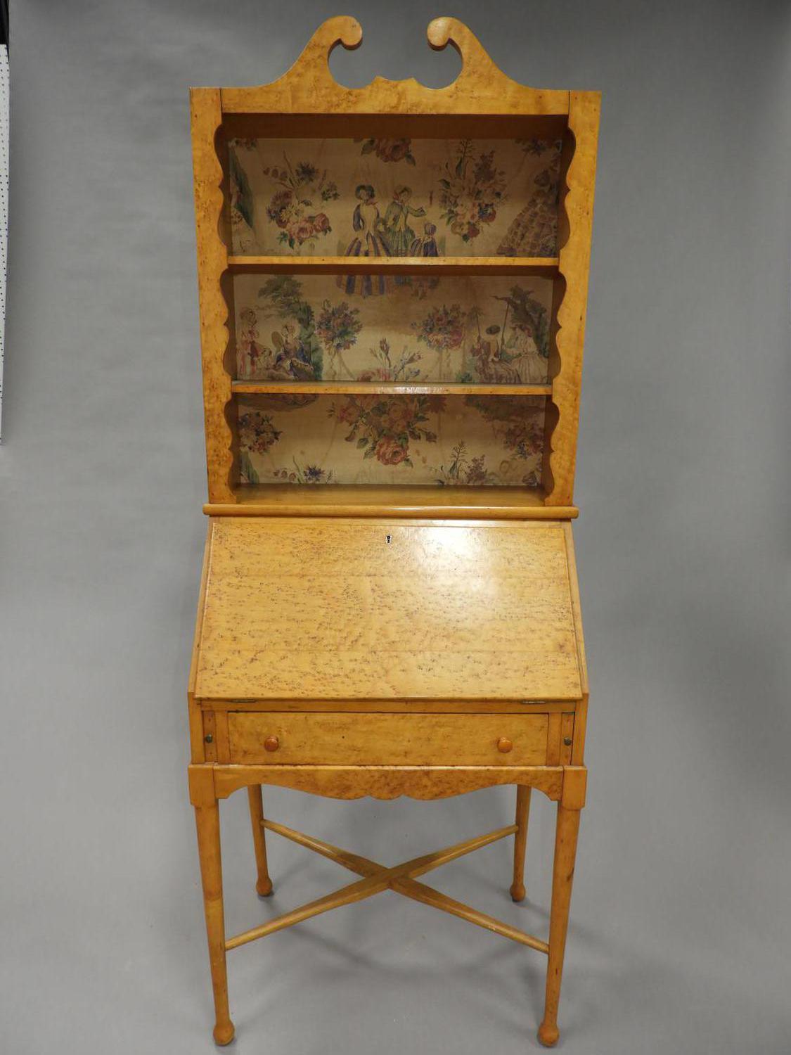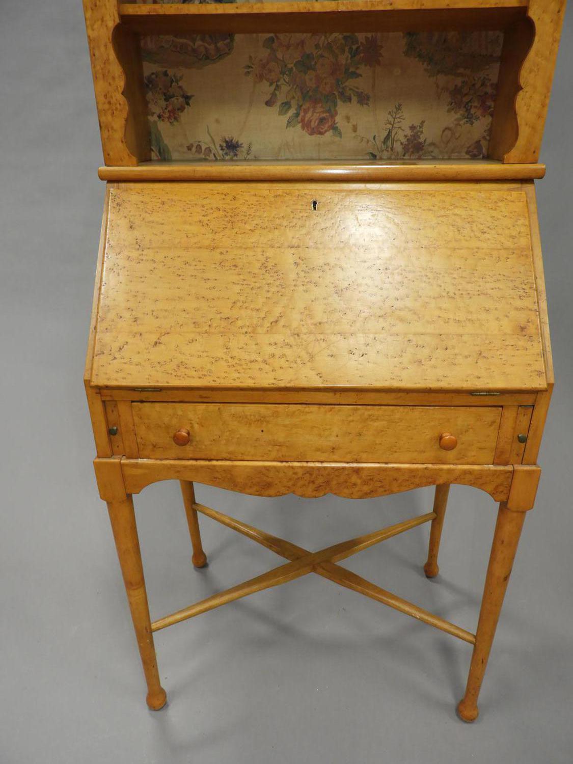 birds eye maple secretaire bookcase, 73" x 27 1/2" x 16 3/4"