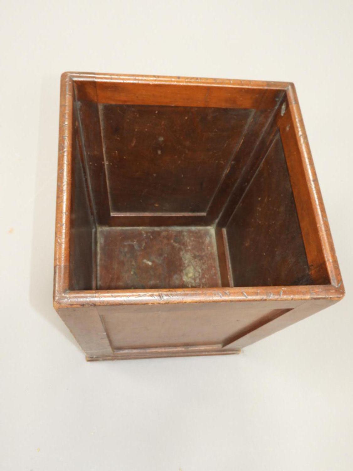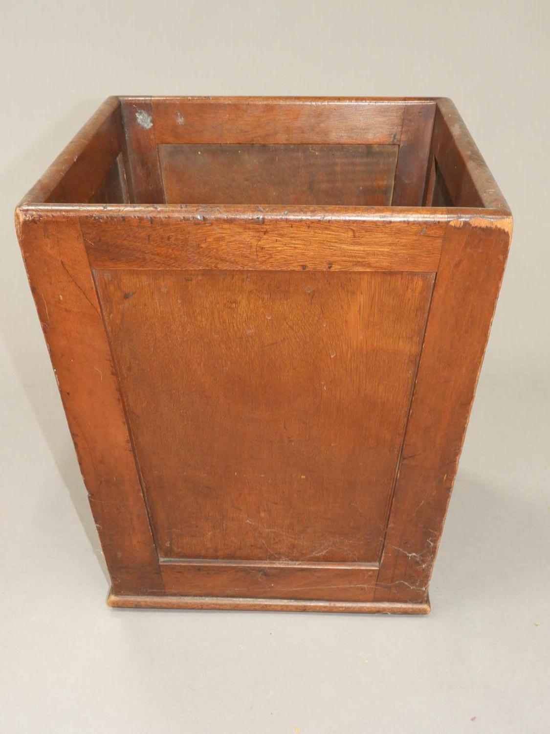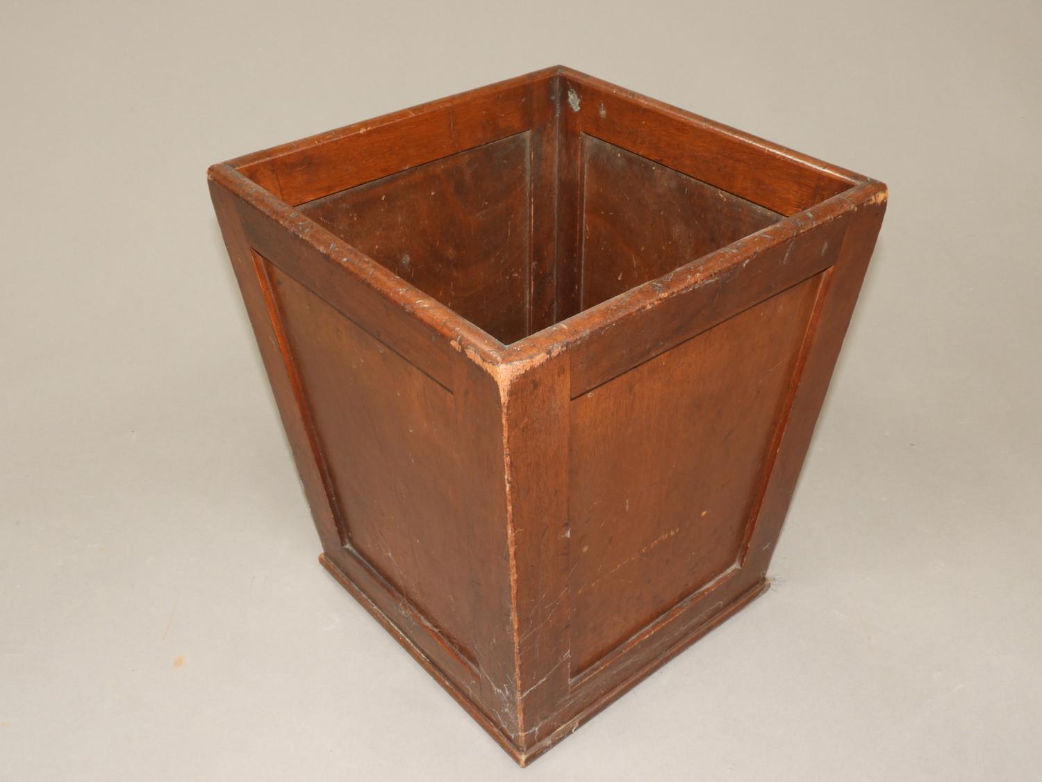 mahogany waste bin, early 20th century, 15" x 13" x 13"