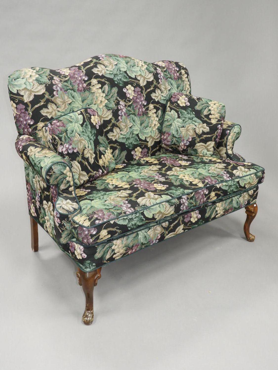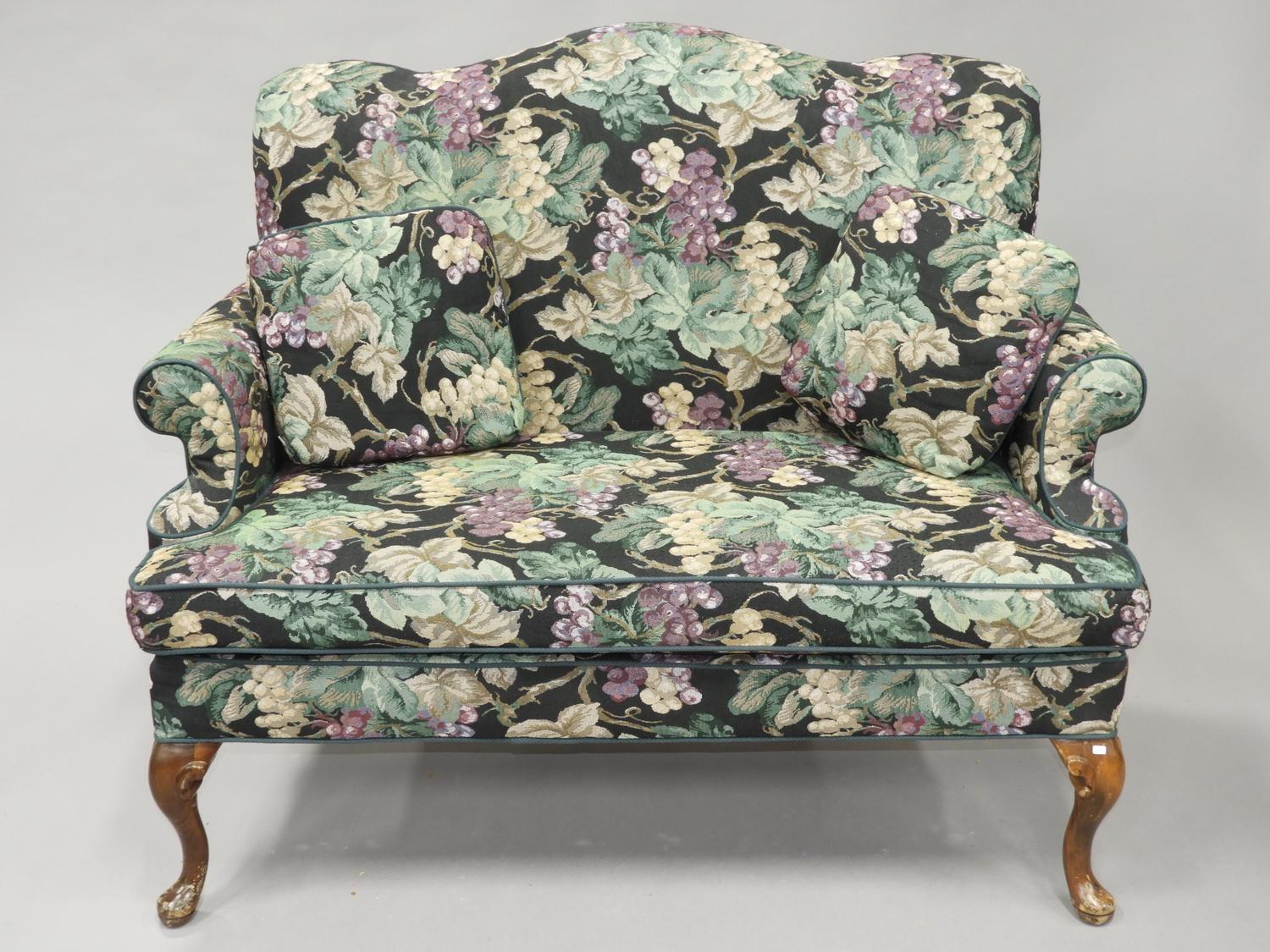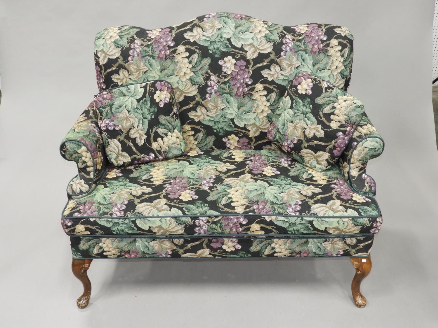 queen ann style rolled arm love seat, 41" x 53" x 30"