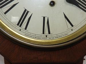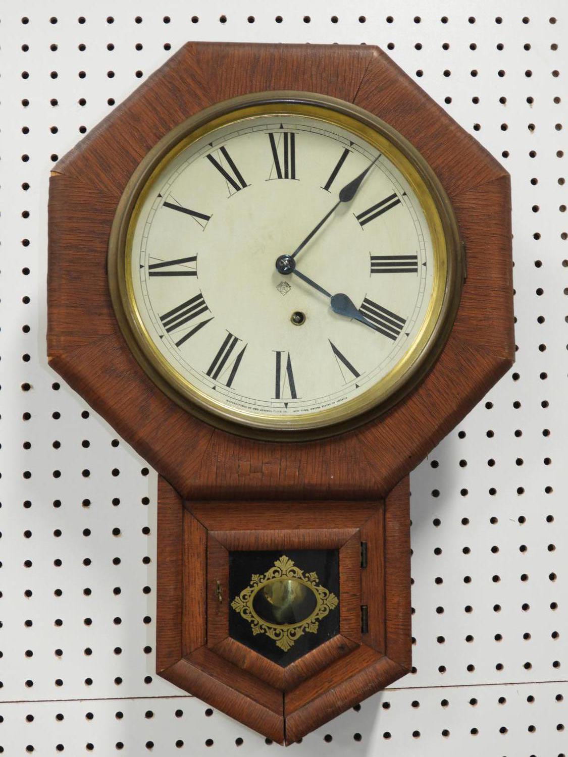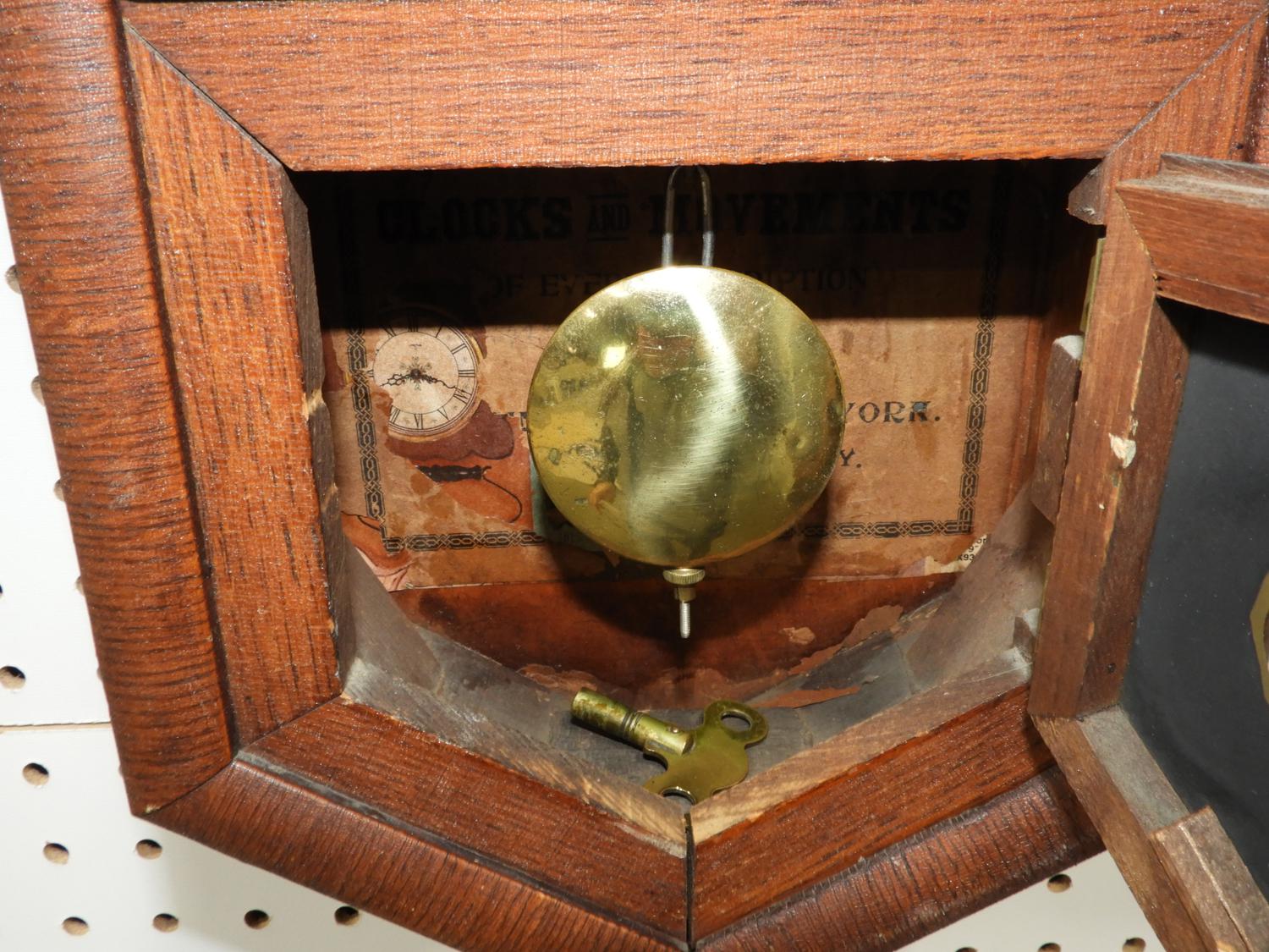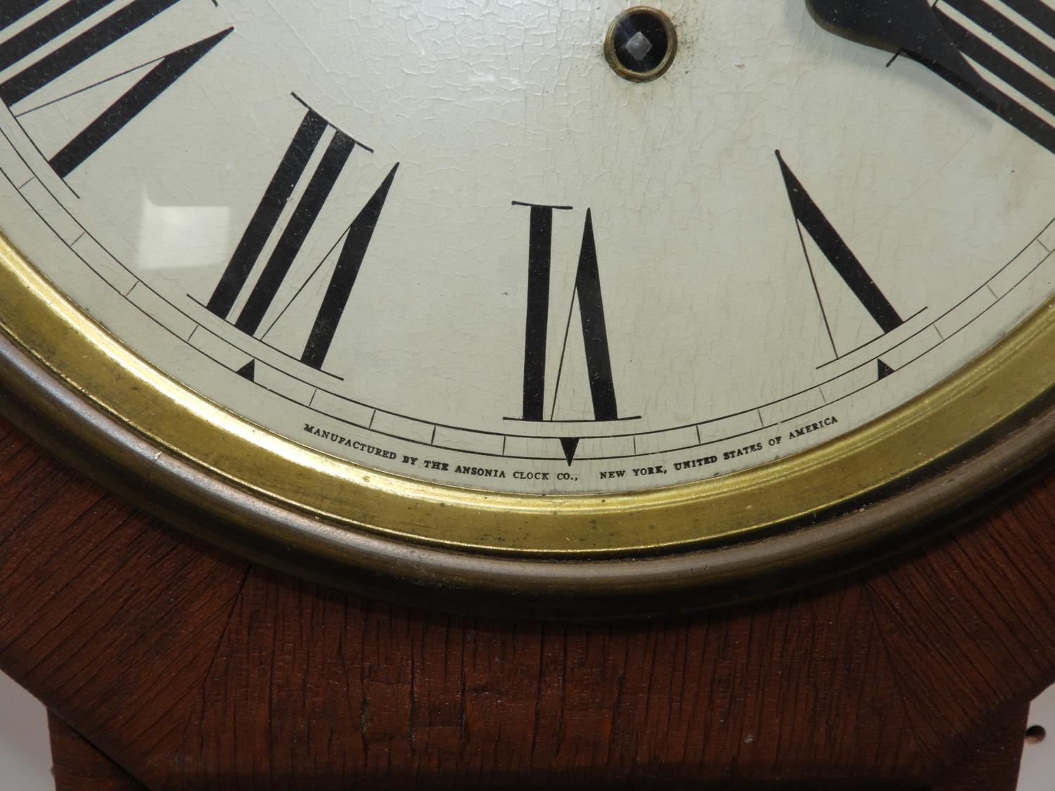 ansonia mahogany wall clock with pendulum and key, c.1900, ht. 22"