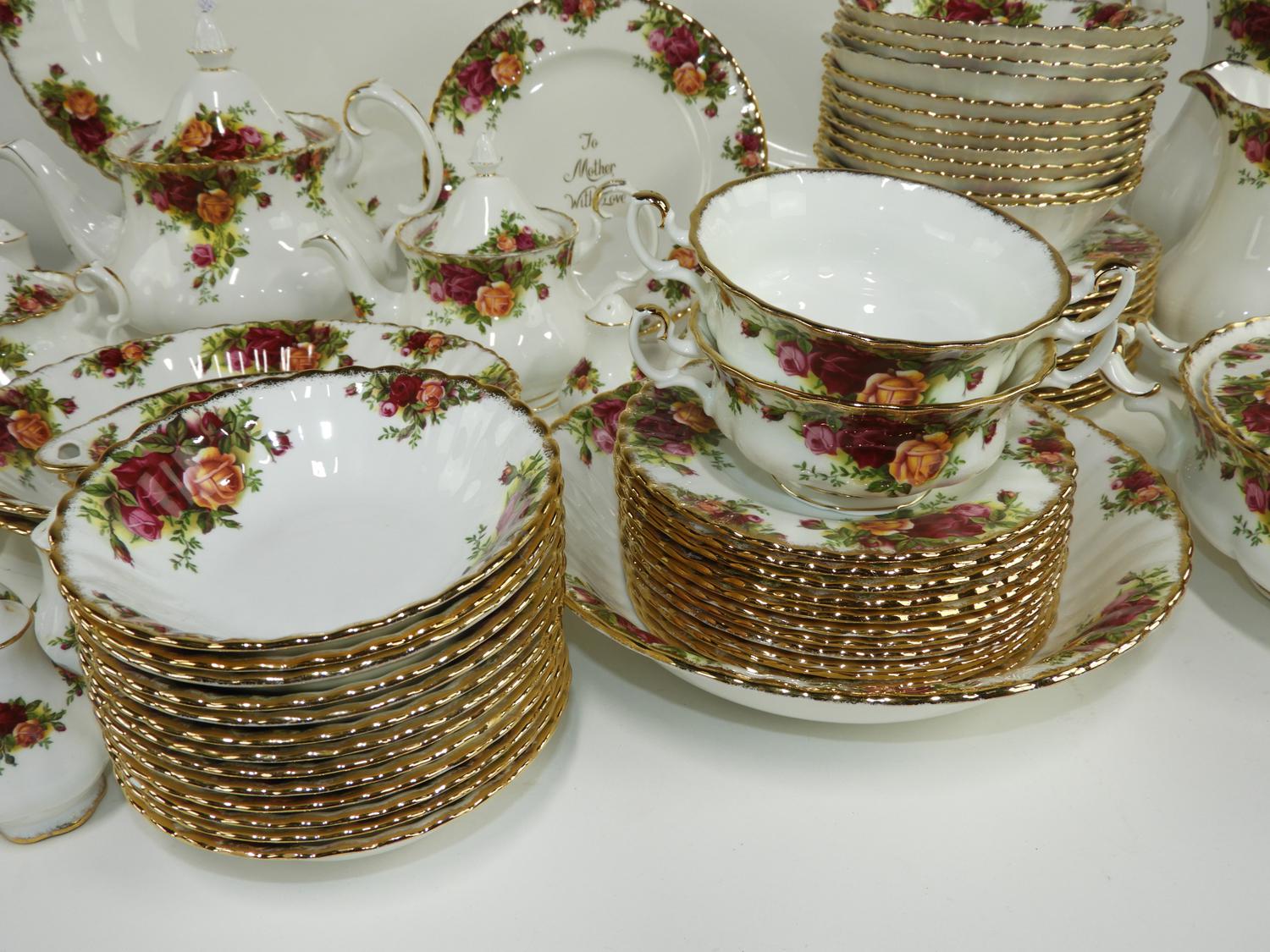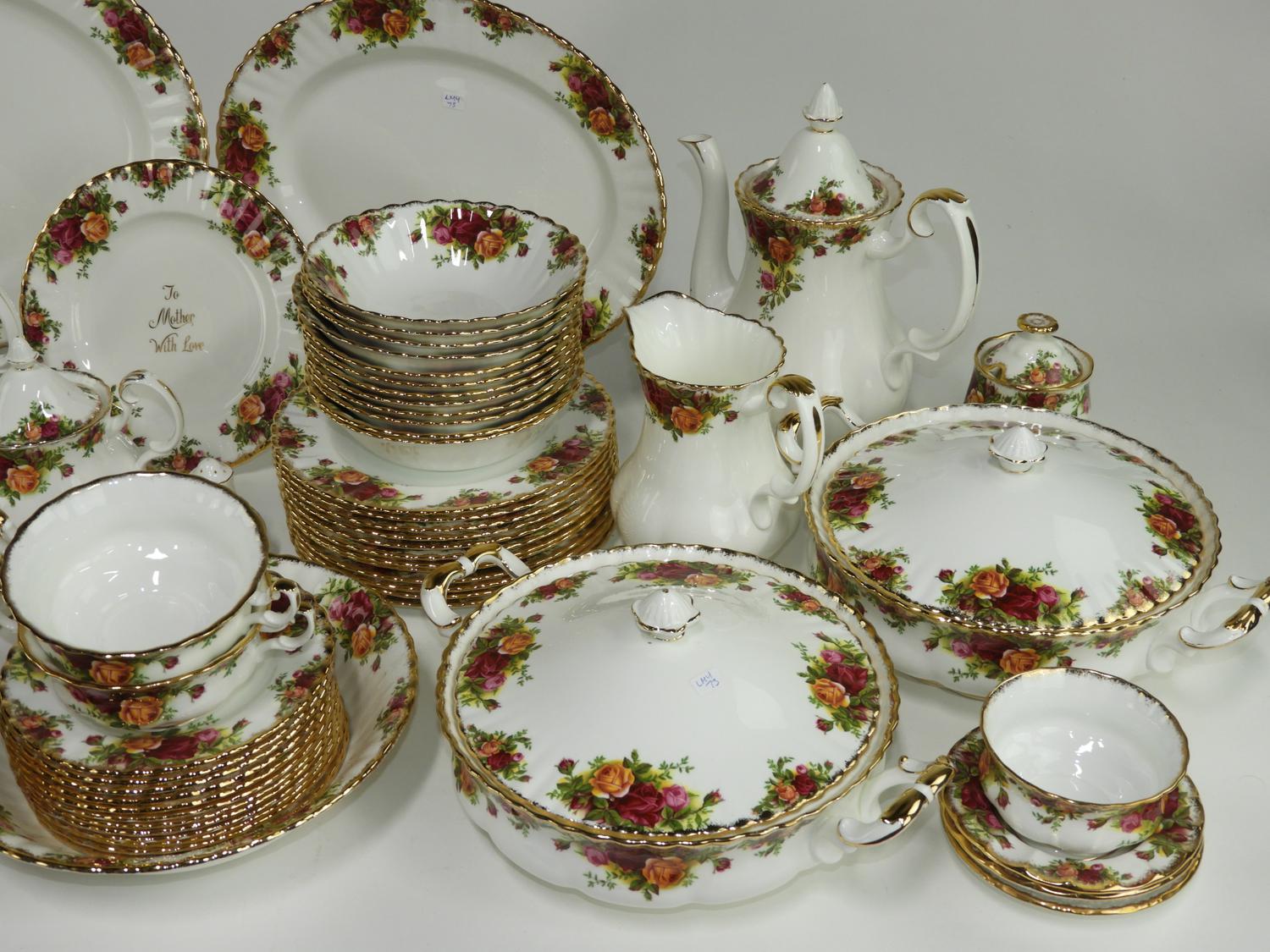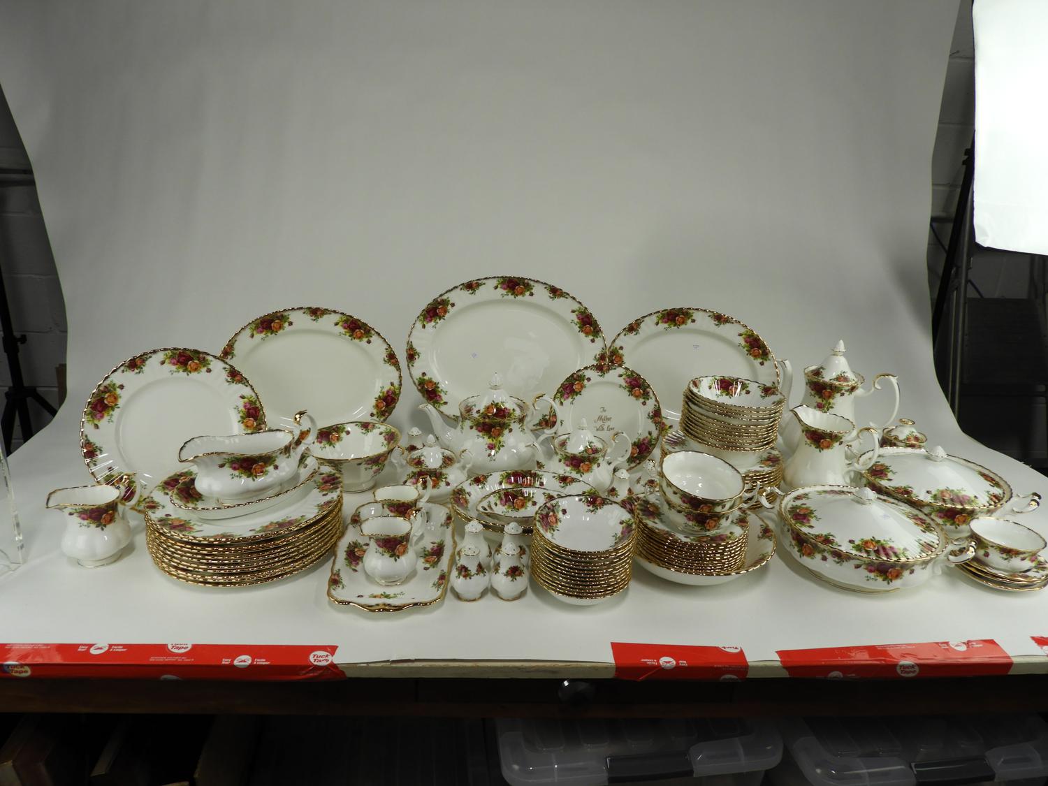 Large platter - 15" across2 medium platter, 13" across12 Dinner plates, dia 10 1/4"12 Salad plates, 8"12 Large bowls 6 1/4" diameter13 smaller bowls 5 1/2"12 Soups with plates13 Small dish, 6 1/4"2 Covered tureens with handles, 9" acrossBowl, 9 1/2"2 Oval bowls, 9 1/4"cutlery (3 cracked handles)3pc Coffee set3pc Tea set6 small dishesGravy boat with dish3 jugsI serving tier dishcoaster2 condiment bowls7 salt and pepperand20 teacups and saucersapprox 186pc
