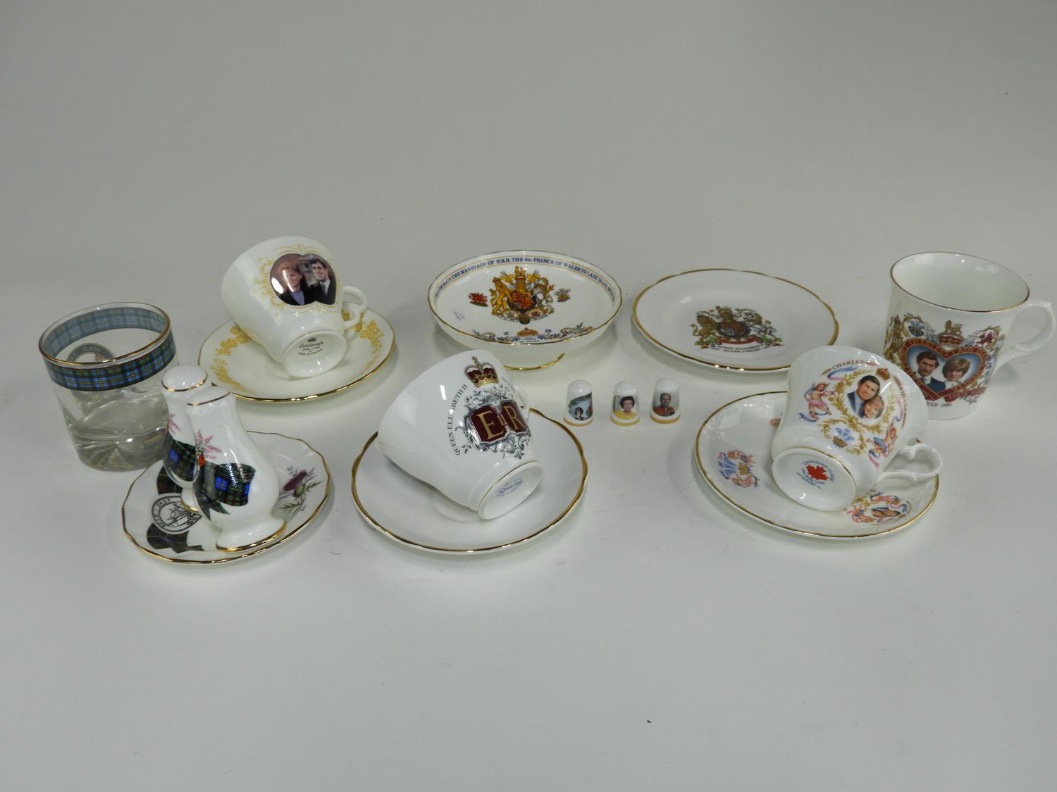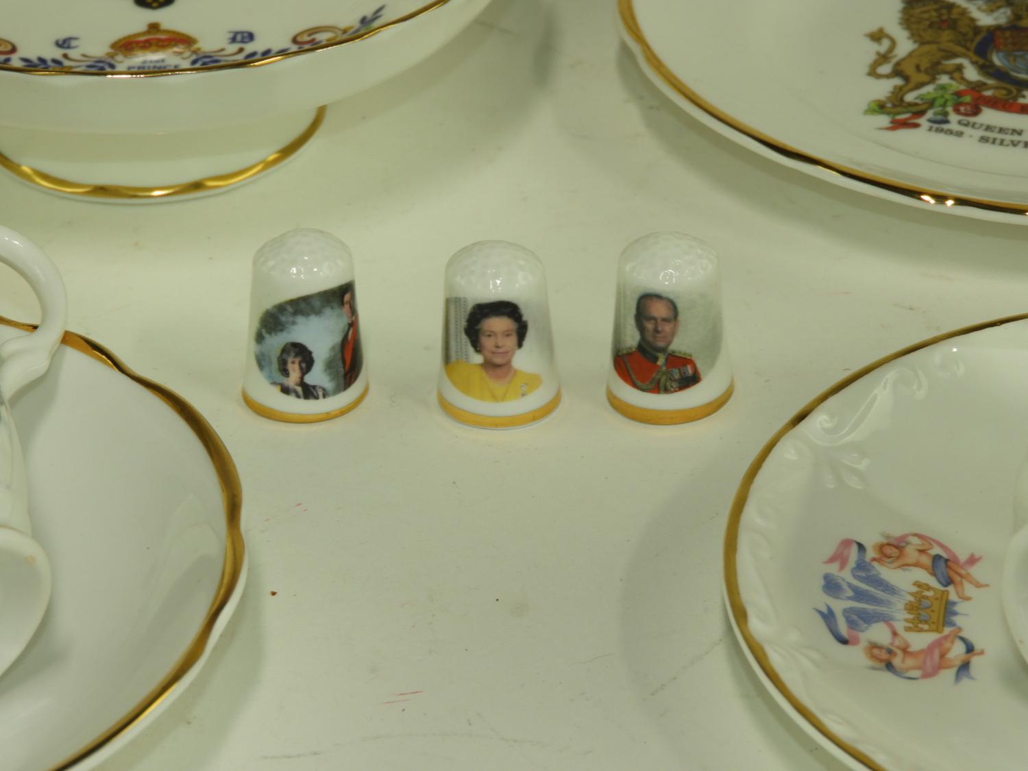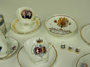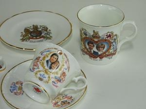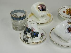 commemorative cups, saucer, and dish by aynsley